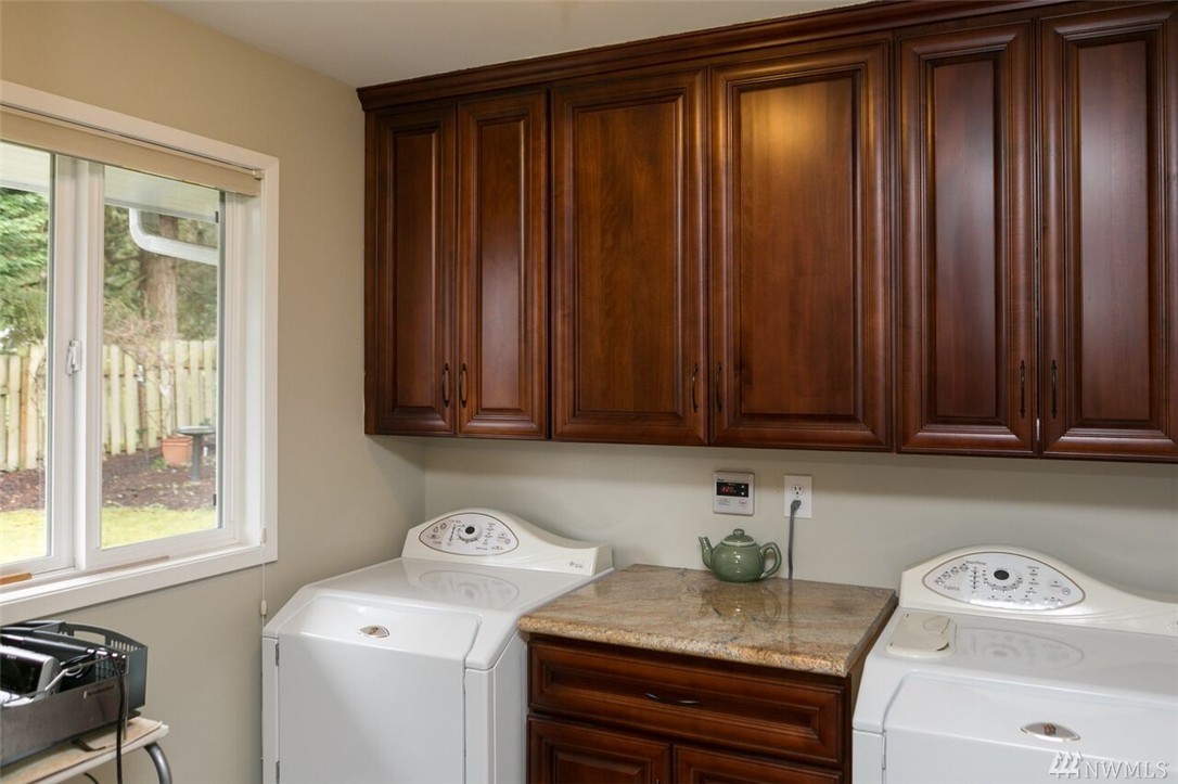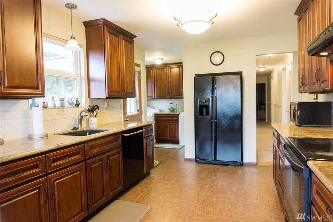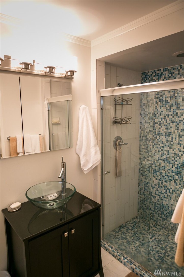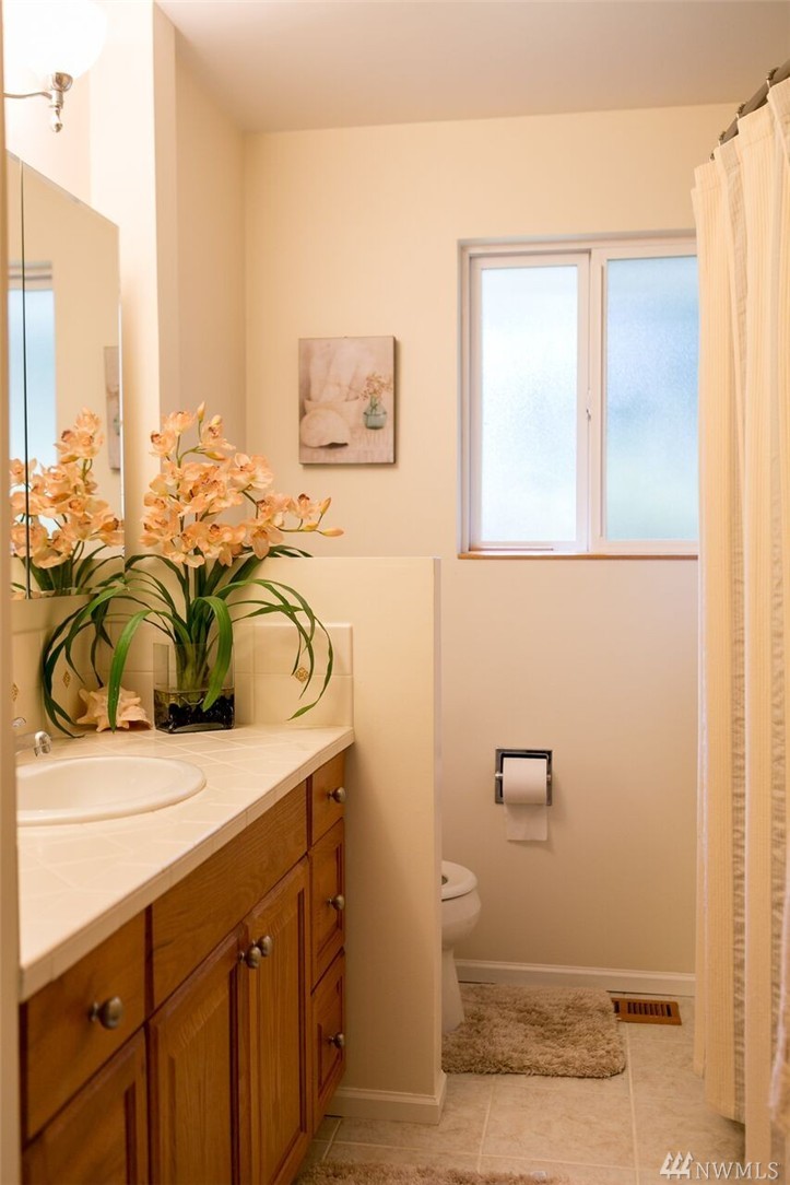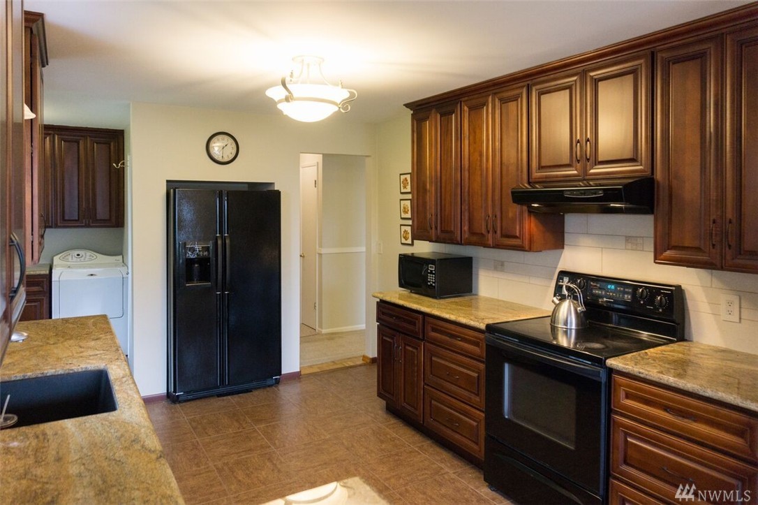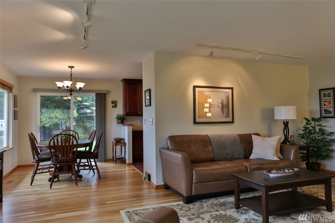 Beautifully remodeled rambler with views of the Lake and Mountains. The living/dining room area features hardwood floors and a wood burning fireplace. The kitchen has cherry cabinets, granite countertops and updated appliances. There's a master suite and 2 spacious bedrooms as well as a big family room with sliders to the nicely landscaped/level yard that includes a playhouse/garden shed and 2 off street parking spots. The home is within the Sheridan neighborhood and popular Shoreline Schools.