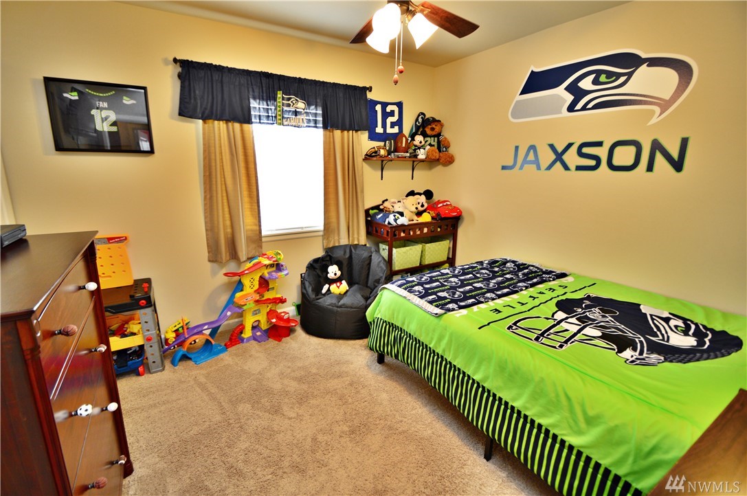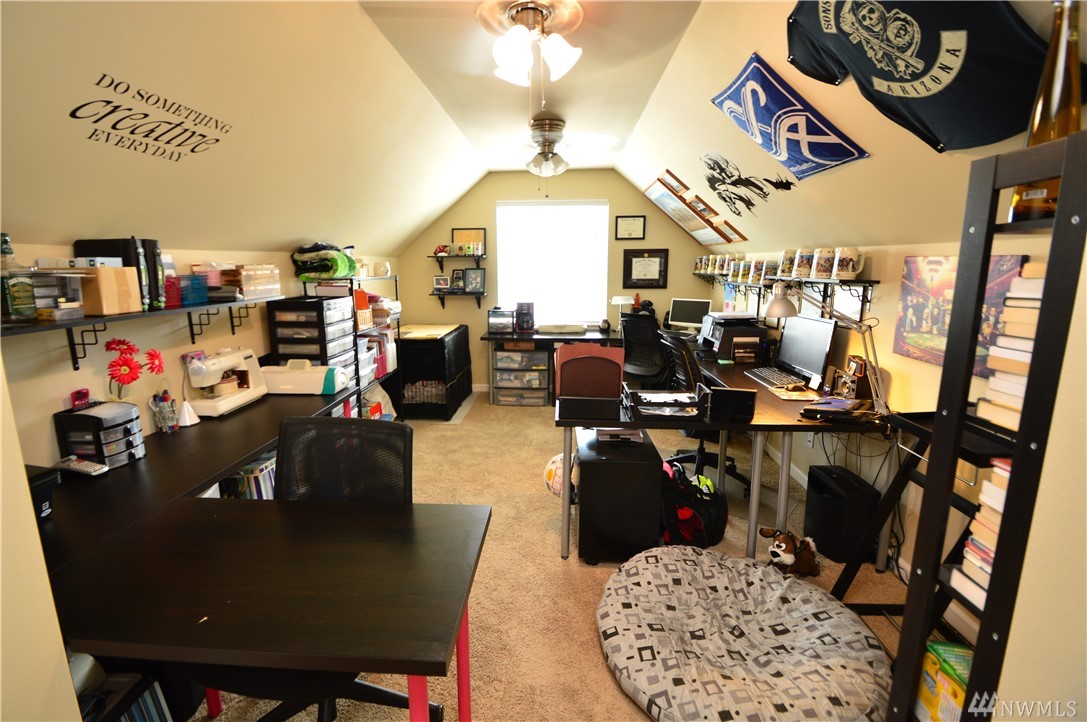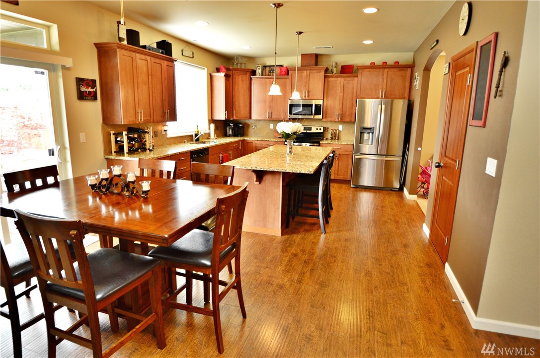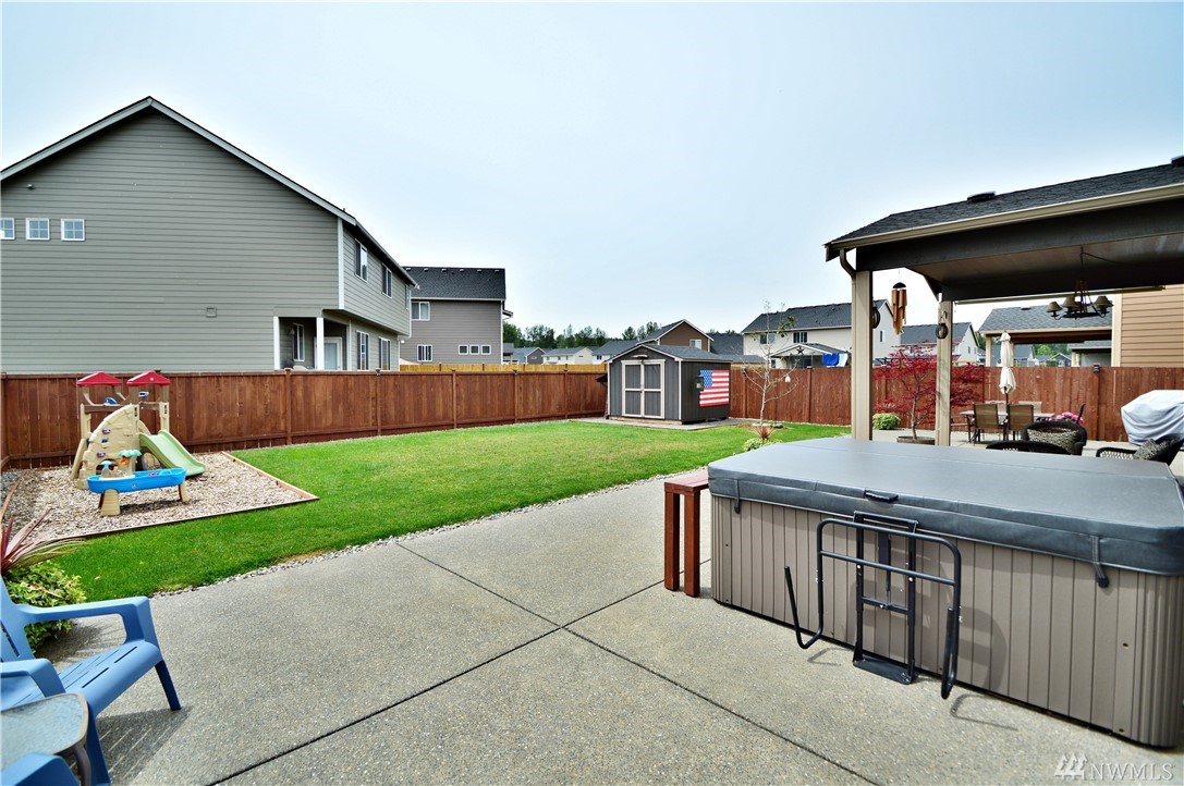 Better than new 4 bedroom home with large kitchen with island slab granite counters and stainless appliance walk in pantry. Family room with gas fireplace and cool designer wall with built ins. Livng room with vaulted ceilins. Huge Master suite with 2nd room could be nursery, craft or office space.. Fully landscaped and fenced yard with extra Large covered patio and out building.