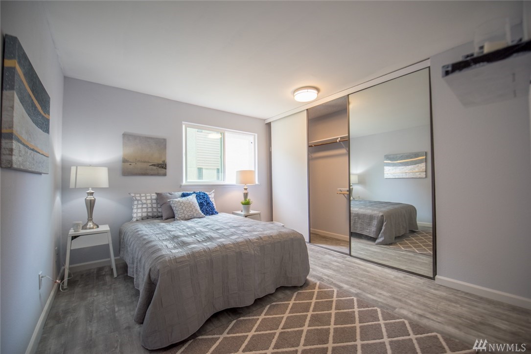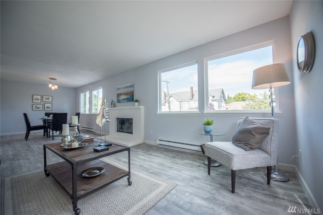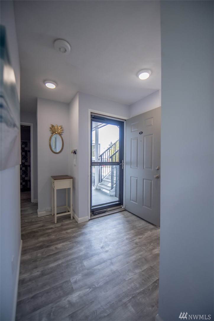Beautifully renovated condo with modern counter tops, tile, floors, and paint throughout. Removed from California Ave on opposite side of building facing east with ample privacy. One allocated parking spot and storage in basement. Building was fully renovated with all new hardy board siding, double pane windows, and doors 3 years ago. Peekaboo views of Puget Sound from balcony. Rental Opportunity Available!