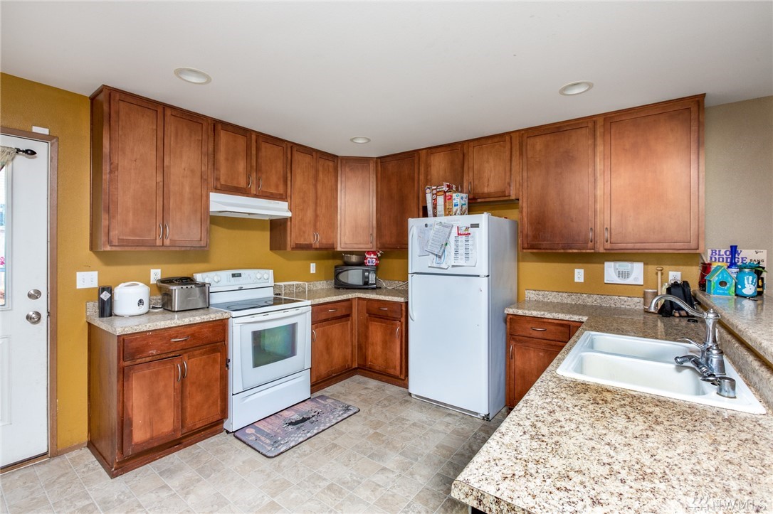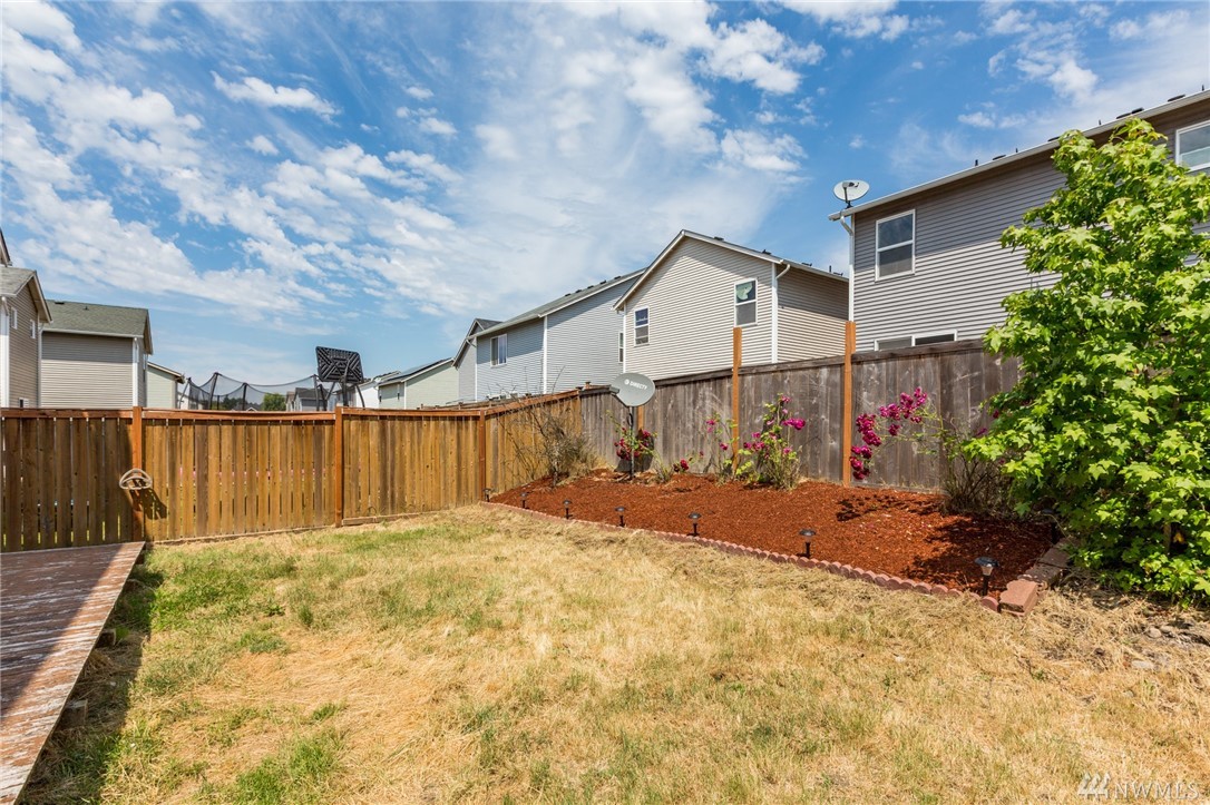 Searching for the perfect starter home? Look no further! Cozy two-story in great neighborhood. Welcome to Tahoma Terra! Open Kitchen features tiered breakfast bar and recessed lighting. All bedrooms on upper level, including Master Suite with private bath and walk-in closet. Fully fenced back yard with wide deck and room for a garden. Fabulous location! Close to schools and shopping; Easy commute to Olympia and JBLM; Just down the road from golf course and Yelm-Tenino trail.