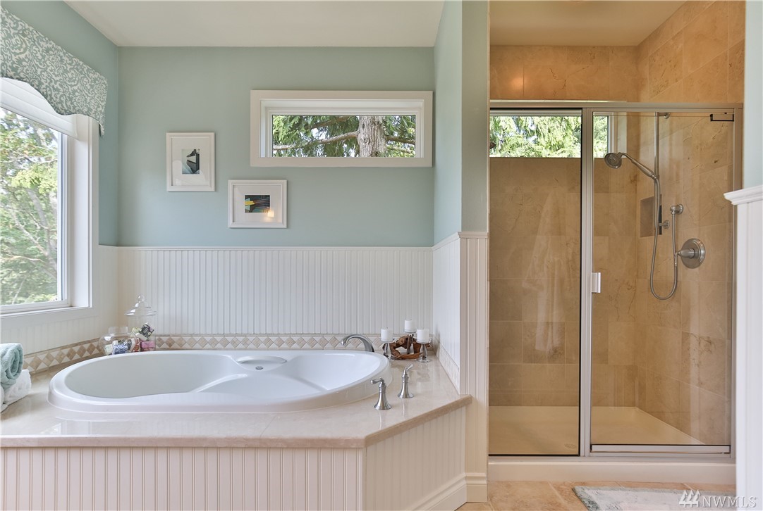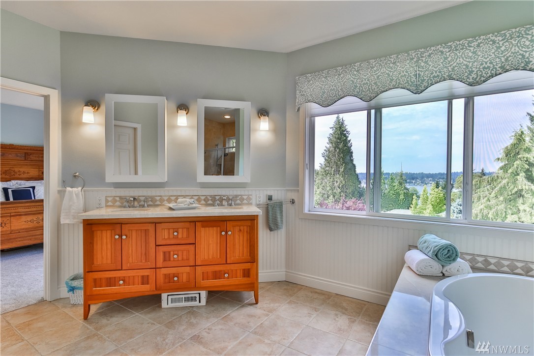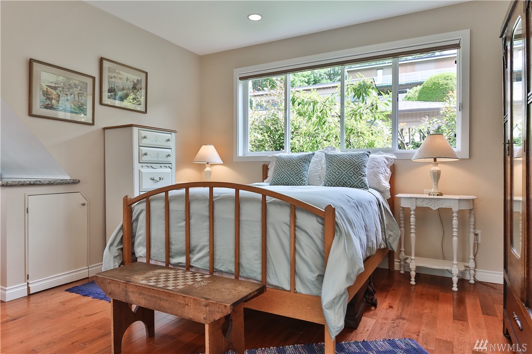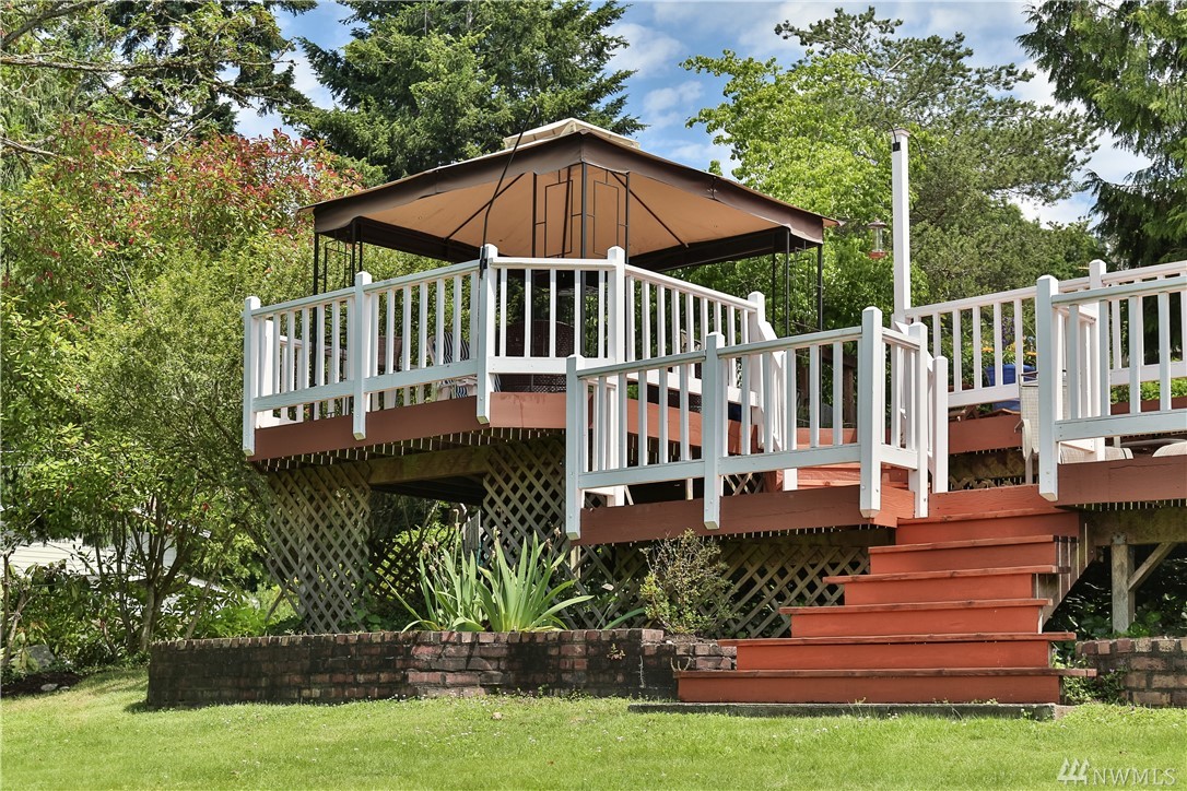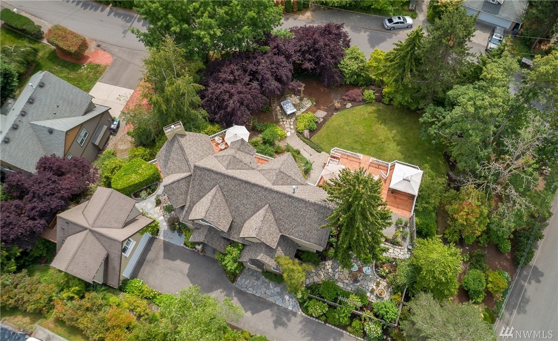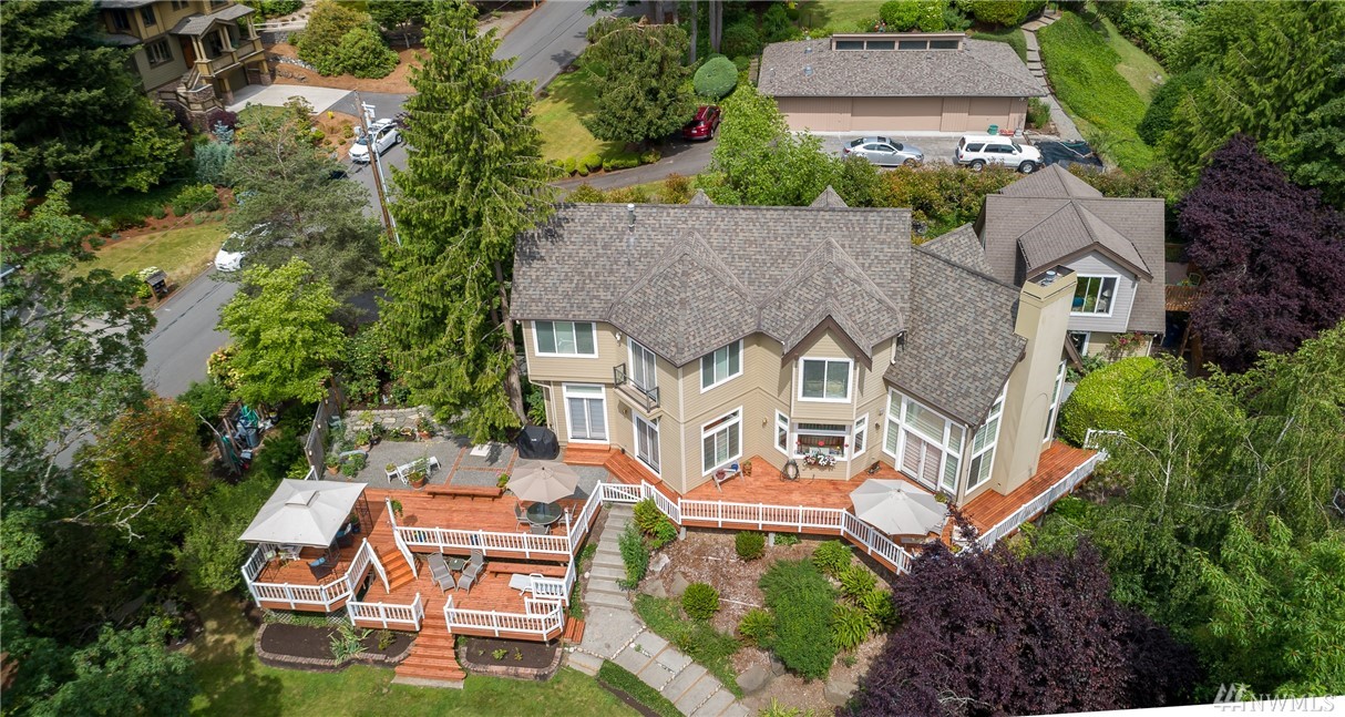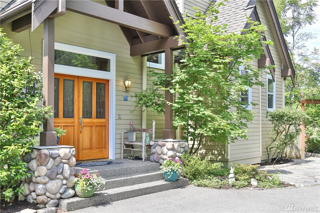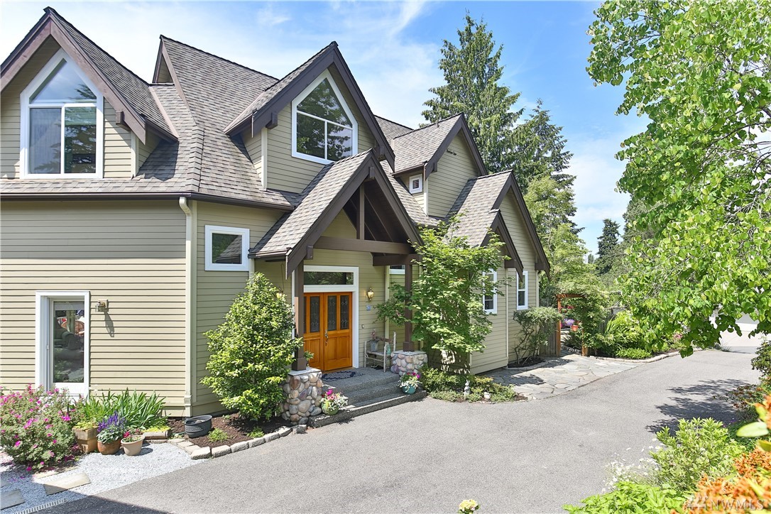 Natural light fills this lovely custom home that feels like a classic cottage in a secret garden. In coveted Holmes Point, remodeled & freshly updated situated on beautiful landscaped grounds above the lake. Spacious & open flow of the main level extends out to over 1500 sq/ft of decks, patios, & courtyard. A Chef's kitchen. 5-piece master w soaking tub & w/i closet & balcony w lake views. Additional living space above the garage. Walk to waterfront parks, boat launch, and trails. Welcome Home.