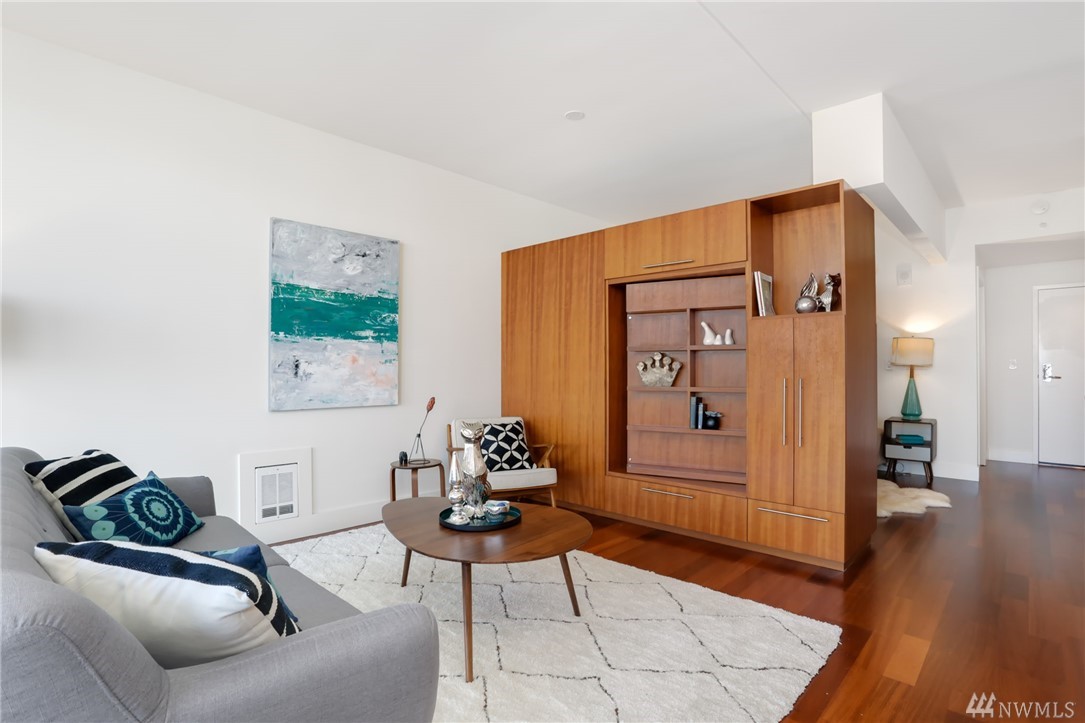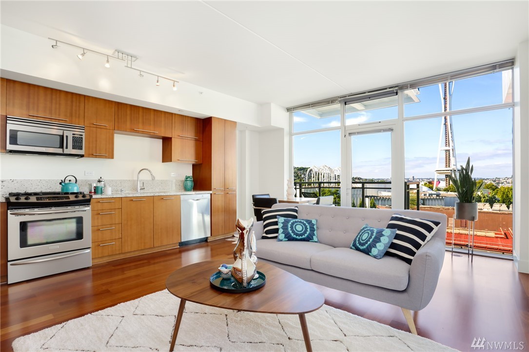 Wake up every morning to gorgeous, unobstructed Space Needle views thru floor-to-ceiling windows in this luxurious, rarely available upper floor 1-bed, 1 bath unit at the Gallery. Freshly painted and well appointed, you’ll love living at the center of it all just steps from the waterfront, Seattle Center, and top notch dining. Watch fireworks, seaplanes, & sparkling city lights all from your balcony! Fab amenities incl gym, 24hr concierge, and rooftop deck w/dog area. No rental cap! Strong HOA!