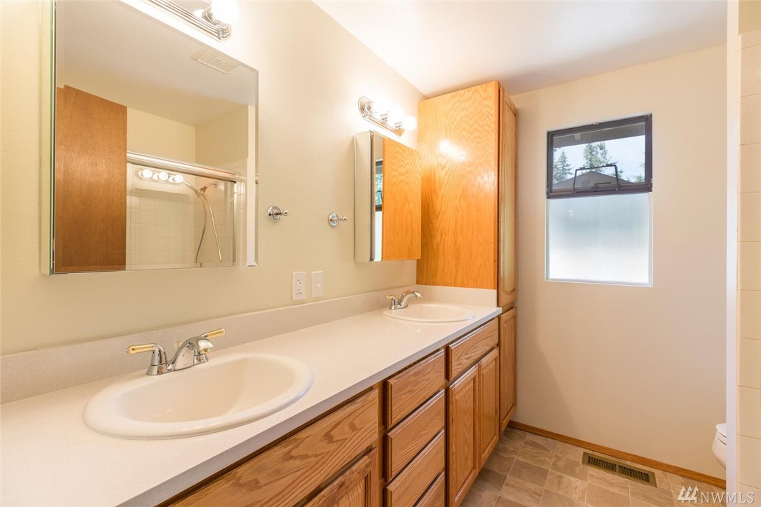 Don't miss this sought-after Seaview split-level in Edmonds! Freshly painted inside with new carpets, this home is move-in ready and in a cul de sac. Enjoy lots of light in the living and dining room with vaulted ceilings. The kitchen with eating area features self-closing oak cabinets and slab counters. Your personal retreat, the master bedroom with ensuite boasts a large slider which opens to a huge deck. Downstairs is an entertainer's dream with a bar and fireplace! 4BR/2.75BA/2588sf/AC