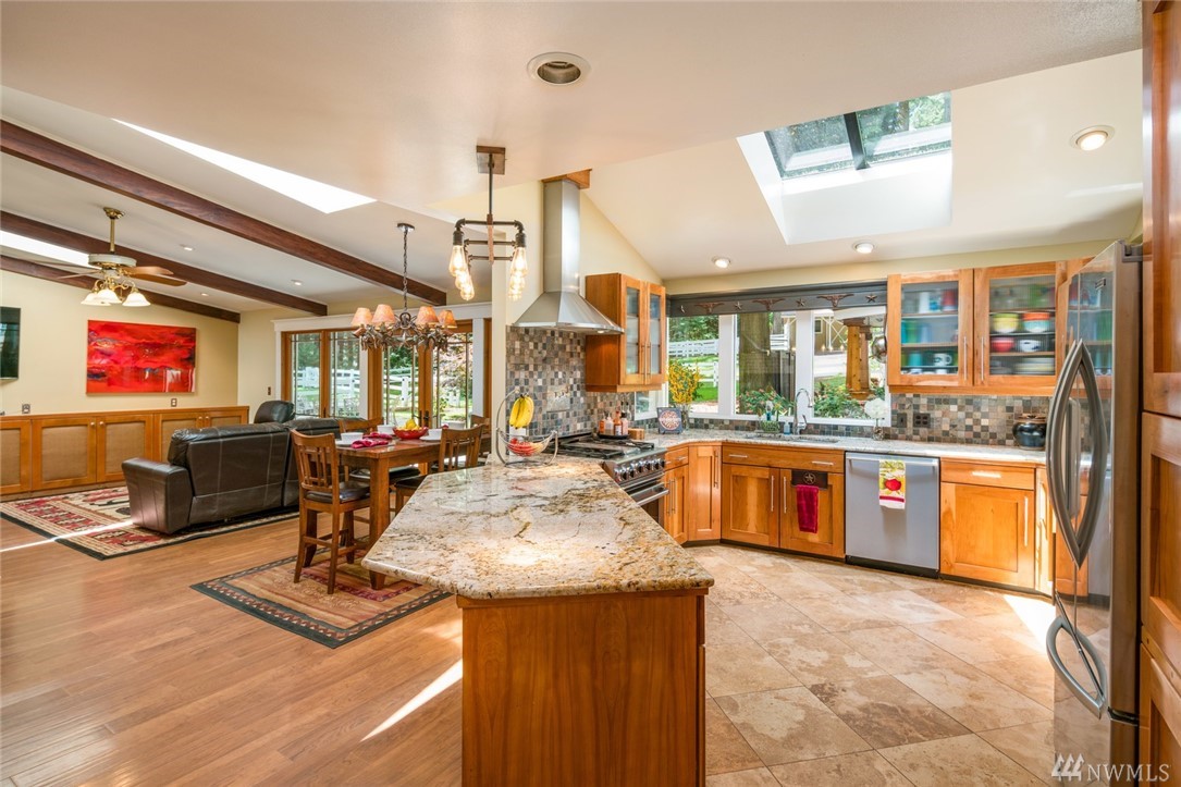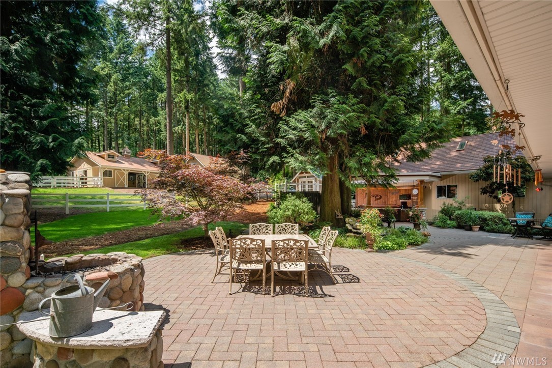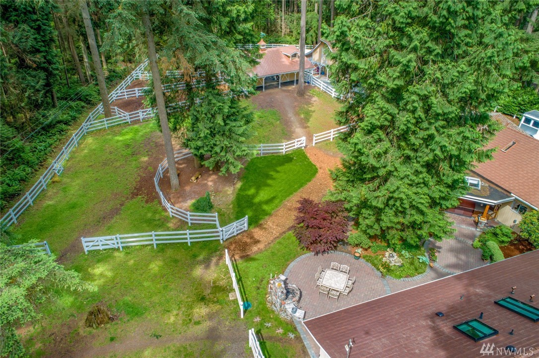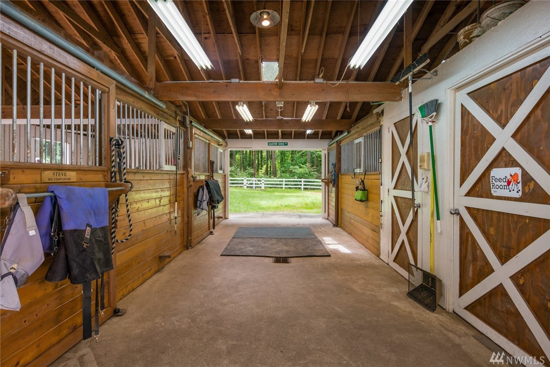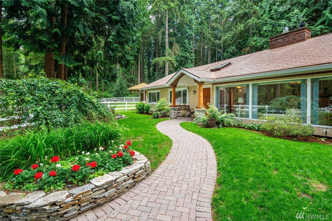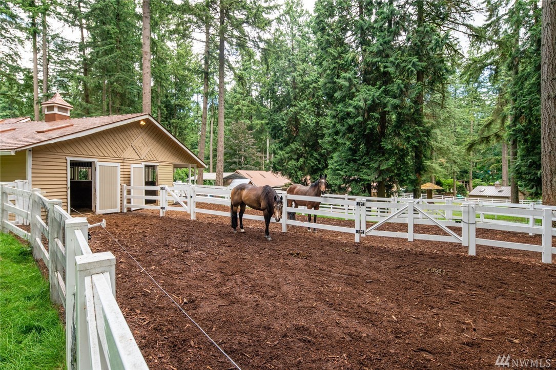 This home has it all in Bridle Trails! Privacy, within the park w/direct access to trails and 5 minutes on horseback to arenas. Beautifully appointed and remodeled home with all hard surface floors-main (wood, Travertine, carpet upstairs), chefs kitchen, 1000 sf workshop, office/studio space and expandable area. 3 stall barn w/ hoof grid paddocks, tack/feed rooms, wash rack, tractor/hay storage. Vinyl fence. Close to Microsoft, Google, Lake, Shopping, walking dist. to award winning Schools.