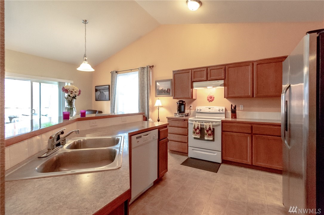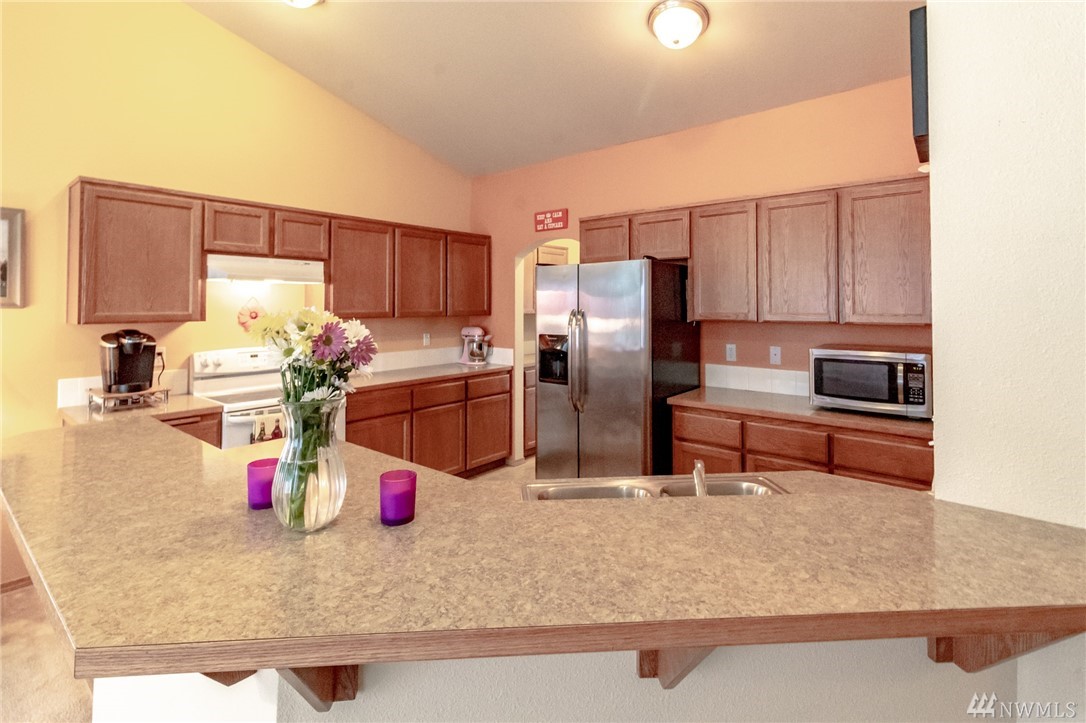 Impeccable & convenient one level home with well designed open floor plan. This 3 bed 2 bath home features open grand entry hallway, living room, dining room, butler pantry with large pantry, kitchen with bar seating, large master with private bath, vaulted ceilings & partial mountain view. The 2 car garage has high ceilings perfect for tons of storage. Patio & fully fenced backyard are perfect for entertaining. All within walking distance of community parks, schools & bus. See this one QUICKLY!