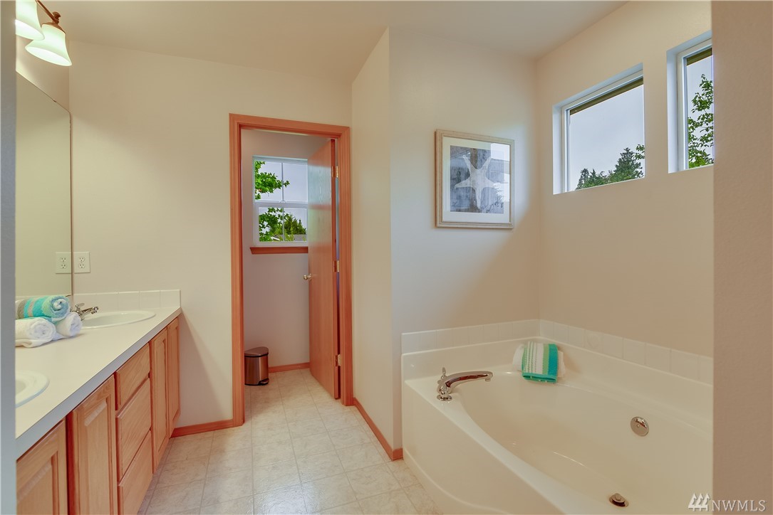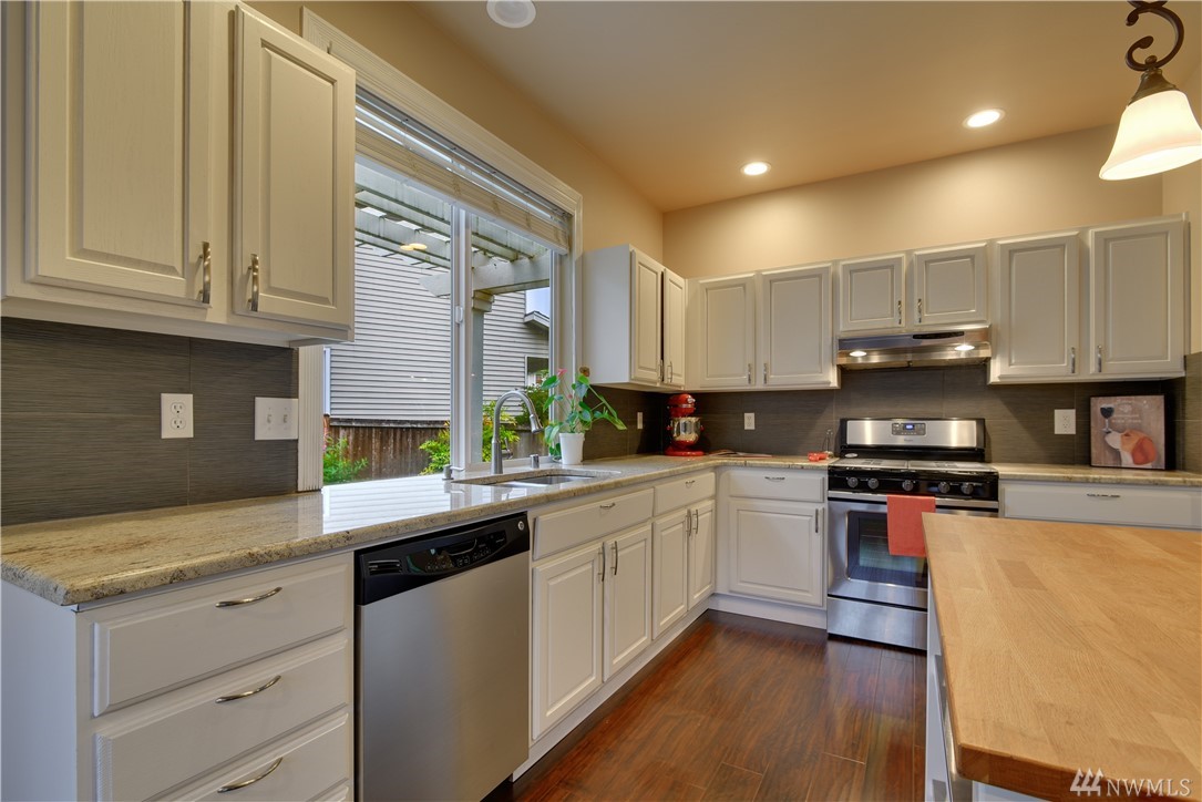 Welcome to this beautifully updated home on a large corner lot in the Silver Firs Pembridge neighborhood! This home features 3 bedrooms upstairs & an office/guest bedroom on the main floor. Oversized master suite has a 5-piece bath and spacious walk-in closet. Kitchen w/ granite, stainless steel appliances, extensive built-in shelving and hardwood throughout main floor. Fully fenced backyard, Pergola, large patio great for entertaining. Excellent school district, close to parks/trails.