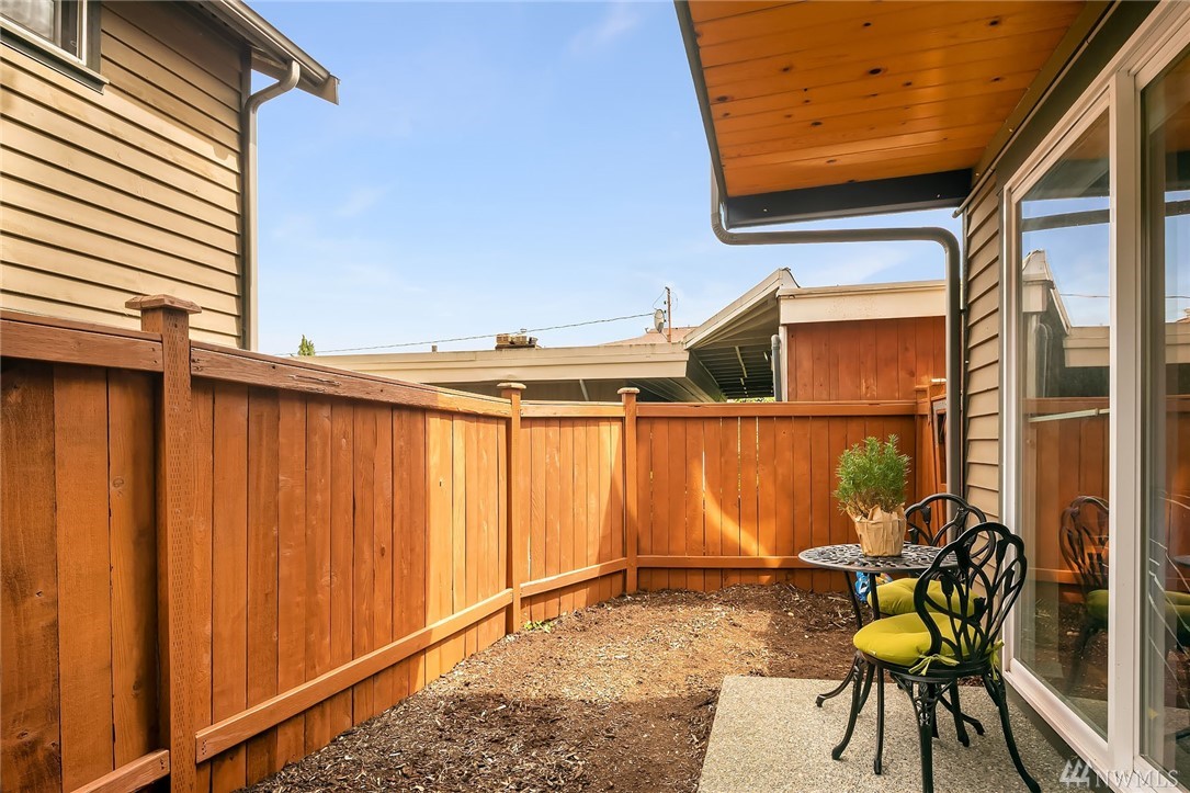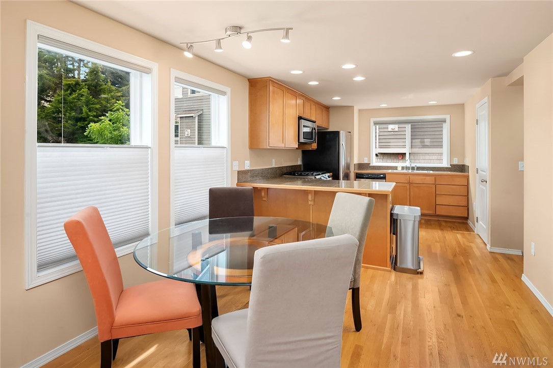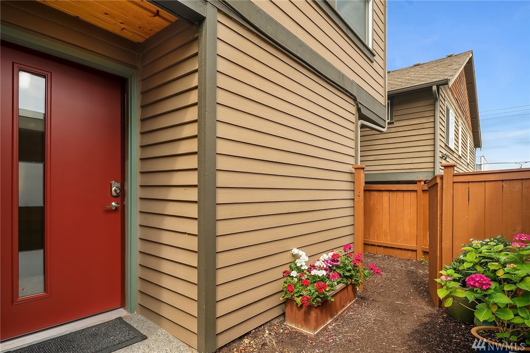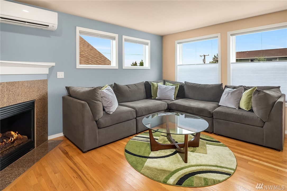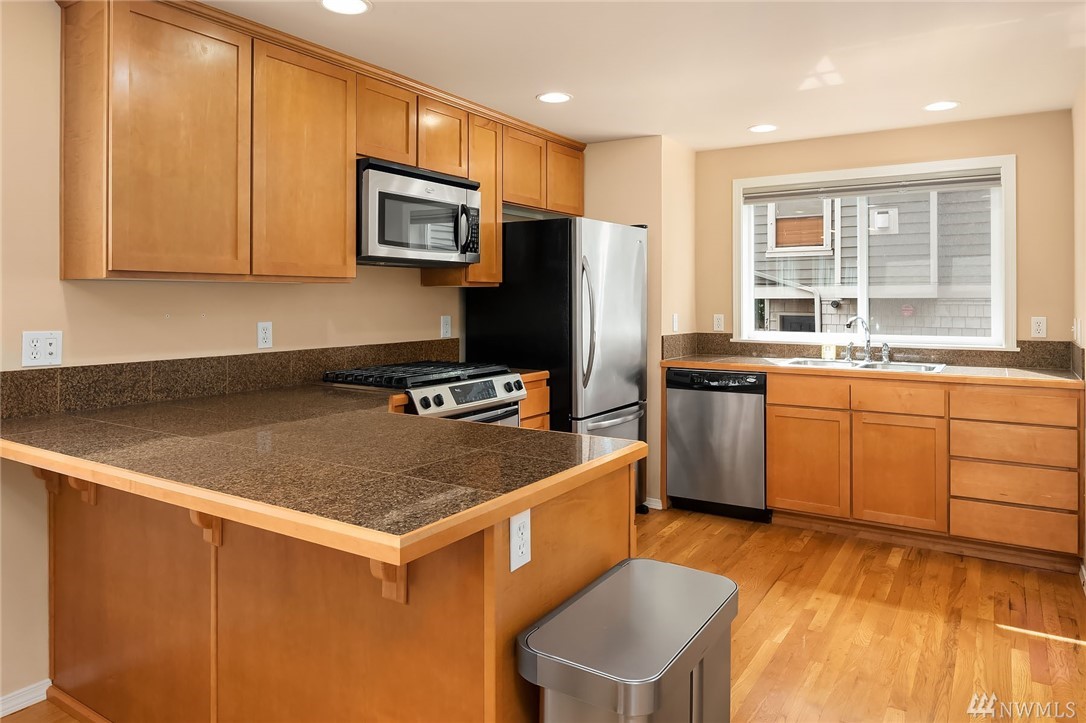Welcome home to this spacious end-unit townhome, w/ peekaboo views of Mt. Rainier. Open kitchen w/ granite counters, & SS appliances make this the true focal point for the chef. Brand new updates include washer/dryer, front door, flooring, blinds, and a heat pump/air conditioning. 2 parking spots & No HOA dues. All bathrooms feature custom designed tile surrounds. The lower bedroom looks out onto private fenced yard with beautiful backyard patio. Great location, easy commute to downtown Seattle.