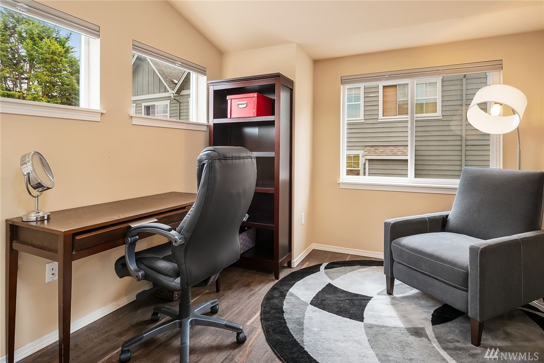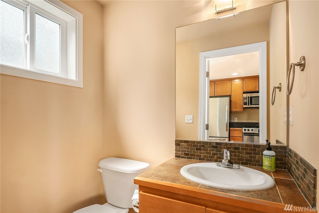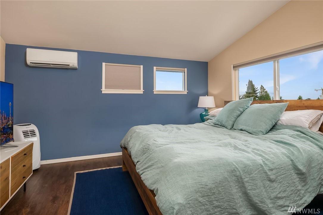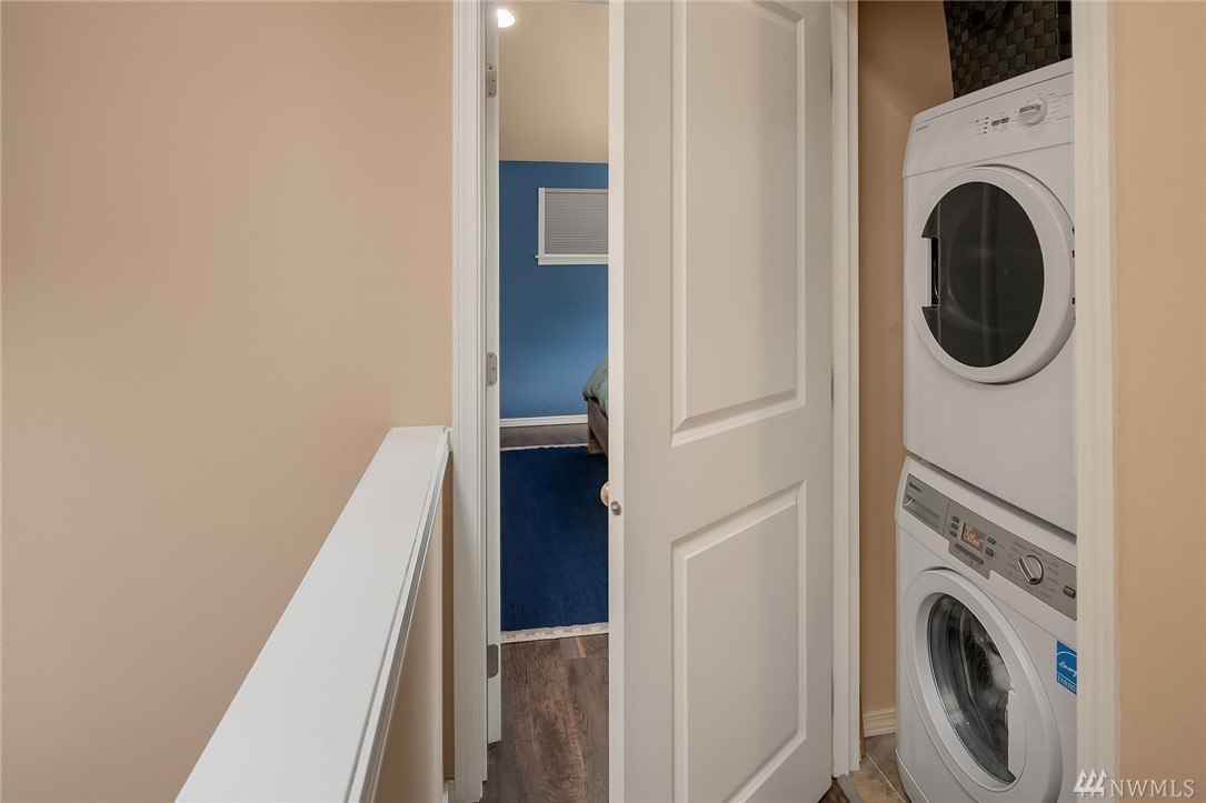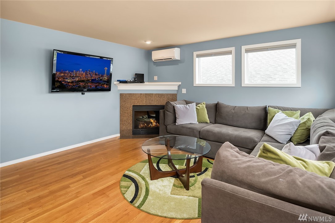 Welcome home to this spacious end-unit townhome, w/ peekaboo views of Mt. Rainier. Open kitchen w/ granite counters, & SS appliances make this the true focal point for the chef. Brand new updates include washer/dryer, front door, flooring, blinds, and a heat pump/air conditioning. 2 parking spots & No HOA dues. All bathrooms feature custom designed tile surrounds. The lower bedroom looks out onto private fenced yard with beautiful backyard patio. Great location, easy commute to downtown Seattle.