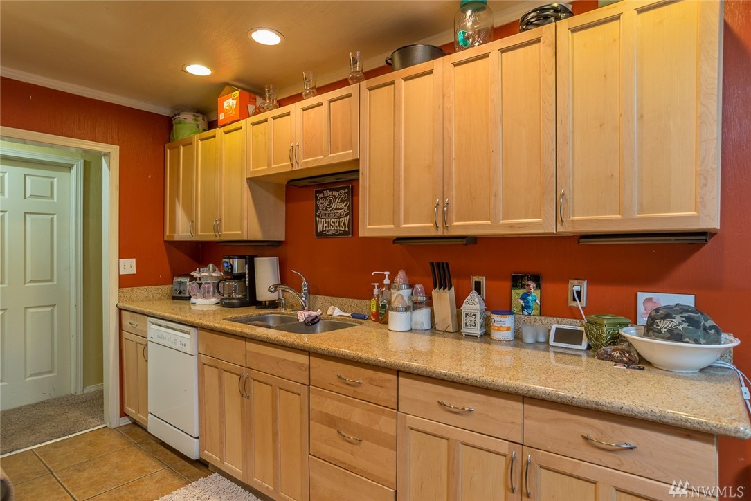 Estate Sale. County says possible 8 lots depending on net acreage of this 2 acre parcel. Home has been updated with granite counter tops in kitchen. under cabinet lighting, stainless steel sink, frig, range and dishwasher included. Bathroom has been updated with tile flooring, jetted tub and newer vanity. Gas log fireplace in living room, original hardwood flooring in most rooms, updated electrical panel, huge covered patio outside, 2 car garage, huge barn in back. Buyer to verify all info.