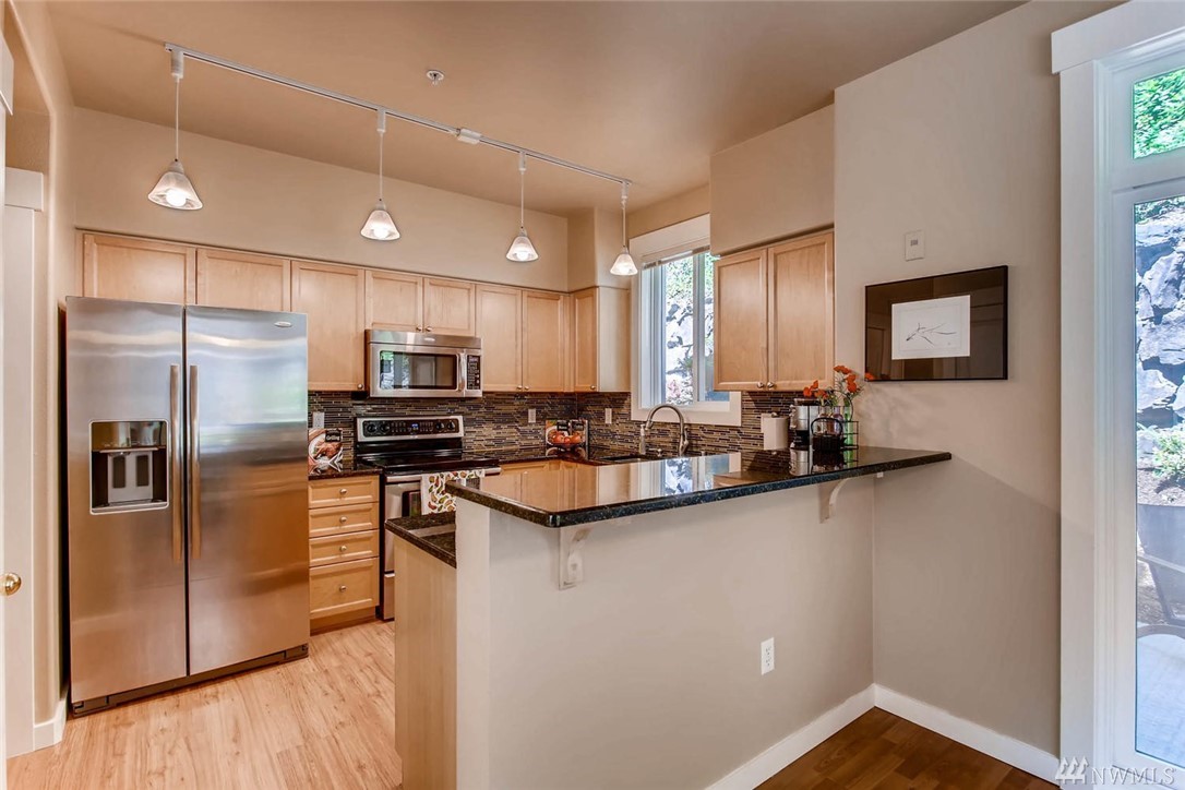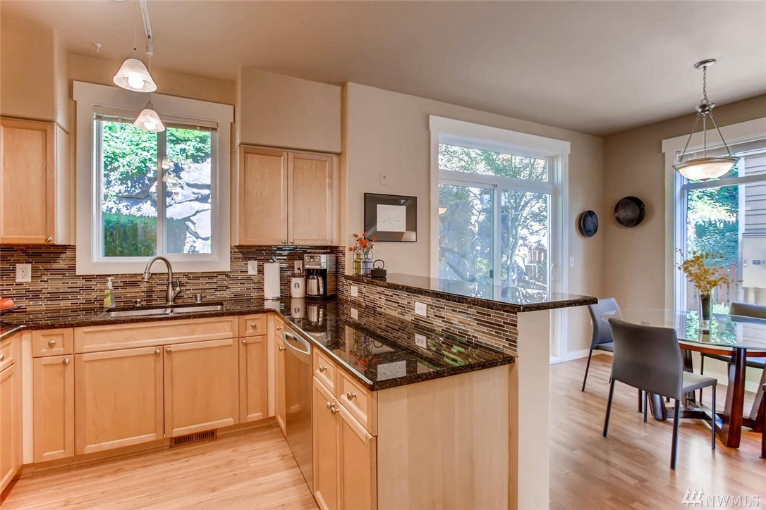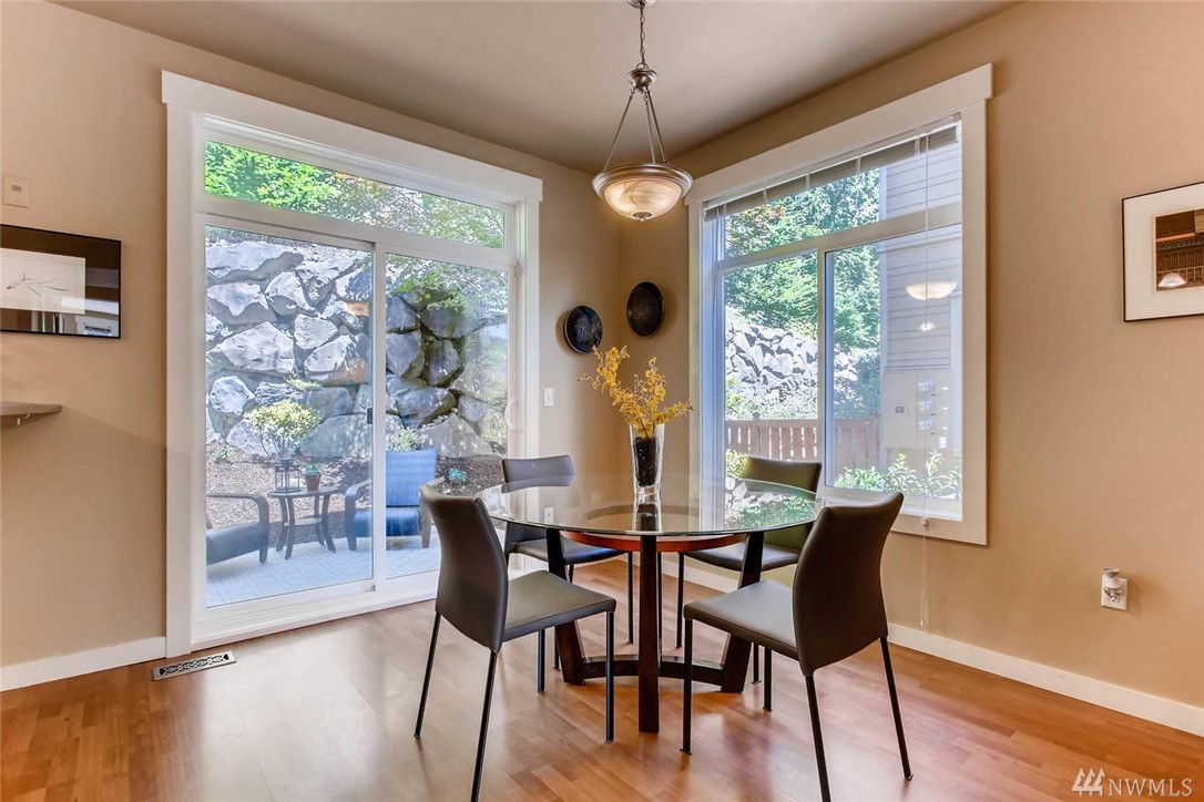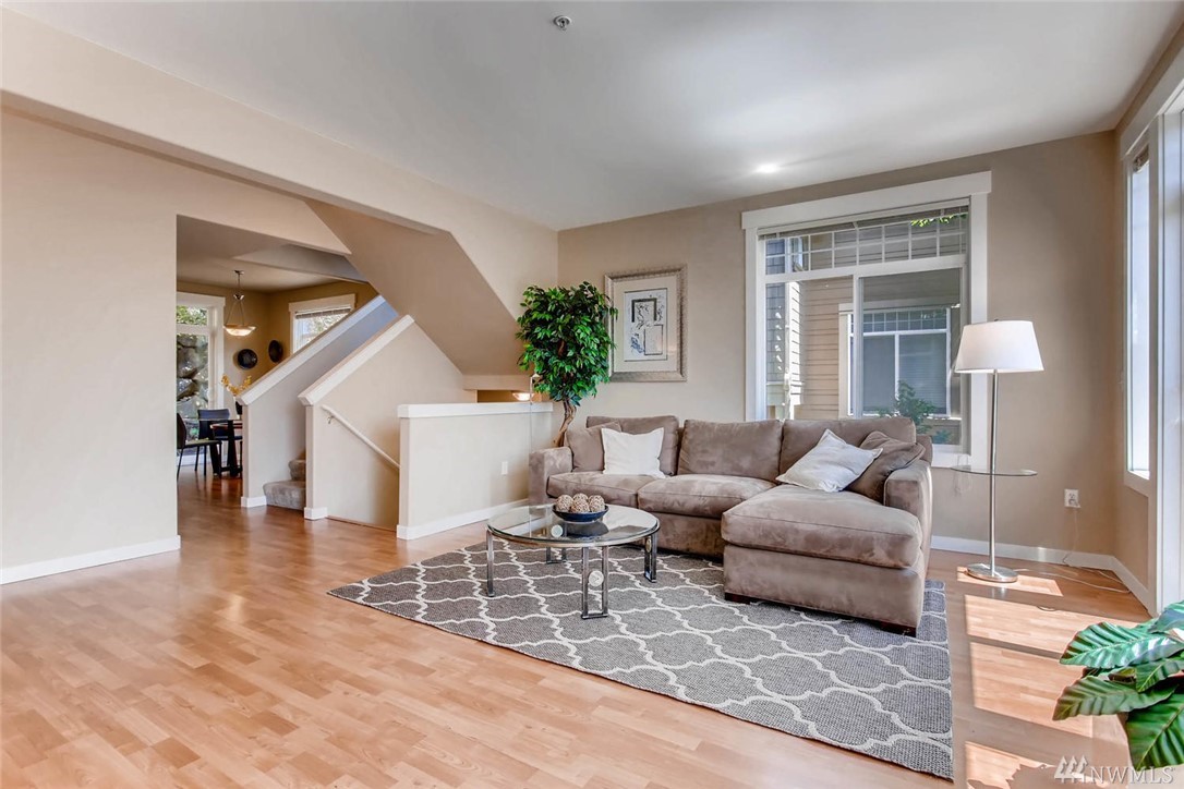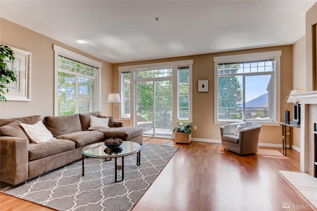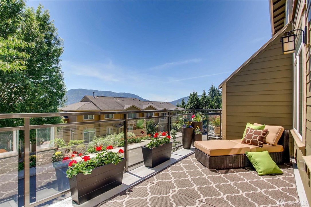 Beautiful end unit townhome nestled in The Heights community w/ strong HOA. Main level includes sun-filled open floor plan & dining area w/ glass sliders leading to private back patio. Enjoy tranquil mountain views from large balcony that extends beyond the living room. 3br upstairs w/ optional 4th br/flex room downstairs w/ full bath. Rare two car double wide garage & two additional driveway spaces. Plenty of guest parking! Prime location close to shops & restaurants w/ easy I-90 fwy access.