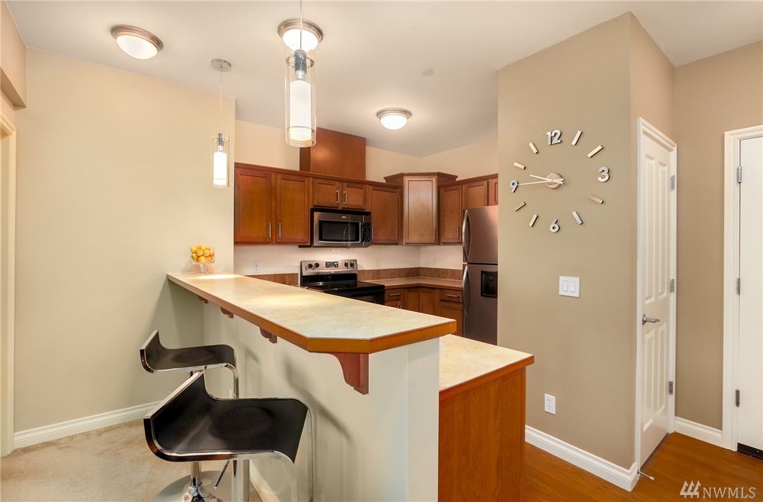 Come see this commuter's dream in Shoreline! Beautifully maintained 2 bedroom condo with private balcony with loads of storage. Bedrooms on opposite ends of the unit for ultimate privacy. Secure parking garage includes coveted two parking spaces. Easy access to all of the local amenities Shoreline has to offer. Very well organized HOA and well kept property will make this a joy to call home.