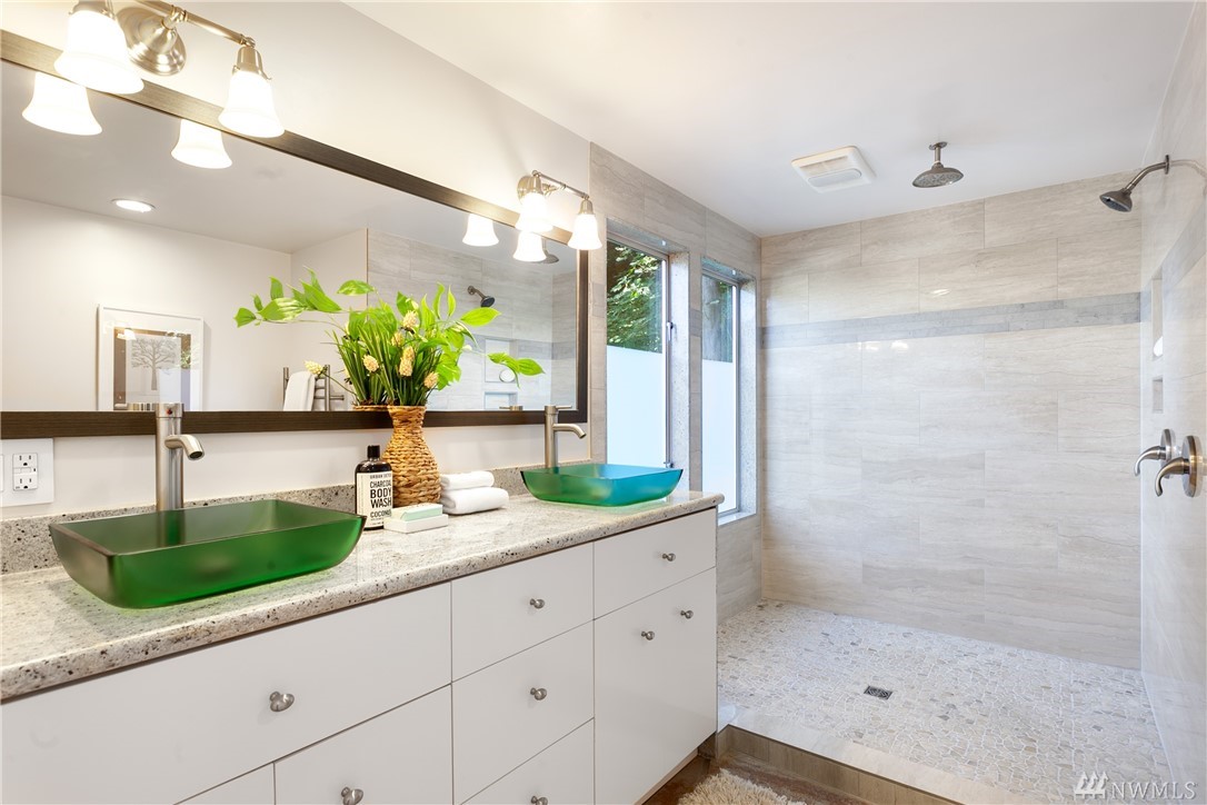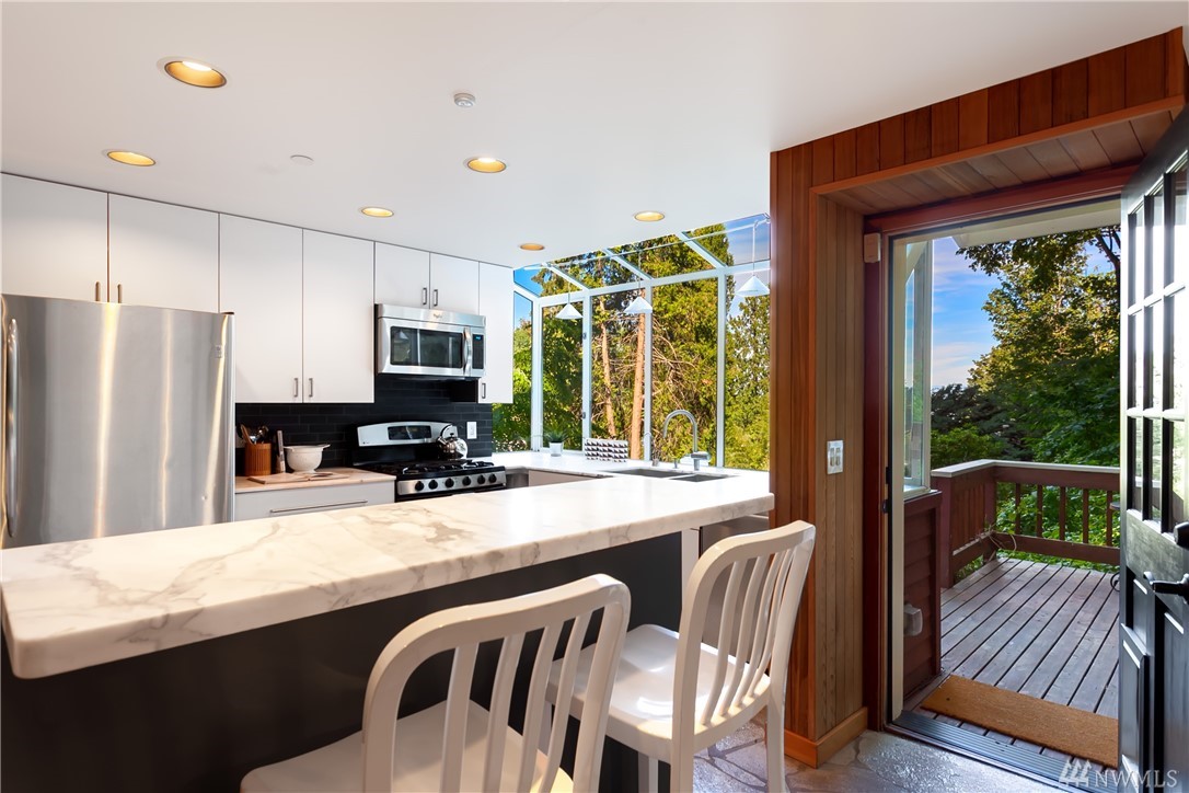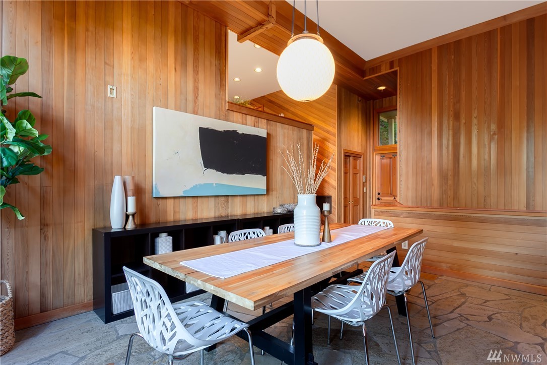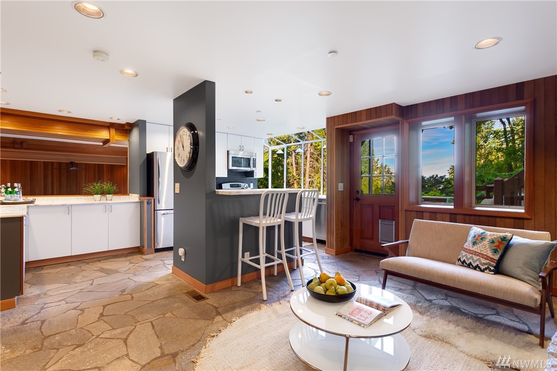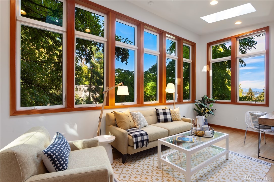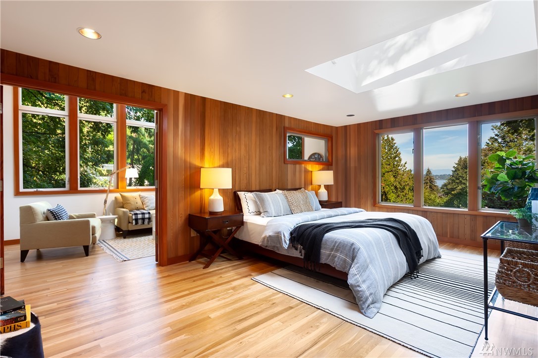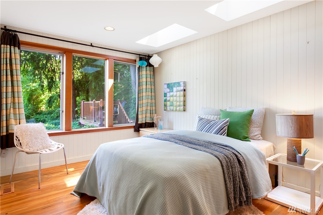 This modern NW boho retreat, nestled in the woods at the top of a private ravine, will inspire & restore your restless city soul. Walls of windows + a legion of skylights flood rooms w/filtered light. Lake views + outdoor spaces to relax & reflect dot the landscaping, including a magical fire pit. Soaring beamed ceilings anchored by stone fireplaces & tastefully rustic cedar-wrapped walls all complement the easy-living floor plan. Just a stone's throw from lake, parks & Leschi cafes & shops!