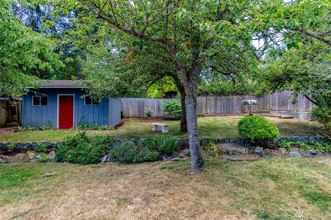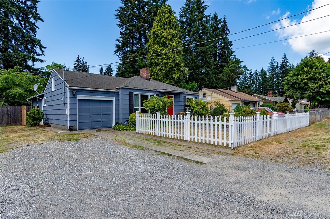 This charming home has it all - white picket fence, hdwd floors, l/r w/wood burning fireplace, 3 bedrooms, walk-in closet, 1.75 updated bathrooms, kitchen w/skylights & greenhouse window. Dining room & master suite have sliders to wonderful treed backyard w/ storage shed - all located in an idyllic neighborhood. Spacious utility room leading to garage w/loft for extra storage or play area. Gas heat & hot water tank. Double pane windows. Patio wired for hot tub. Close to Hamlin Park & schools.