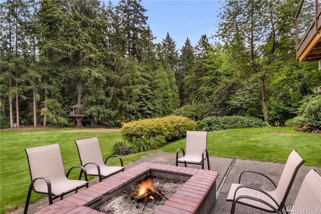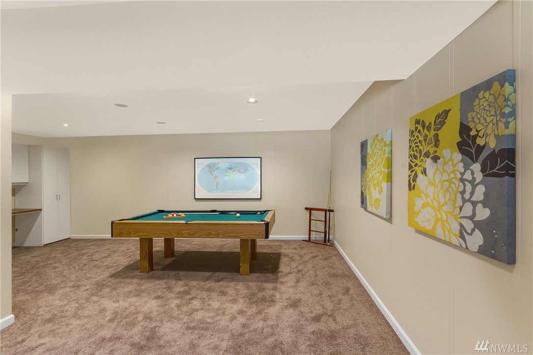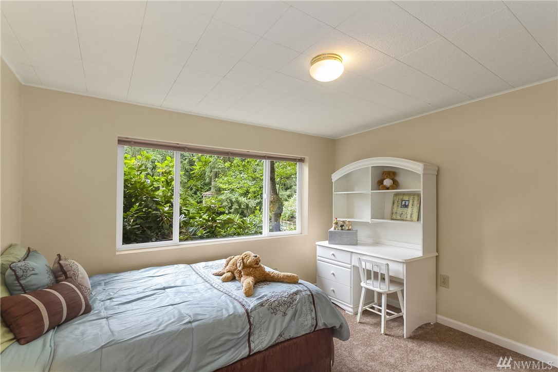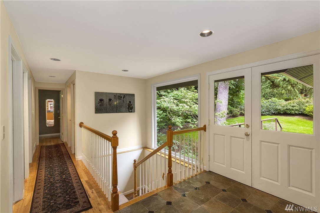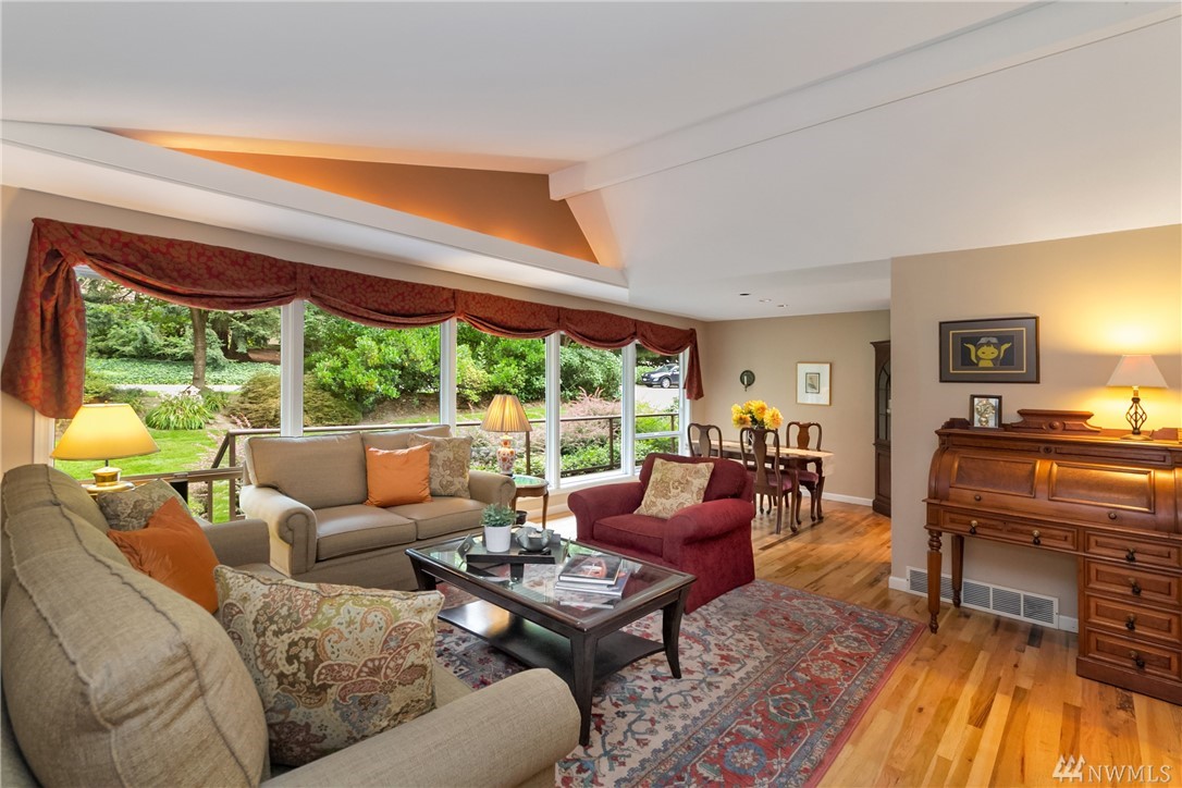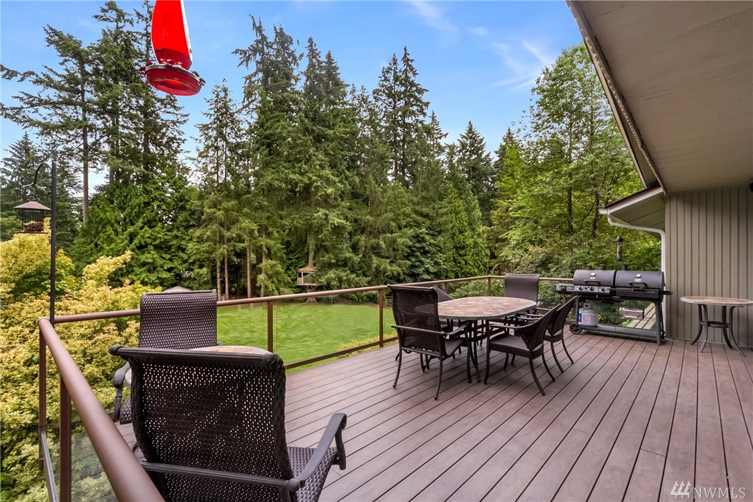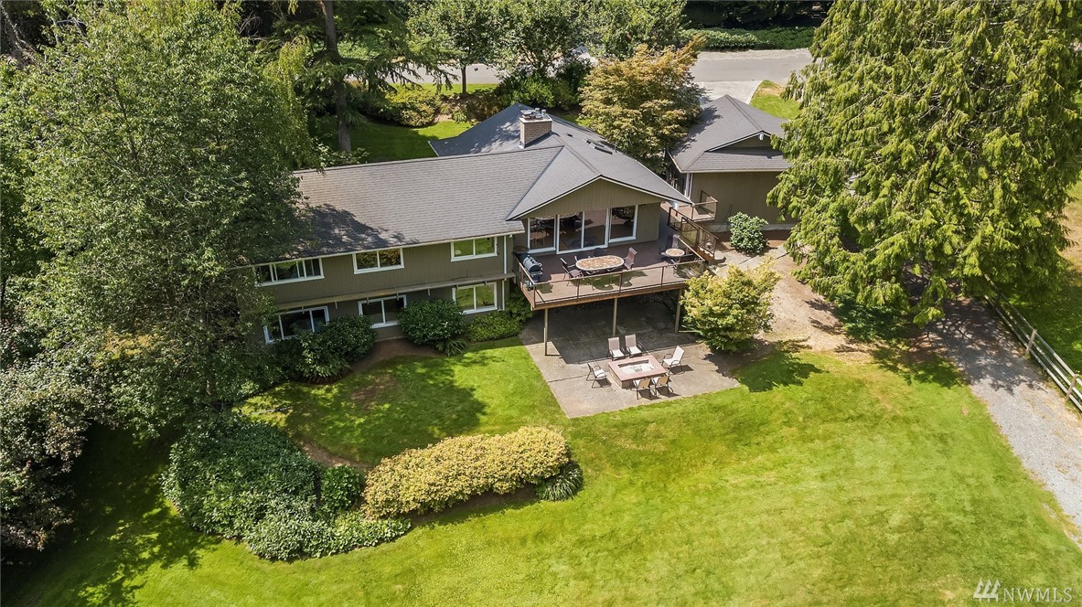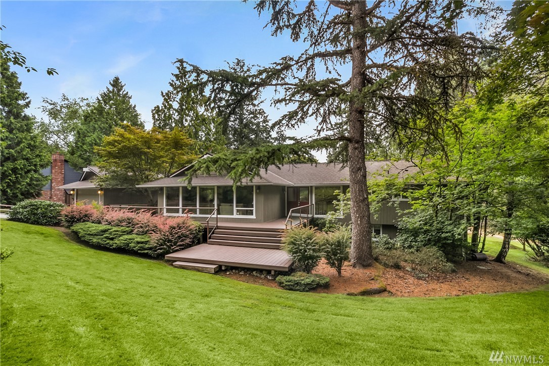 Rare offering in the heart of Bridle Trails...lovely home w/ beautiful landscaping sited on a level lot drenched in sunlight! Enjoy outdoor entertaining on the expansive lawn, covered patio & large Trex deck. Interior boasts hardwood floors, designer paint colors & lots of windows. Updated Chef's kitchen merges with family room & opens to deck. Lower level offers tons of flexibility. Huge rec rm, 3 bedrooms, bath and exterior access. Community pool and riding arena. Den & extra bedroom equals 6.