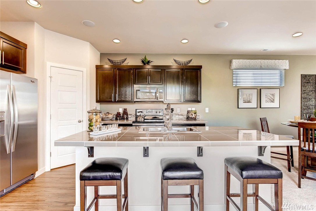 Phase III & final opportunity in Bridges under $375K. Pre-sale. Corner lot! Three bedroom w/huge bonus room & loft (Or upgrade to 4th bedroom w/loft). Spacious kitchen, SS appliances, walk-in pantry & large island flows to oversized sliding doors & covered, year round deck. Awesome 5 piece master w/soaking tub & walk-in closet. Smart home "The Nest Thermostat". Landscaped.The Bridges-gorgeous, master planned community w/parks,trails,& minutes to freeways, Kent Station, & new Trader Joe's.