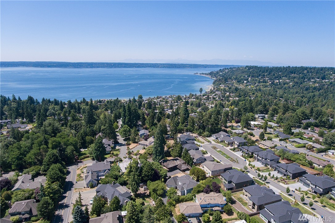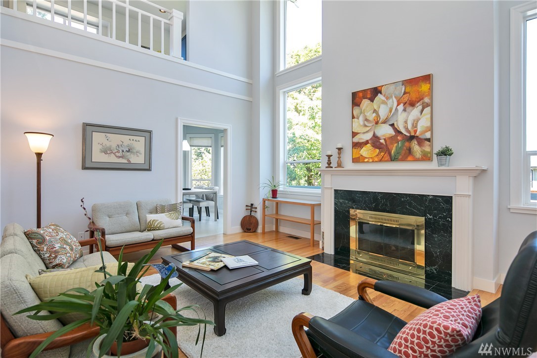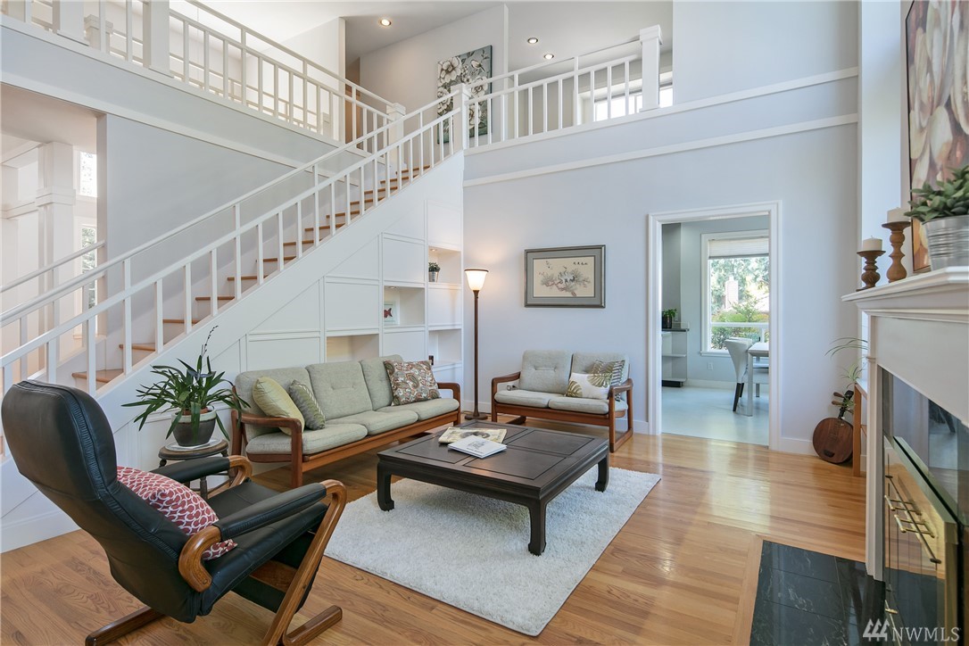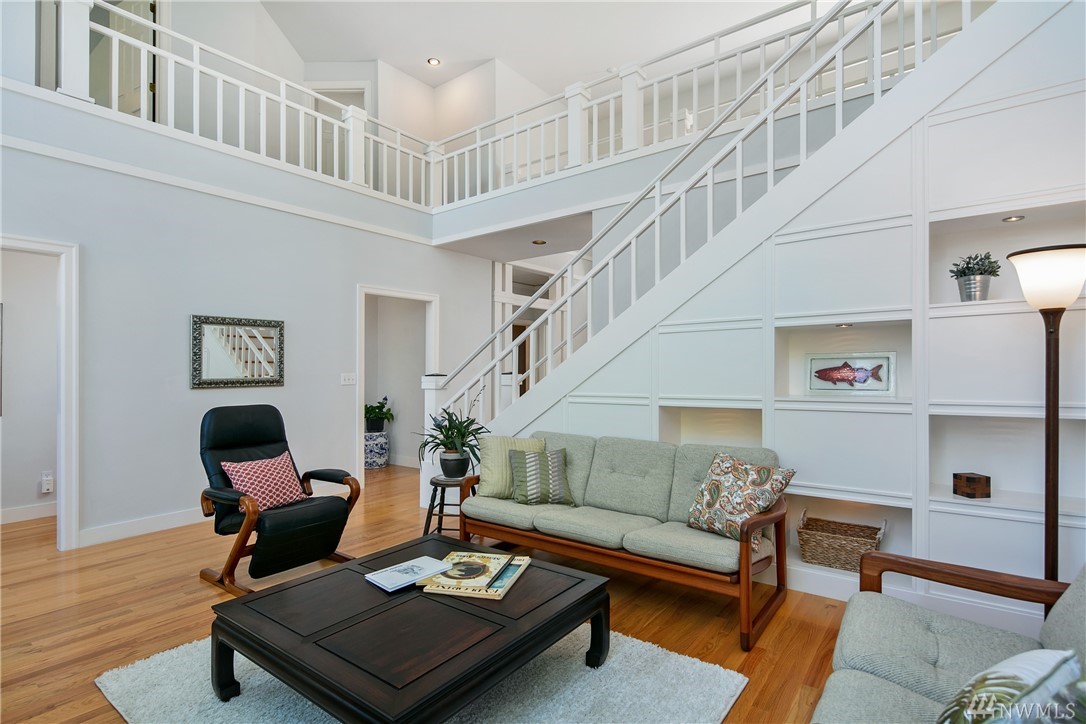 Situated down a priv. drive in a quiet area of Normandy Park sits this gem! A striking-entry~Gorgeous hdwds, 17ft soaring ceilings~walls of windows bathed in nat. light~Architectural profiled w/Personality & spirit~Trad'l Ext w/modern flair inside.6-panel drs; marble surround gas frpl; 3 1/2" white trim~All The right spaces~ Large cook's kitch~Main flr Master suite~Den~loft/bonus.Privileged privacy~Sunshine setting; refreshing shady nooks. Bkyard hideaway~2 layered deck~Landscaped to Perfection!
