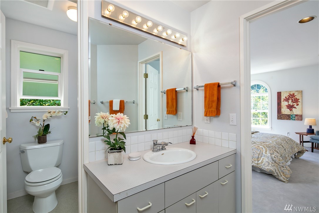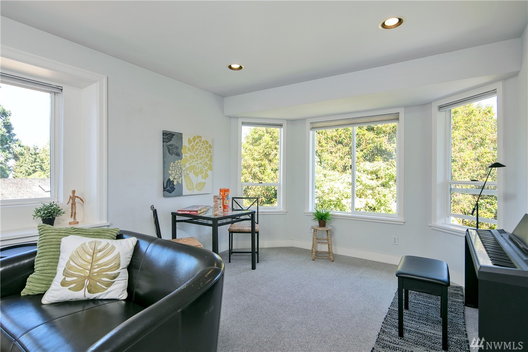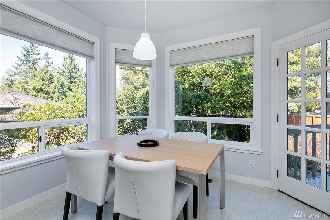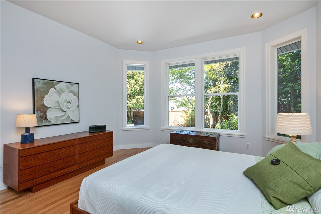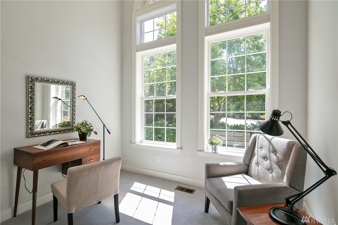 Situated down a priv. drive in a quiet area of Normandy Park sits this gem! A striking-entry~Gorgeous hdwds, 17ft soaring ceilings~walls of windows bathed in nat. light~Architectural profiled w/Personality & spirit~Trad'l Ext w/modern flair inside.6-panel drs; marble surround gas frpl; 3 1/2" white trim~All The right spaces~ Large cook's kitch~Main flr Master suite~Den~loft/bonus.Privileged privacy~Sunshine setting; refreshing shady nooks. Bkyard hideaway~2 layered deck~Landscaped to Perfection!