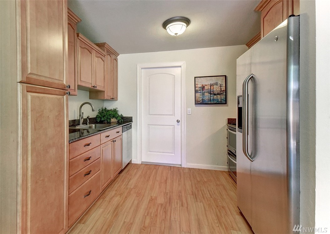 You will love this well-maintained and remodeled townhouse! There are 3 generous bedrooms on the upper level with custom closets and an updated full bathroom. Master bedroom has private deck. New carpets, fresh paint, ample storage, double-paned windows, sprinkler system. Kitchen has granite counters and SS appliances. Enjoy summer barbecues on the slate patio in the nicely landscaped and completely fenced backyard! Oversize 1 car garage. Close to major roads, buses, shops, restaurants & parks.