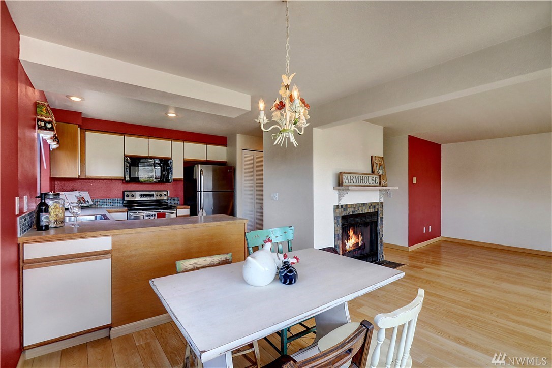 Tastefully updated end unit in the heart of downtown Edmonds! Enjoy this southfacing home adjacent to the park w/newer laminate wood flooring & baseboards thru-out, updated baths w/tile flooring/counters & fixtures, kitchen has tile backsplash & SS appliances, light filled living room w/charming wood burning fireplace, large master suite w/views of the park, oversized garage w/add'l parking spaces, amazing location w/5 minute walk to downtown shops, enjoy 4th of July fireworks from your deck!