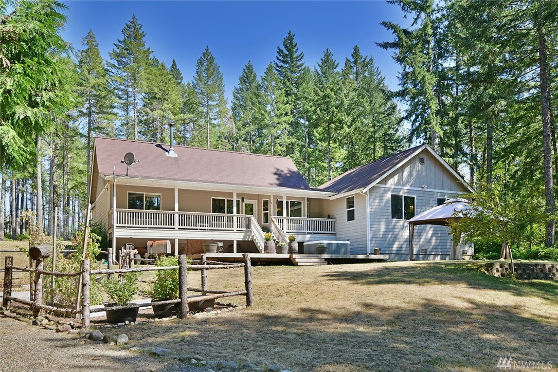 Amazing 5 acre mini-farm you’ve been waiting for! Private custom-built home with 3 bdrms, 2 bath & bonus room. Enter to vaulted ceilings and a bright & open layout. Modern kitchen with stainless appliances & breakfast bar. Spacious living & dining areas with cozy wood stove & tons of natural light. Master suite with 5-piece bath & walk in closet with barn door. Updated fixtures & doors, Hardi-plank siding, large covered deck, hot tub, multiple garden areas, greenhouse, RV parking & much more!