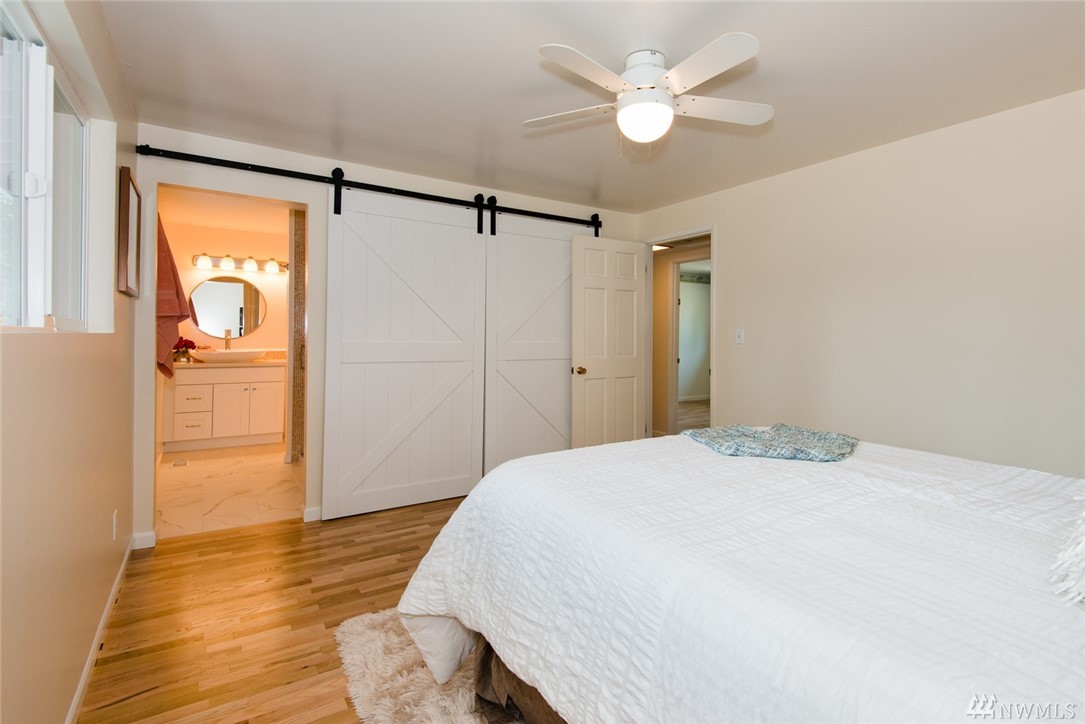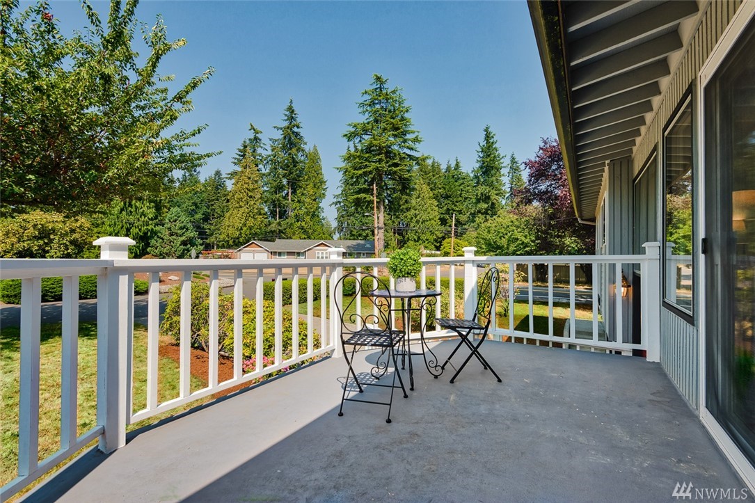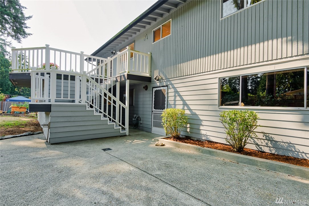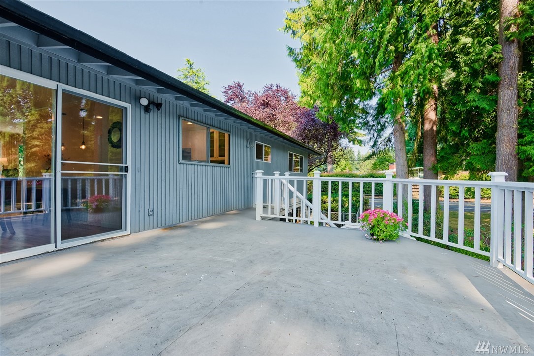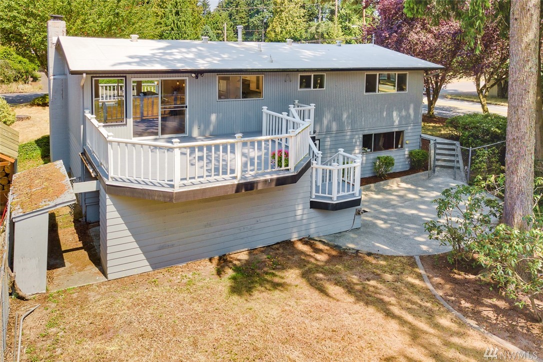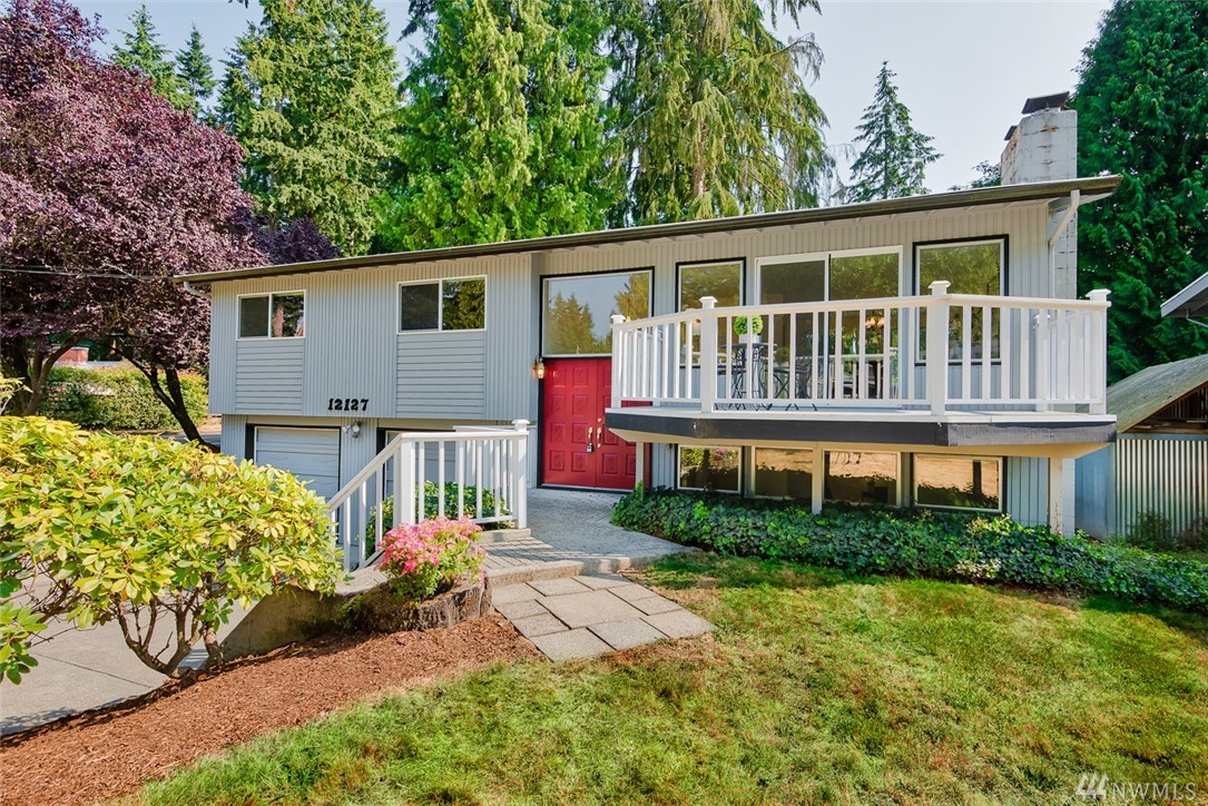 Tastefully updated Bridle Trails home on a huge 11,325 SF corner lot. Gleaming hardwood on main. Cheerful kitchen opens to dining w/soft close cabinets, quartz counter & chic glass tile backsplash. Master w/updated bath, rain shower, quartz counter, barn closet door. Deck off living & 2nd deck off dining are perfect for gathering or everyday. 2 add'l bedrm+remodeled full bath complete the main. Rec room, den, 3/4 bath on lower. Level fenced yard, patio, RV/boat parking pad, storage. Must see!