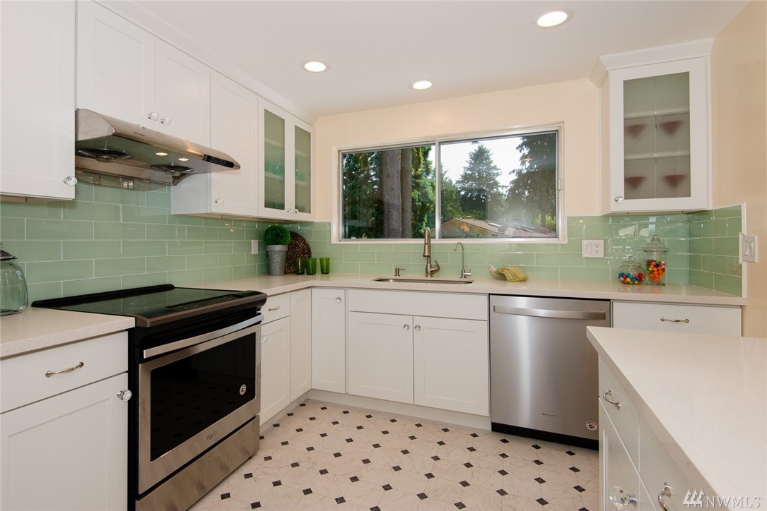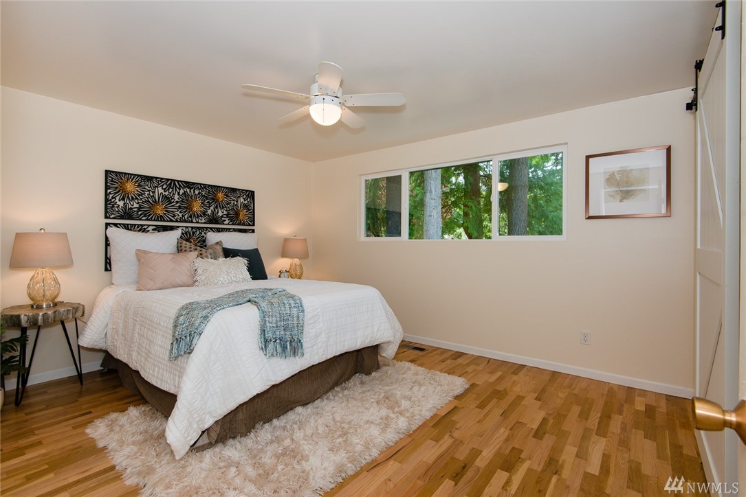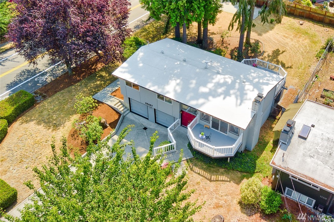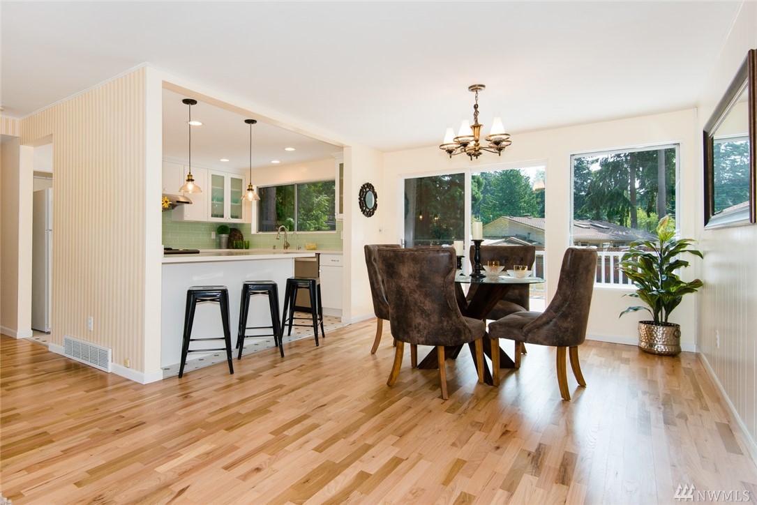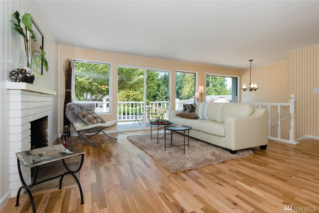 Tastefully updated Bridle Trails home on a huge 11,325 SF corner lot. Gleaming hardwood on main. Cheerful kitchen opens to dining w/soft close cabinets, quartz counter & chic glass tile backsplash. Master w/updated bath, rain shower, quartz counter, barn closet door. Deck off living & 2nd deck off dining are perfect for gathering or everyday. 2 add'l bedrm+remodeled full bath complete the main. Rec room, den, 3/4 bath on lower. Level fenced yard, patio, RV/boat parking pad, storage. Must see!