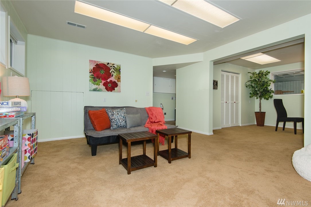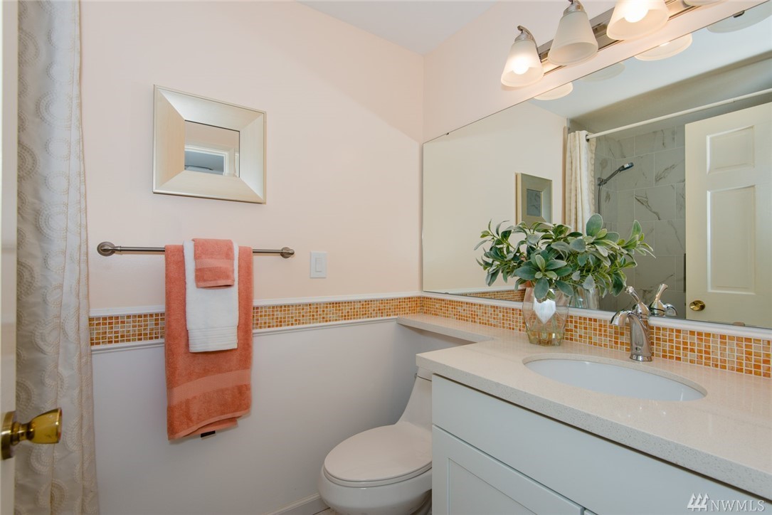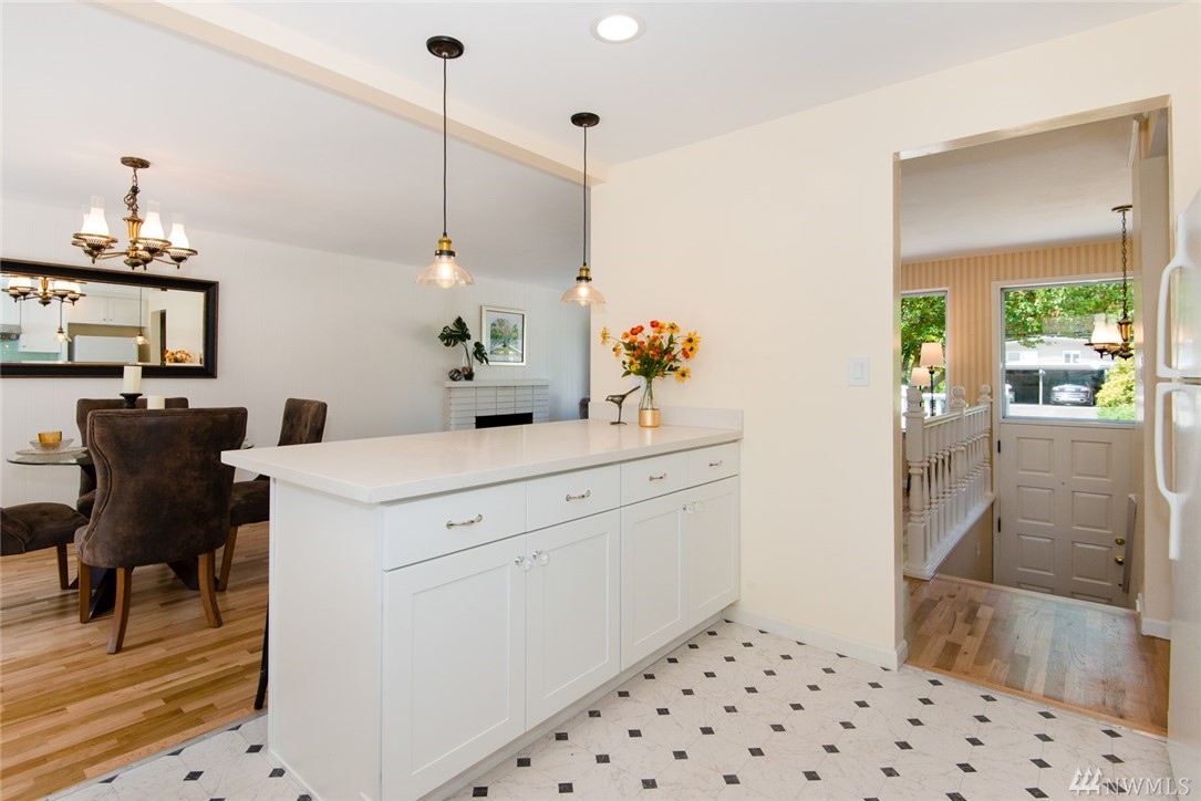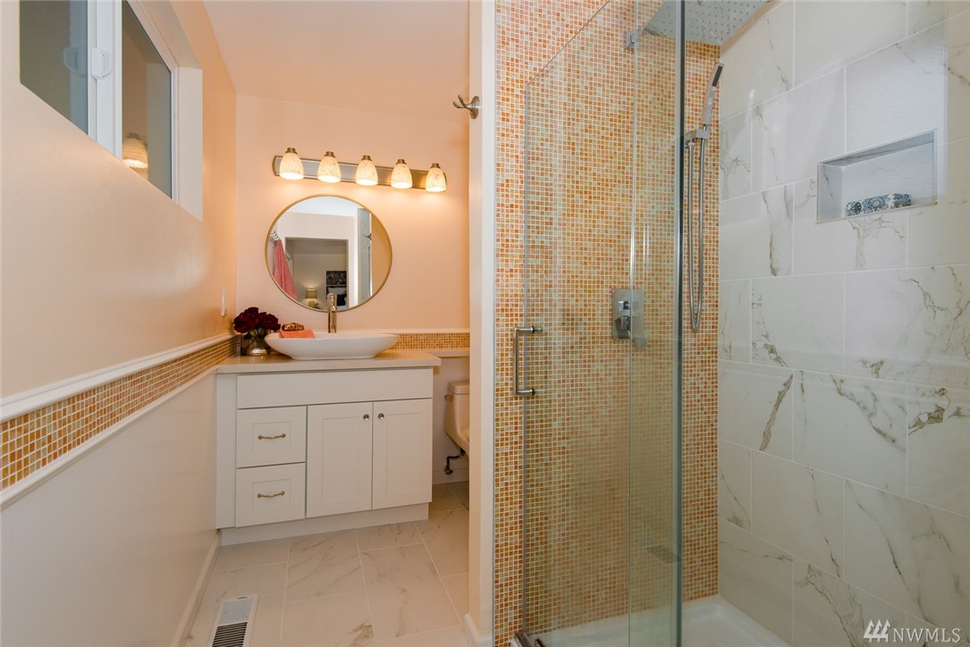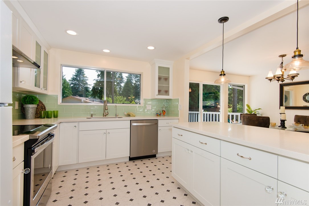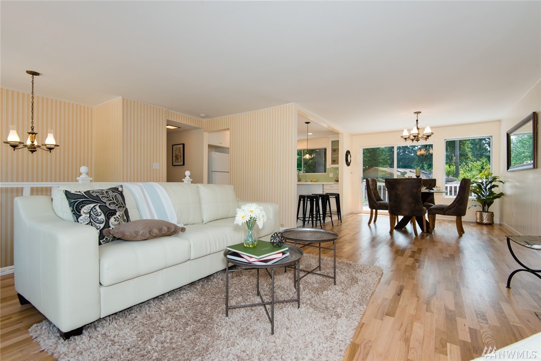 Tastefully updated Bridle Trails home on a huge 11,325 SF corner lot. Gleaming hardwood on main. Cheerful kitchen opens to dining w/soft close cabinets, quartz counter & chic glass tile backsplash. Master w/updated bath, rain shower, quartz counter, barn closet door. Deck off living & 2nd deck off dining are perfect for gathering or everyday. 2 add'l bedrm+remodeled full bath complete the main. Rec room, den, 3/4 bath on lower. Level fenced yard, patio, RV/boat parking pad, storage. Must see!