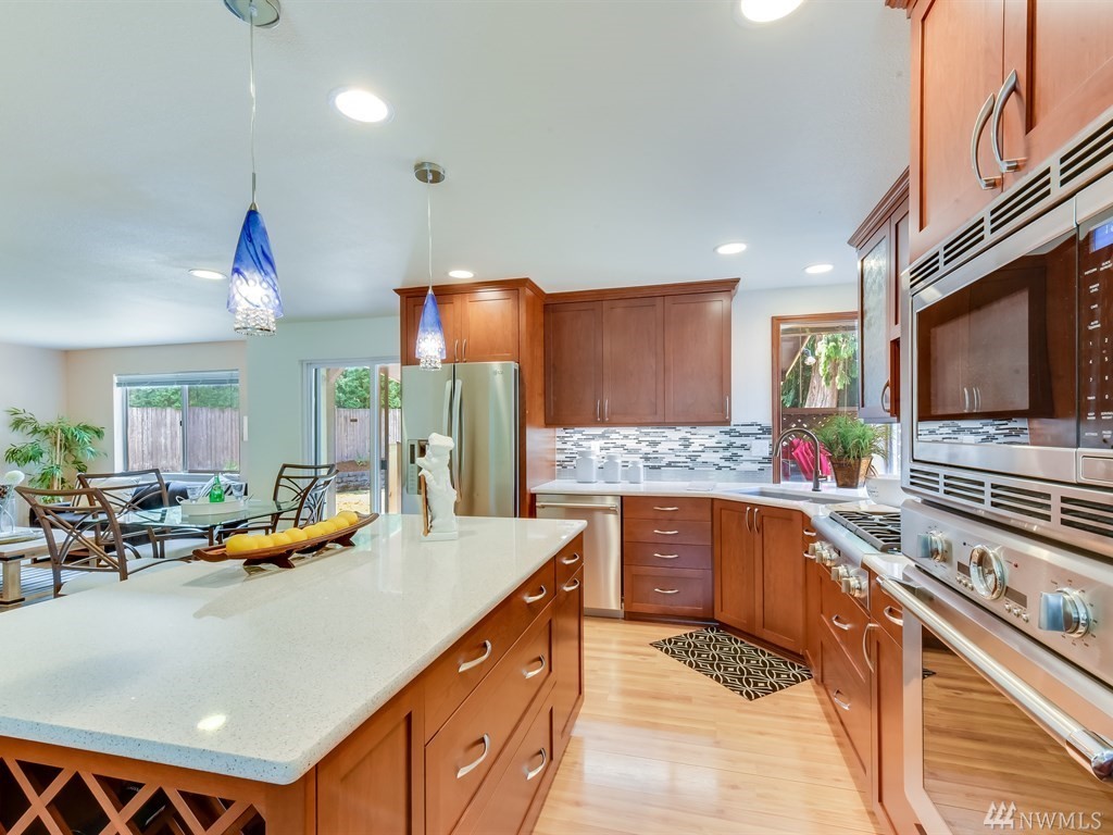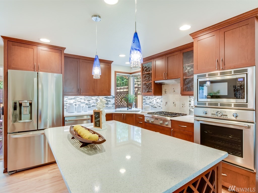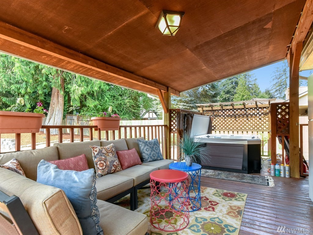 Comfort & serenity greets you in this bright tastefully updated home in a quiet cul-de-sac. Nice floor plan boasts large master bed w/en-suite bath, chef's eat-in kitchen w/gas range, quartz and SS appliances. Open floor plan with living rm, dining rm and family rm is perfect for all your guests. Slider opens to a covered outdoor living space w/hot tub, fenced-in yard and gardens. RV/Boat parking + 2 car garage. Walk to DT Sammamish or stay home and enjoy the AC. Top rated Lake WA schools!