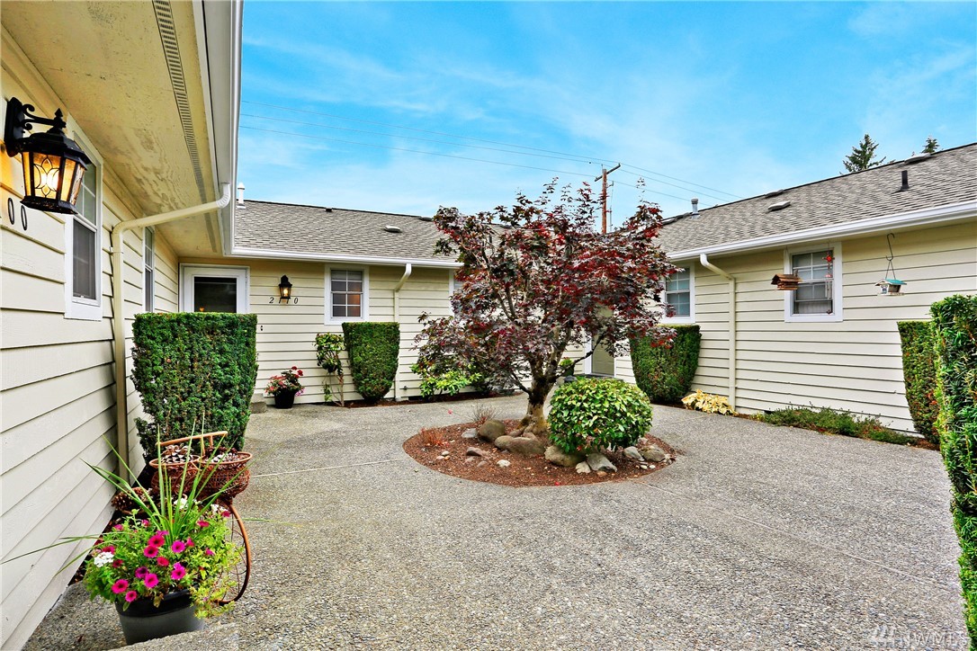 Ideally located in beautiful Enumclaw, this one level, end unit condo will not disappoint. Meticulously maintained complex just a minute away from Hwy 410 & DT Enumclaw. Boasting an upgraded kitchen, & more than enough cabinetry, this home offers 2 spacious bedrooms with vaulted ceilings and 2 full bathrooms, including master bedroom w/ bath. Beautiful, large private backyard w/ patio with green gardens, Mt Rainier views. New ext/int paint, A/C, new flooring, new appliances, new lighting & more.