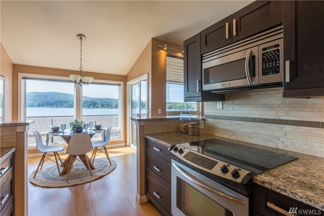 Come live the Bellingham dream at LakeView Terrace! This lovely condo has gorgeous Lake Whatcom views from just about every room! Take in the sunrise from your deck, play in the lake or on your boat from the dock, sunbath on the grassy yard space, spend your evenings paddle boarding. During those cooler months enjoy the lovely updated kitchen with granite, SS appliances, gorgeous high end cabinetry and bamboo floors. All this just minutes from downtown in the desirable Silver Beach community.