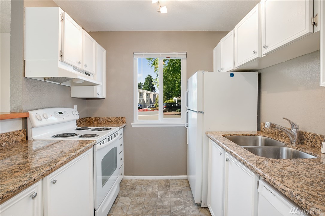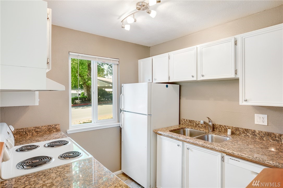 Beautifully updated desirable ground floor end unit. Great level outdoor access in the light filled unit. 1 bedroom 1 bathroom with slab granite counter tops, freshly painted, this is ready to move in for owner or investor. Master has large walk-in closet & all appliances included including W&D. Nice amenities with club house, pool, sauna, ping-pong and foosball! Close to the new Totem Lake Shopping, hospital, 405. Healthy HOA, no rental cap, pets ok some restrictions. Covered parking spot!