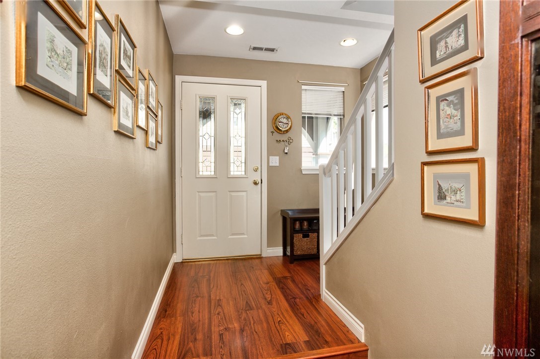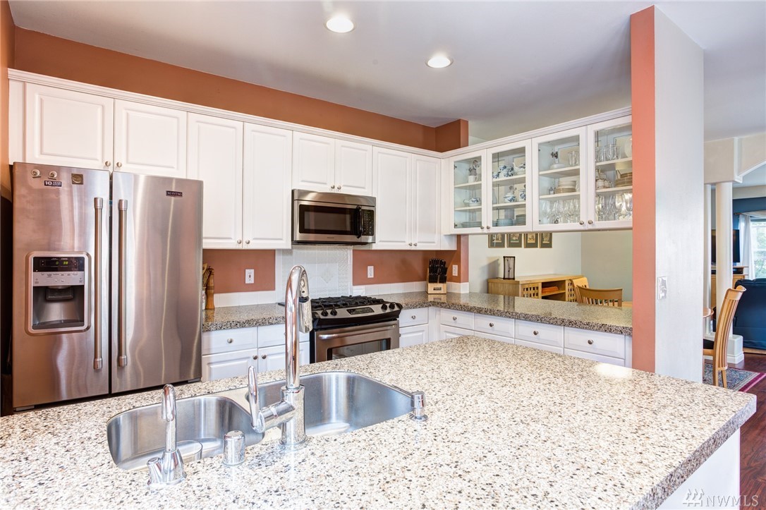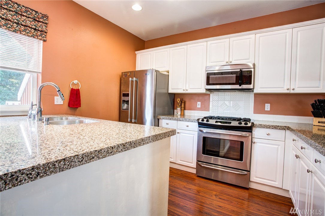 Walking distance to Issaquah Commons, Gilman Village, and Transit center. Ideal location when snow or other unfavorable conditions hit. Large private fenced backyard: big enough for family gatherings and pets! Lots of storage! Quiet downtown neighborhood! 3 bedrooms, 2+ bath end unit with upgrades: Kitchen-granite counters, gas stove, laminate hardwood floors in Entry & Main floors; tiled master bath w/ heated floors. Over-sized Tandem 2 car garage. The community is 8 duplex style homes