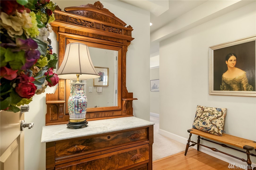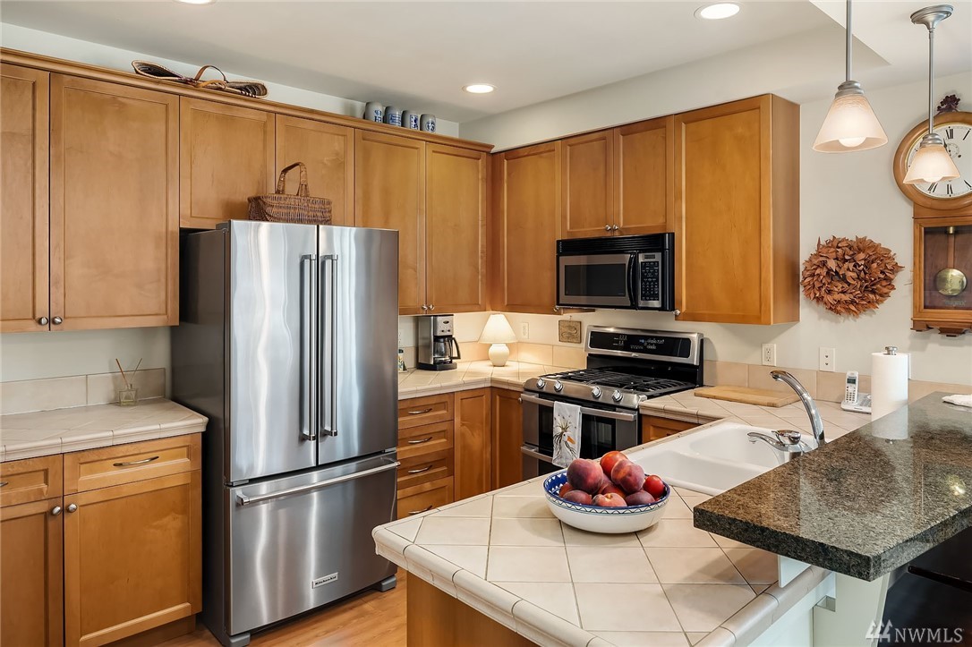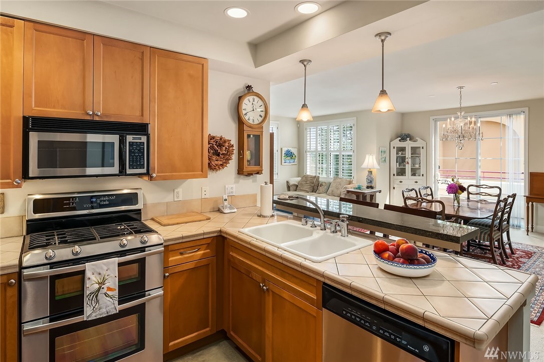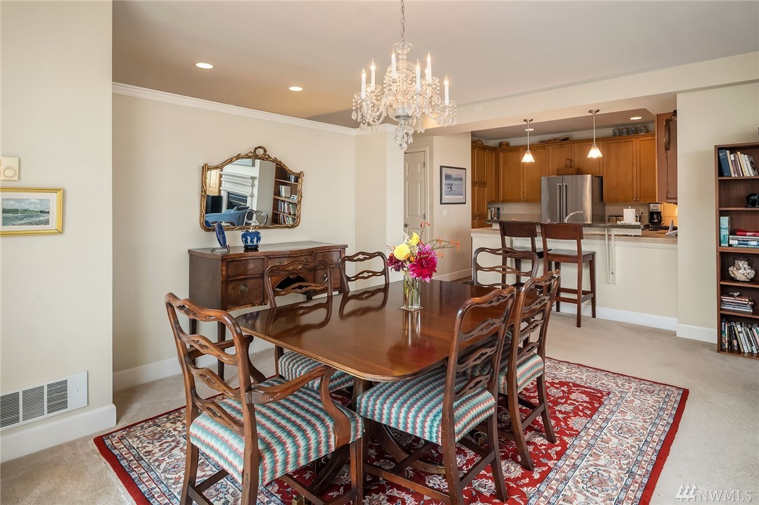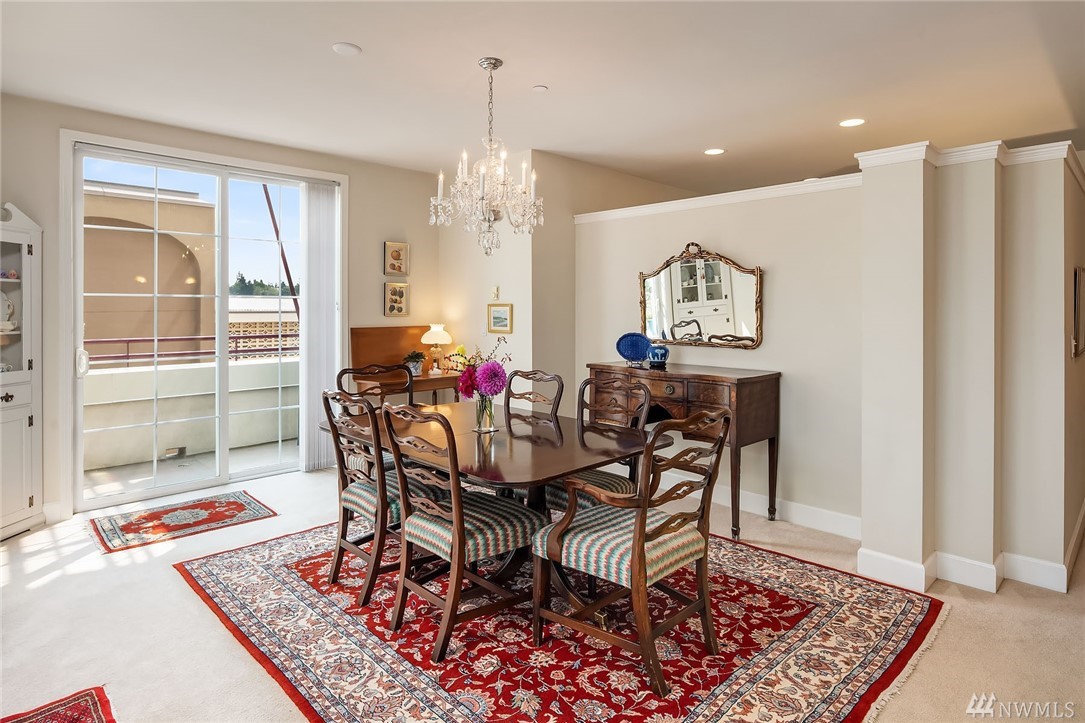 Beautifully appointed home in the Montesano.Rarely available. Corner unit with 2bd/2ba featuring Lake Wa,Cascade Mountains, Mt Baker, City views. Spacious & open living/dining/kitchen area. Large kitchen w/raised bar, gas stove, & stainless appliances. Gas fireplace & deck. Master suite features walk-in closet w/generous closet organizers, master bath w/double vanity, tub/ walk in shower. Large guest bdrm.Storage space, two secure parking spaces.Chandelier goes w/seller. Pet friendly Strong HOA.