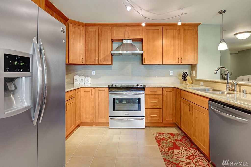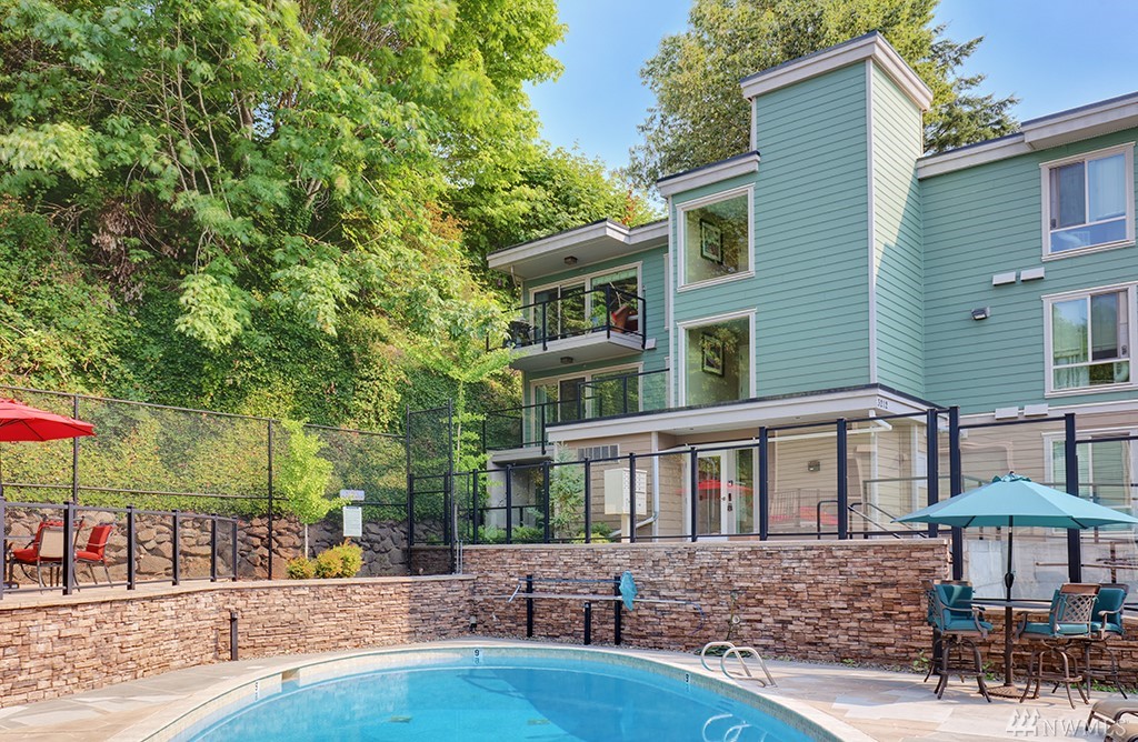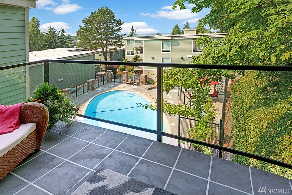 Perfectly appointed penthouse w/view of pool & lake. This fully updated home features a spacious great room & kitchen w/stainless steel appliances, cherry cabinets, designer lighting & granite. Privacy abounds w/almost no shared walls, 2 decks & includes 3 bed + den, W/D in unit & master bedroom w/walk-in closet. Valuable amenities include secure bldg, elevator, pool, BBQ area, community room w/kitchen, sauna, TV, & exercise space. 2 parking spots, easy commute & pet friendly. NO RENTAL CAP!