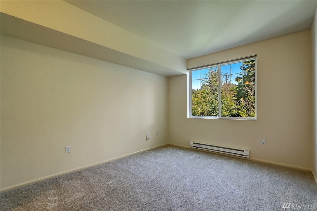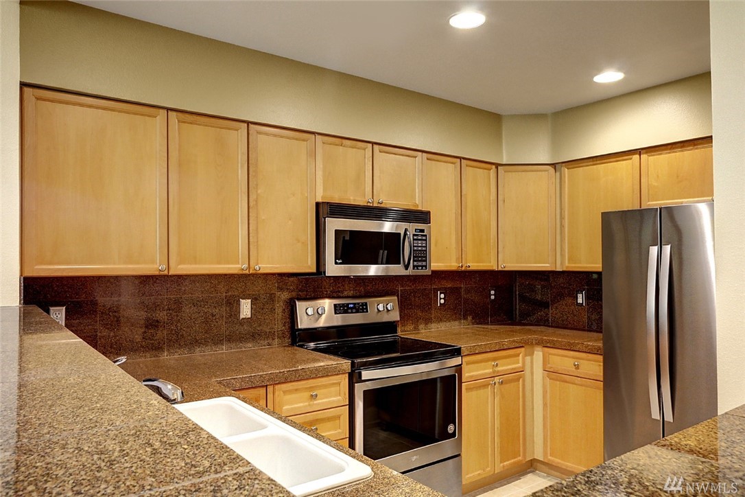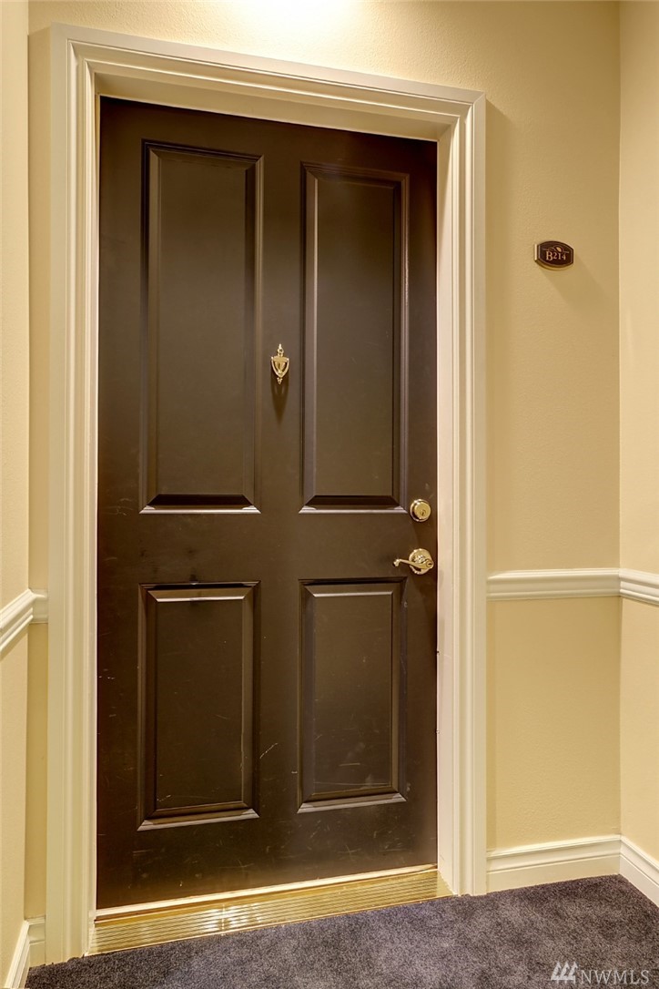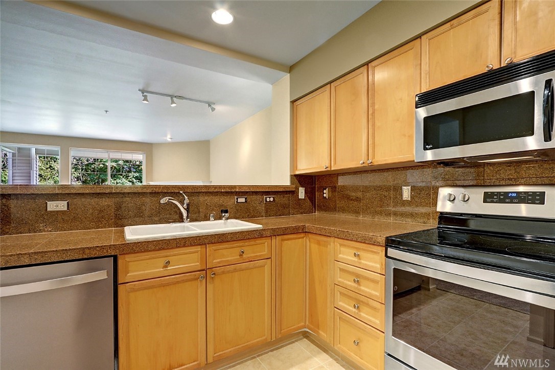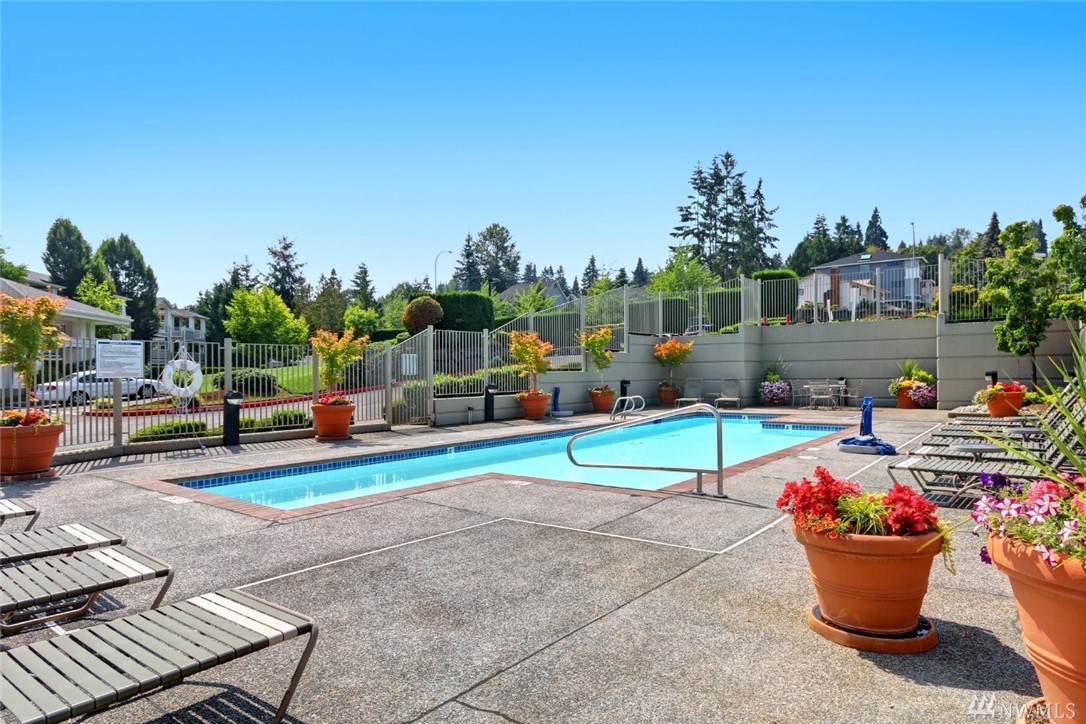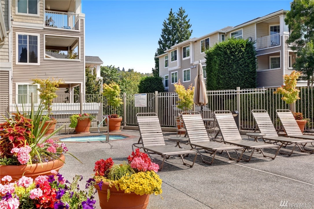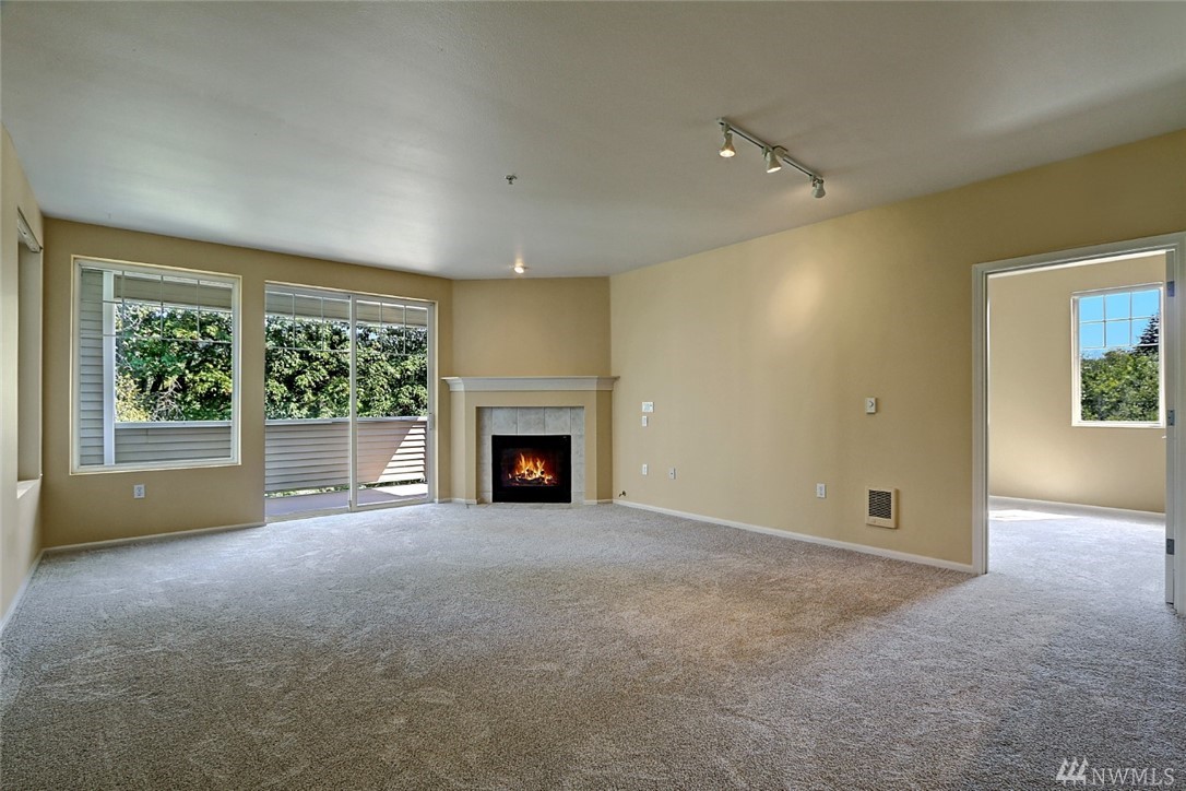 Le Chateau Condos: Exceptional SE corner unit overlooking wooded greenbelt; Quiet w/private covered deck; Immaculately clean; Newly painted throughout; New tile floor grout in kitchen & baths; New carpet; New dishwasher, range & refrigerator; Gas fireplace; Enclosed W&D; Secure parking & storage; Secure lobby entrance + Grand salon w/kitchen & FP + Fitness & biz center; Seasonal heated pool & hot tub; Easy access to services, shopping, transit & commutes. No special assessments. Rental cap met.