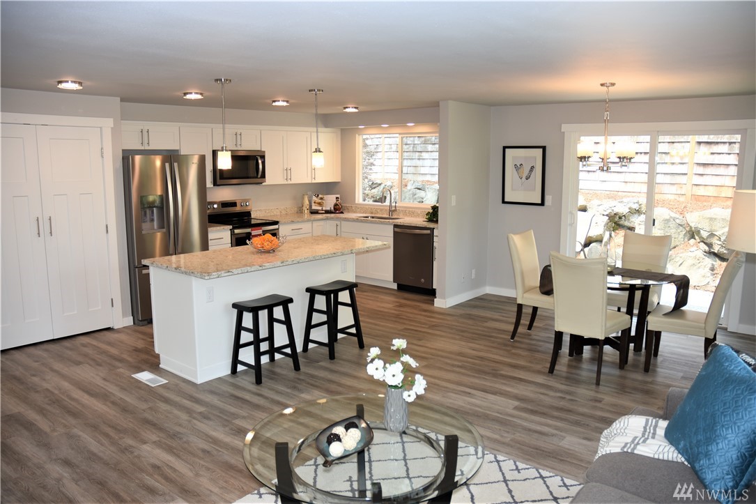 Looks like new construction. All new windows, doors, trim, cabinets, quartz counters, appliances, flooring, lighting - even the landscaping! Open concept living, dining, kitchen with huge island. White cabinets with S/S appliances. Full-size pantry. Master with walk-in closet and own bath. Huge family room at the back of the house with slider to large flat back yard. 1-car garage with room to add 2nd bay or park an RV. A true turn-key home ready for you to move in.