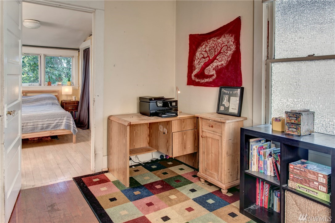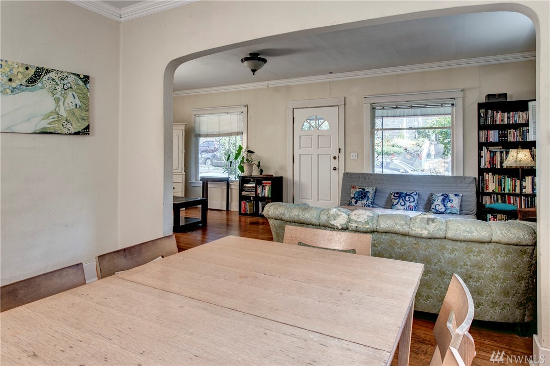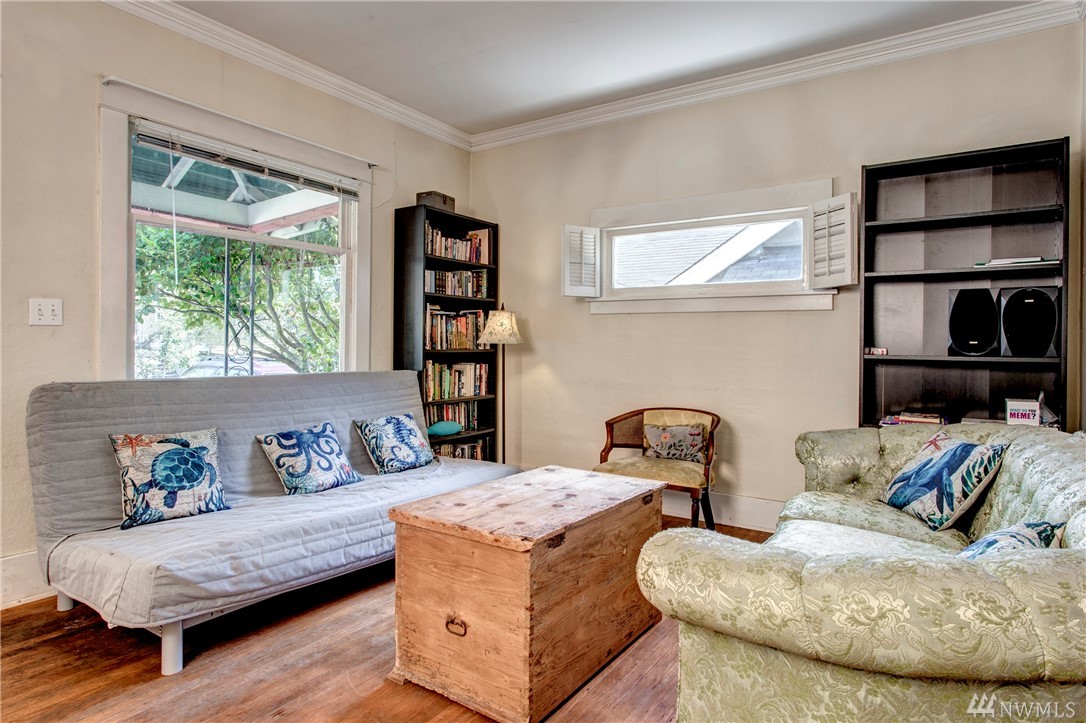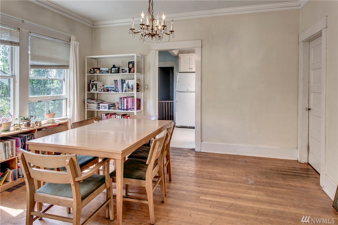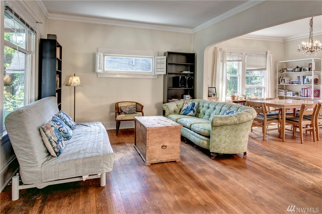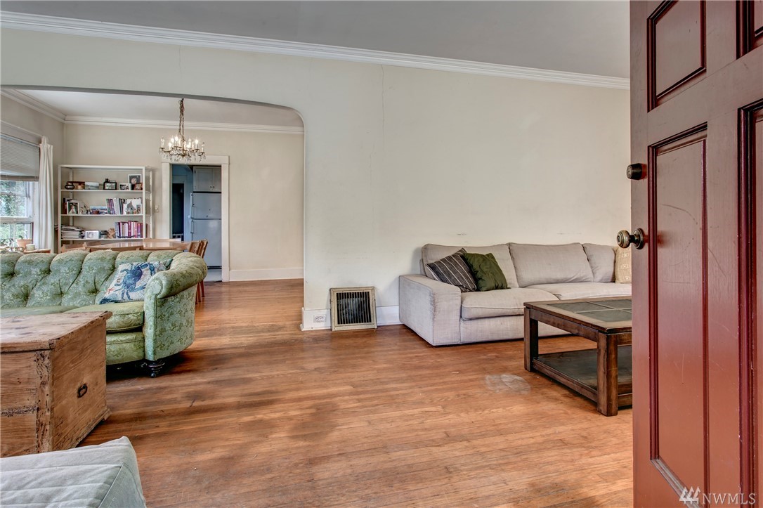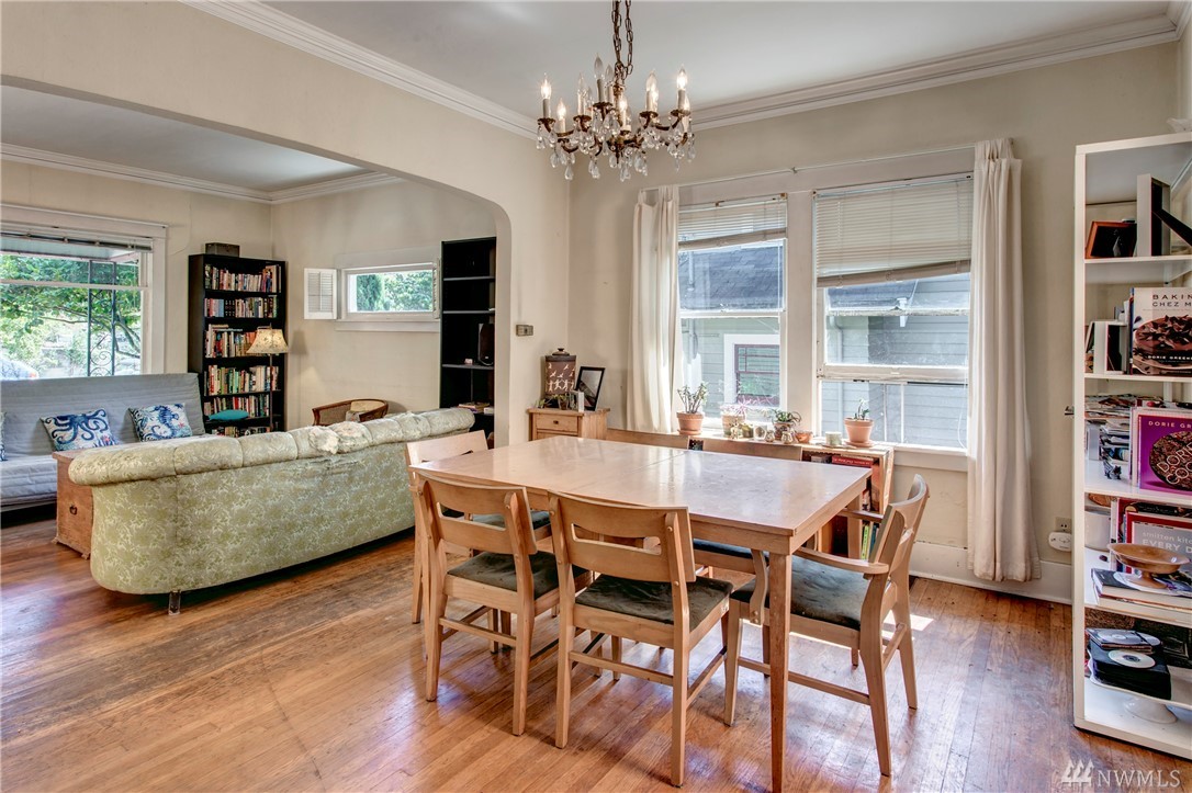 Large open dining/livingroom area w/ high ceilings & lots of natural light. Period details throughout. 2 bedrooms on Main w/3rd rm used as office/den. Downstairs fam room cld be another Bed w/ private bath. Ample storage and many possibilities for unfinished