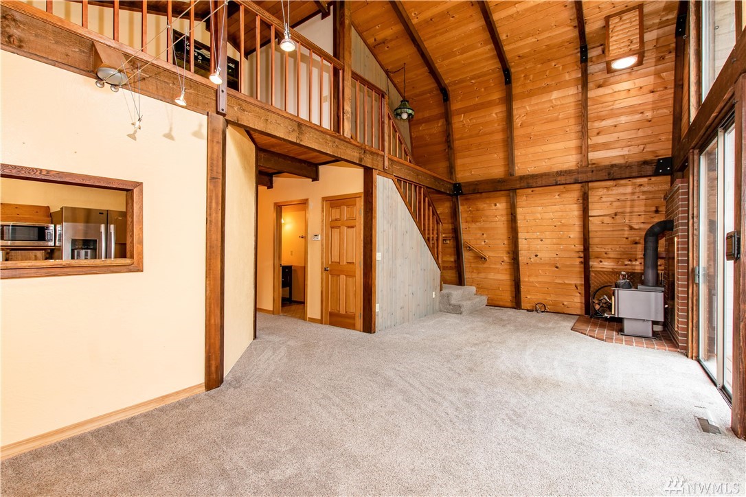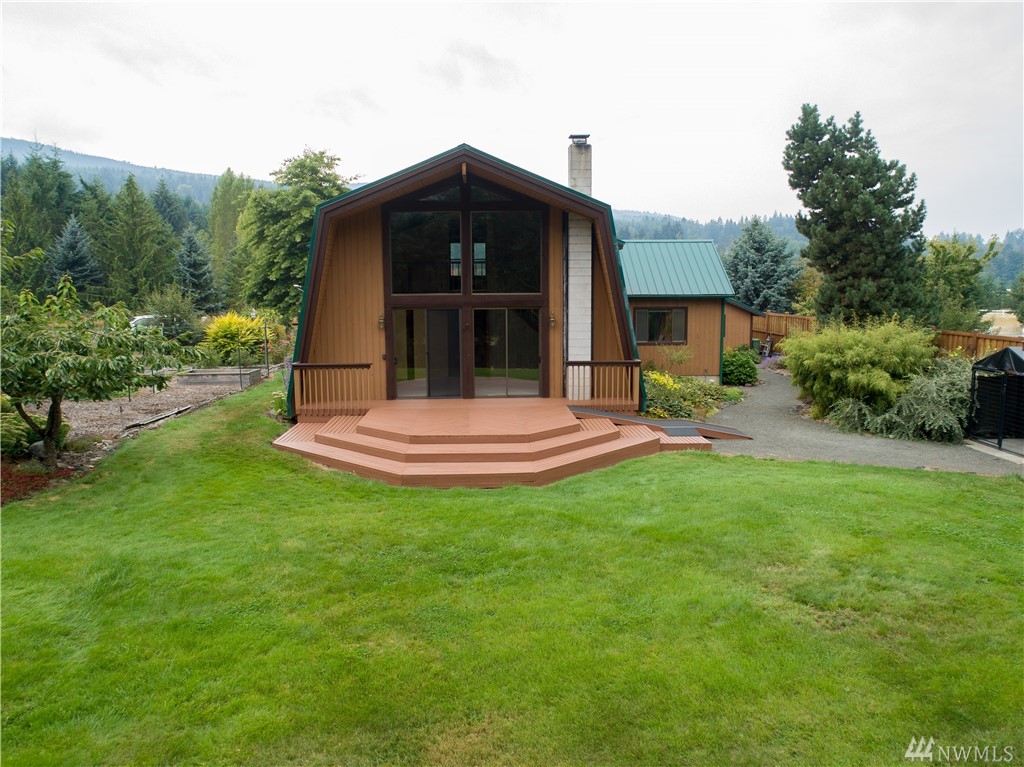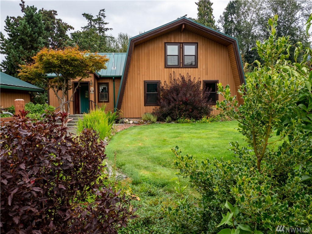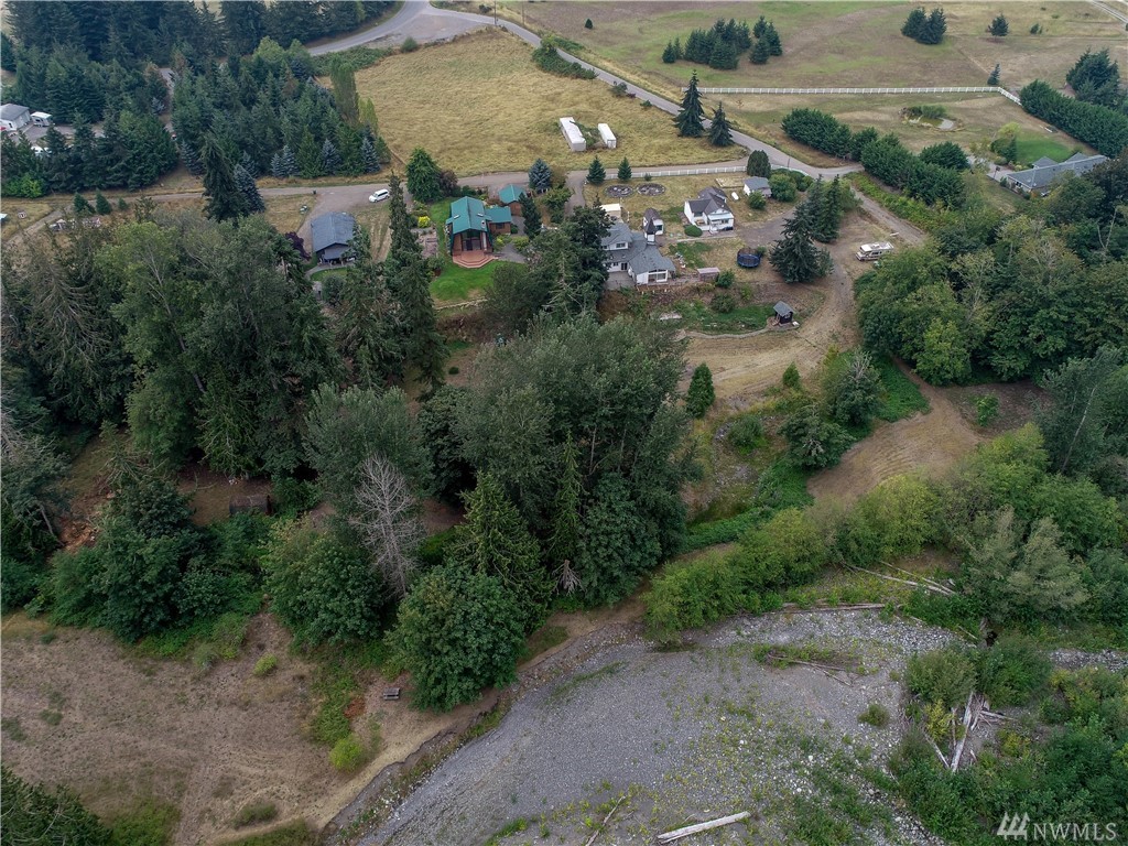 Well maintained cabin styled home on the banks of the Dungeness River. This 3 br 2 ba home sits on fenced 2.68 acres. The grounds are landscaped with fruit tree's, berries and a garden area with deer fencing. Irrigation water is onsite. Stream fed pond with crystal clear water. Several outbuildings for storage and a detached 2 car garage. Heat pump and wood stove will keep this home cozy year round.