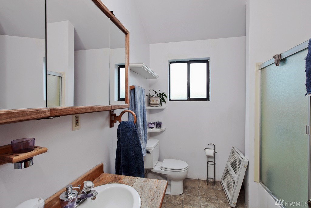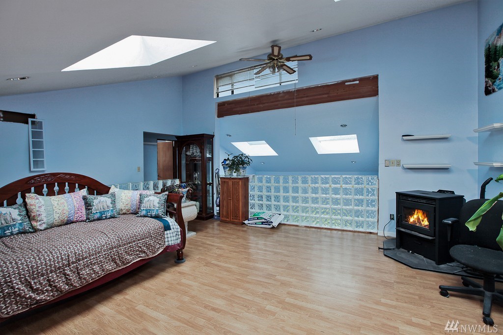 Edmonds three bed, 2.5 bath home! A little cosmetic fixing will help this one shine! Spacious living room/dining room combo on main level, with slider doors to big back yard. Master bed and bath on main, with two more beds and full bath upstairs. Also on the top floor is an additional family room space that could have many uses. Skylights create open and airy feeling, as do the vaulted ceilings. The two pellet stoves= warm! Very quiet cul-de-sac. Large driveway--room for toys!