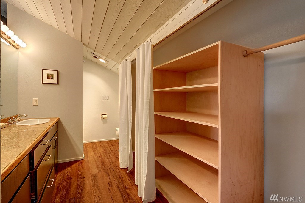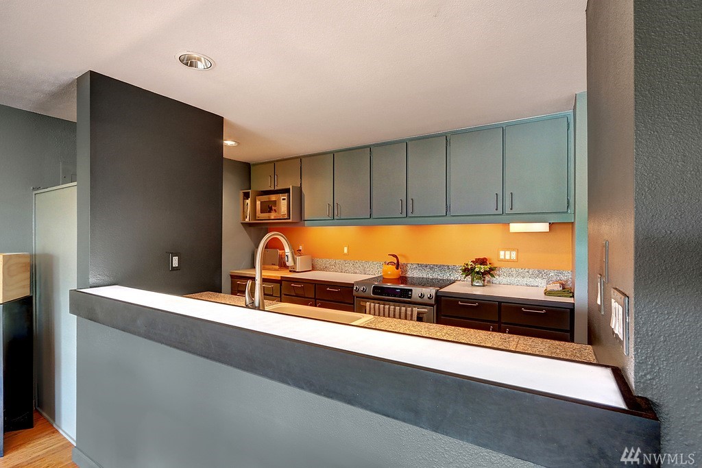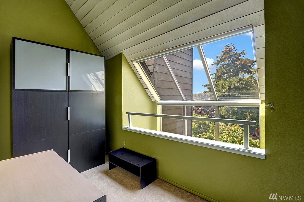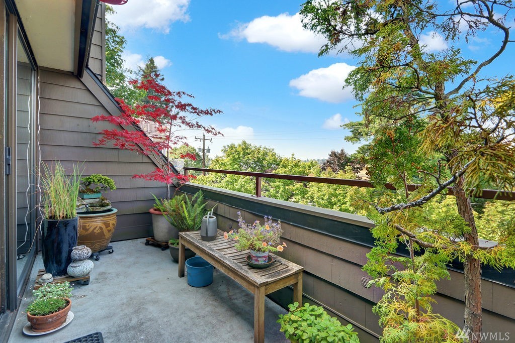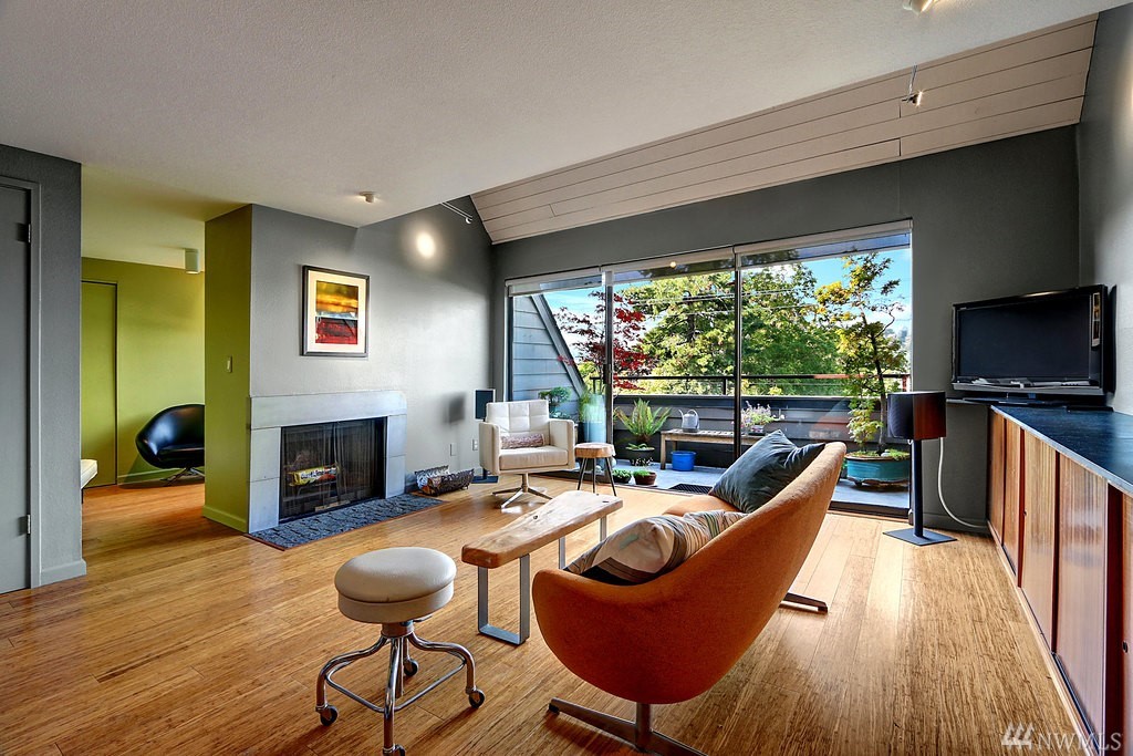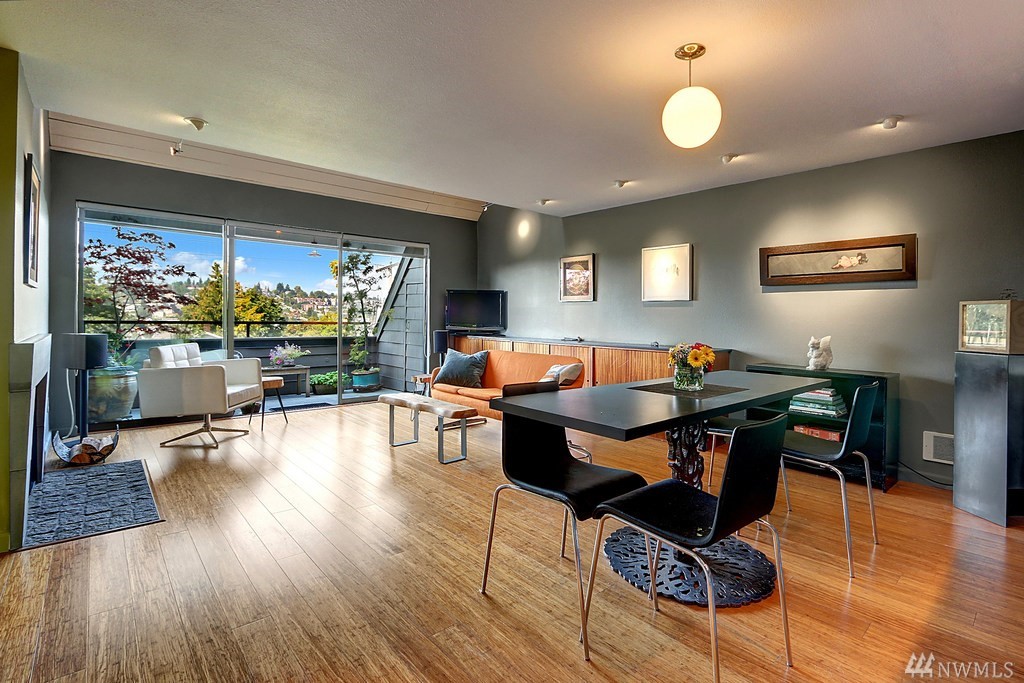 Lives like a house! Chic Urban loft on Queen Anne's West Slope, with gleaming bamboo floors, woodburning fireplace and recessed lighting. Modern updated kitchen with stainless steel appliances and cool diode-fitted bar/counter. Master suite with huge walk-in closet and bath. View deck overlooking Magnolia & Puget Sound. 2 large bedrooms + two additional flex spaces. Storage room & off-street parking included. Near Whole Foods and 1 block to Rapid Ride D-Line. No Rental cap or restrictions.