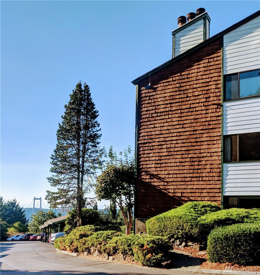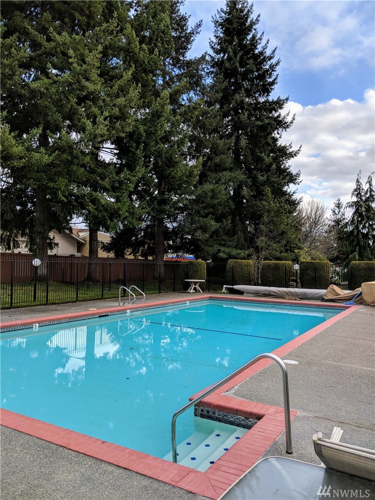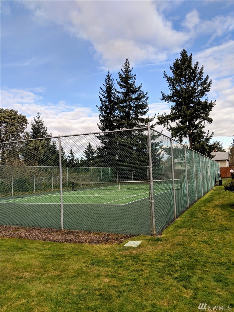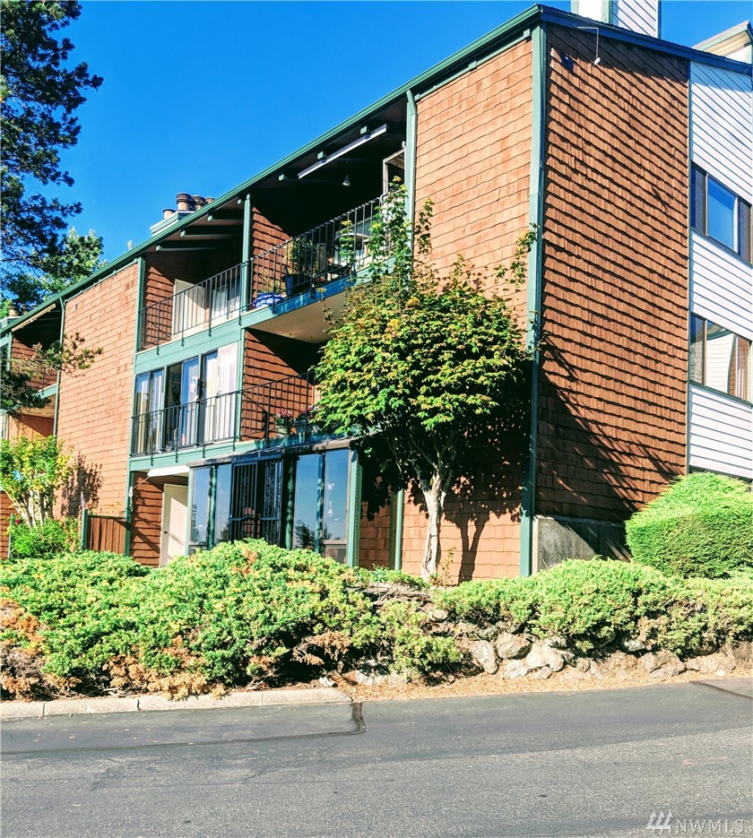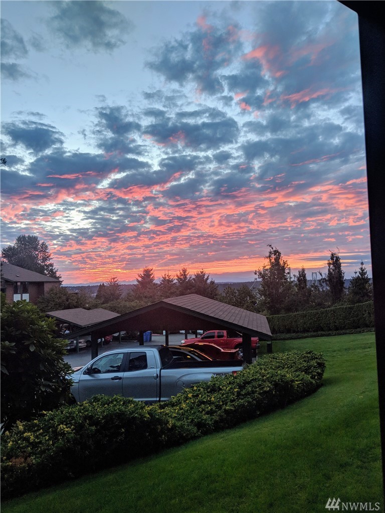 Sunset Views from 1st floor Condo unit in Gated Community features Large Sunroom/Patio w/Beautiful Sunsets. No access stairs from back patio path to open parking or a few stairs from covered prkg. Some doorways, kitchen area&Master Bath are extra wide. This unit has lots of natural sunlight. 2 BR/1.75 Bth. Storage off patio. Easily put your own finishing touches. Complex features clubhouse, sprt/tennis court, pool in sunny area&walking trails. Easy access to shopping, dining & I-5 for commuters.