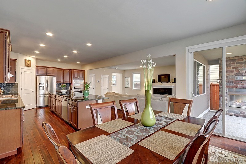 This beautiful "Magnolia Plan" residence is located in a vibrant community. It has a stunning gourmet kitchen with a large island perfect for entertaining. There is a loft for indoor activities. This awesome home has been diligently maintained, & lovingly cared for. The covered porch w/ a fireplace overlooking a good sized backyard great for outdoor & cold day relaxation. Close to highways, shops, schools,& Tambark Creek Park where the fun begins. You will love living here. Award winning school.