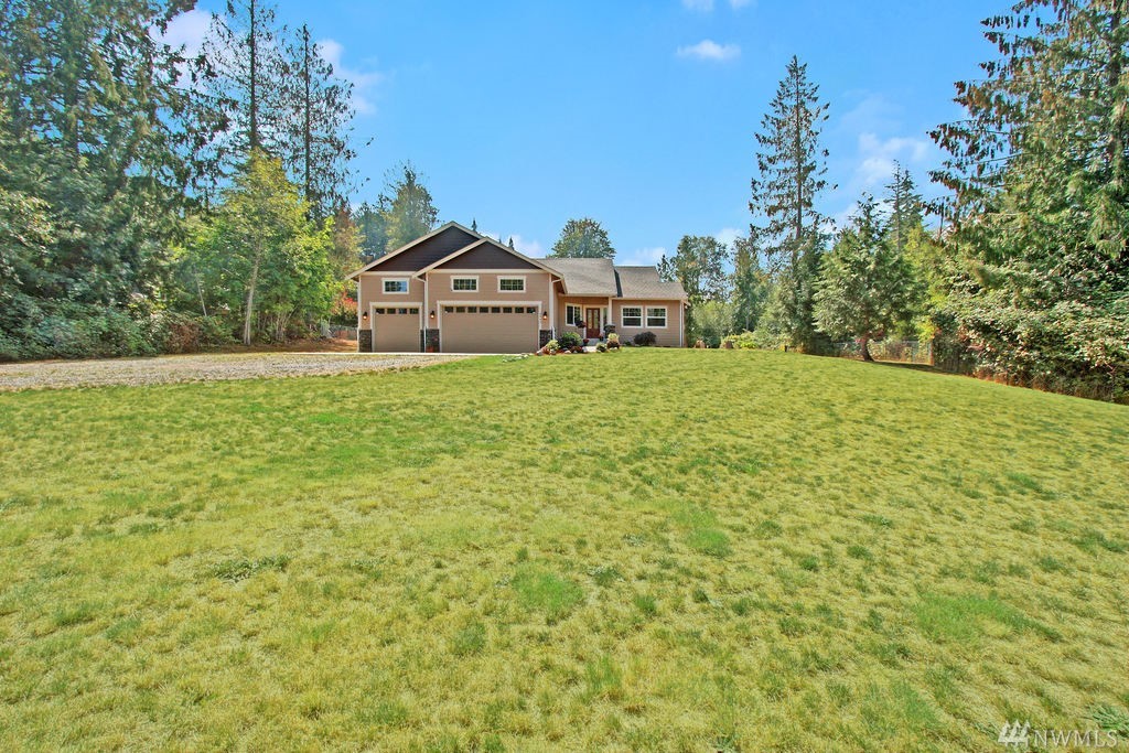 Beautiful and serene ONE STORY on 2.5 ACRES! This gorgeous home has a great floor-plan with 2225 sq ft of open living space. The vaulted ceilings provide a ton of natural light. Dark Hardwoods throughout entry, kitchen, and dining area. Kitchen has custom white cabinets with granite countertops and stainless steel appliances. Master suite with huge walk-in closet and 5 piece bath. Plenty of room for shop, horses, quads, dirt bikes - anything you want! Must see!