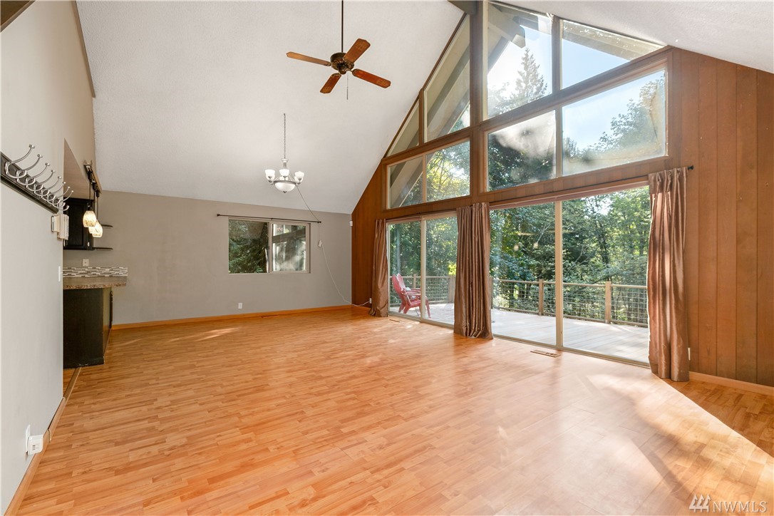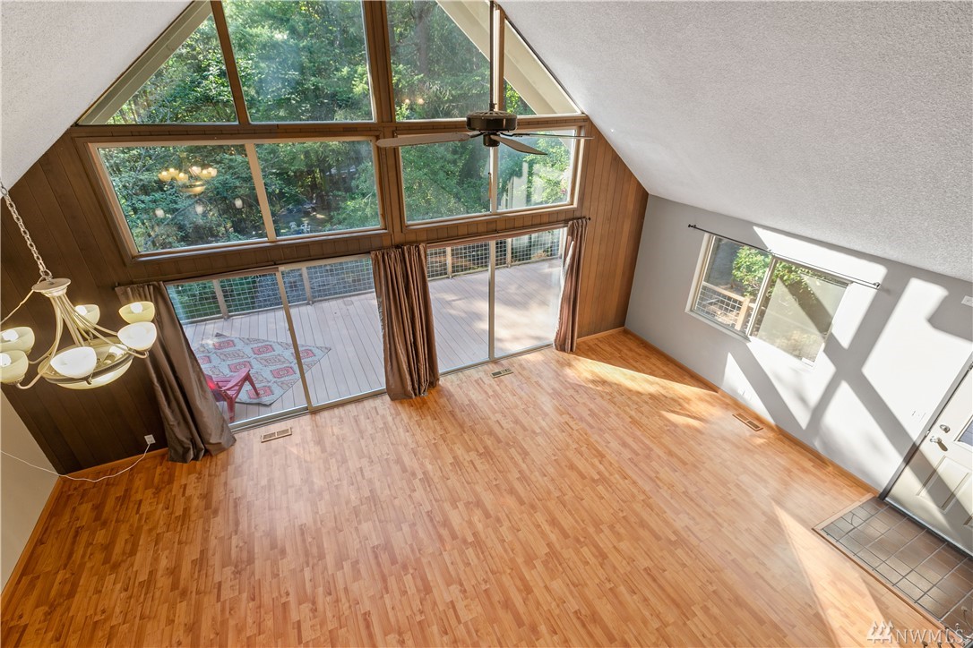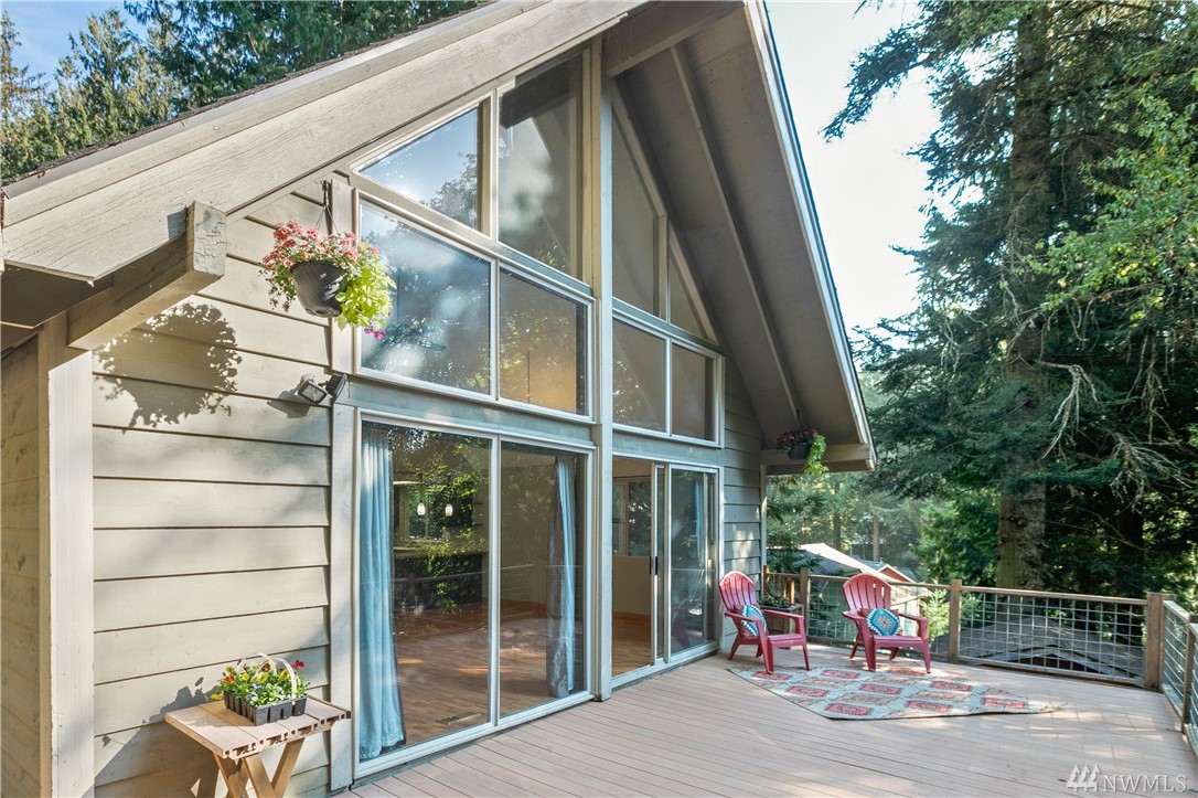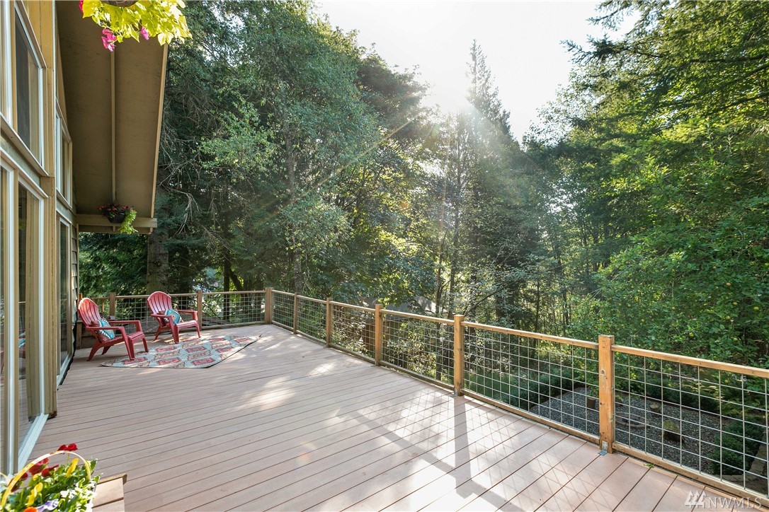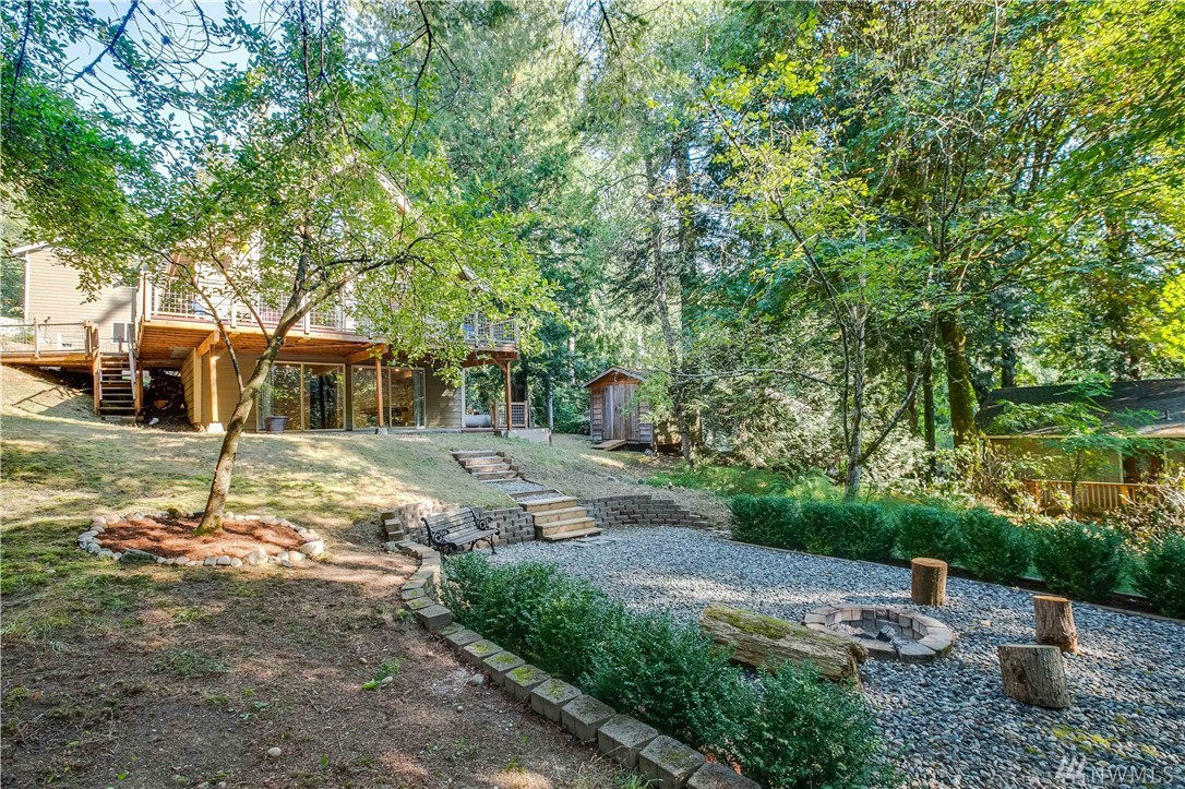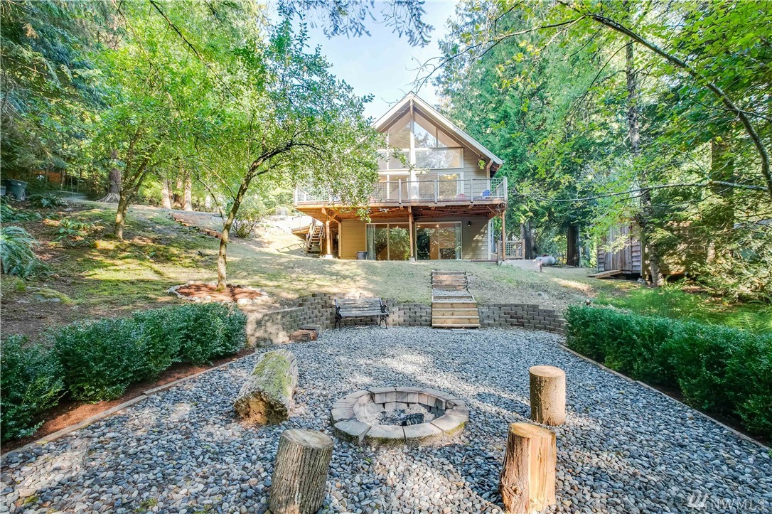 Privacy abounds in this fabulous 4BR, 2.5BA, 2400 sq ft A frame home on double lot! Perfect to spread out in, this home has large open living & dining area w/two story vaulted ceilings, 2 BRs on the main & loft can be used for bedroom suite or separate play area. Spacious Daylight bsmt can easily double as MIL suite. Features master suite w/large bath & walk-in closet + laundry rm & large family rm! Outdoor features include huge trex entertaining deck, tons of parking & picturesque firepit area.