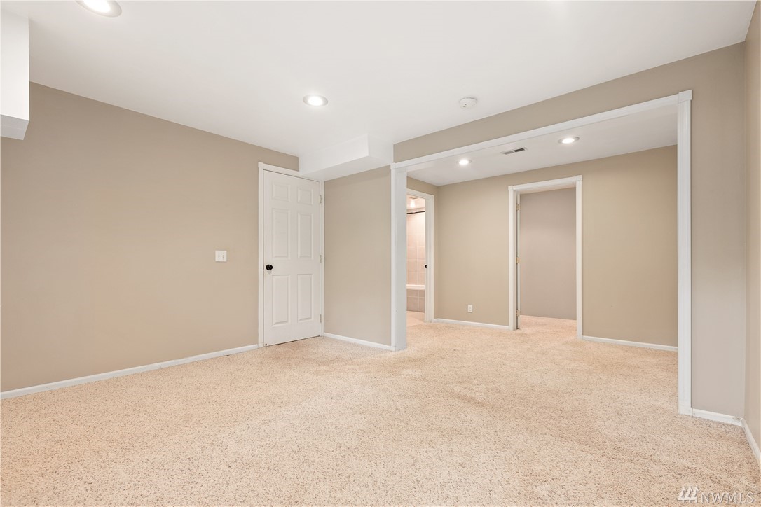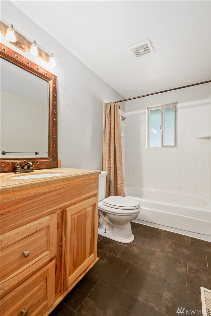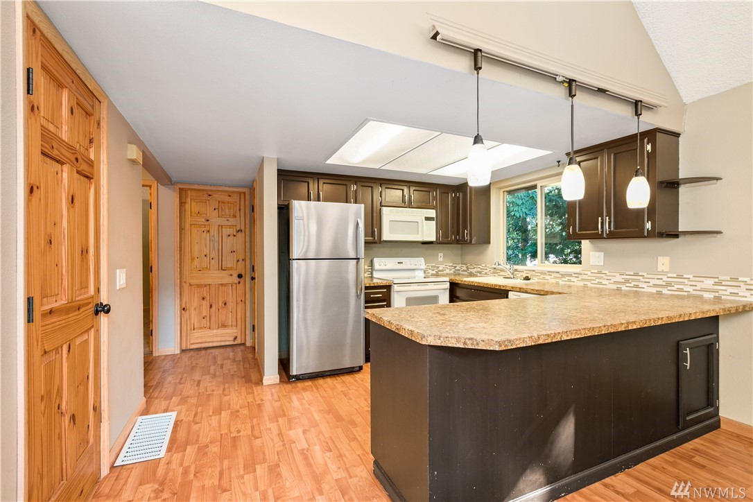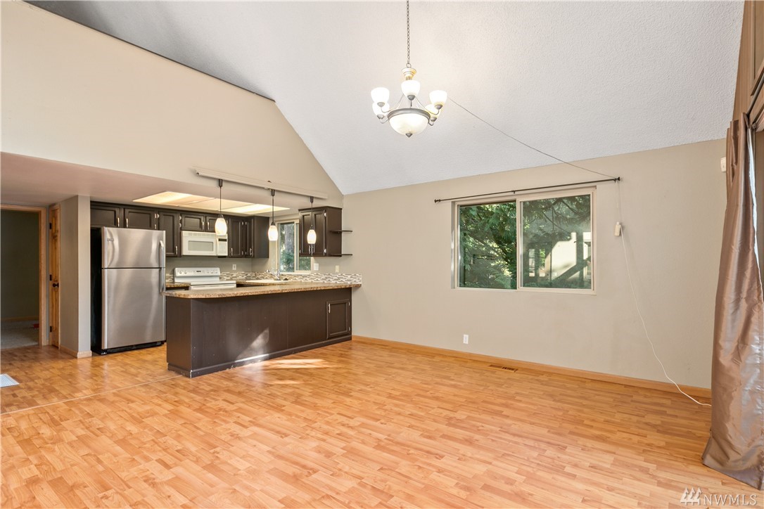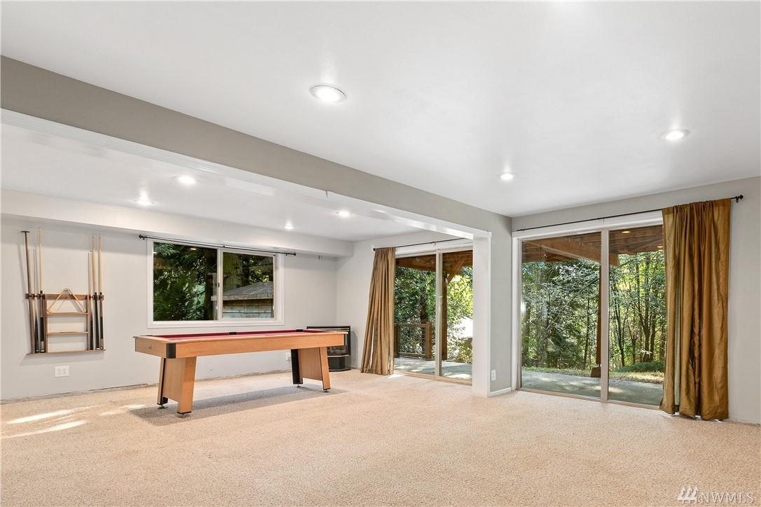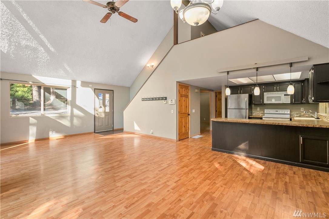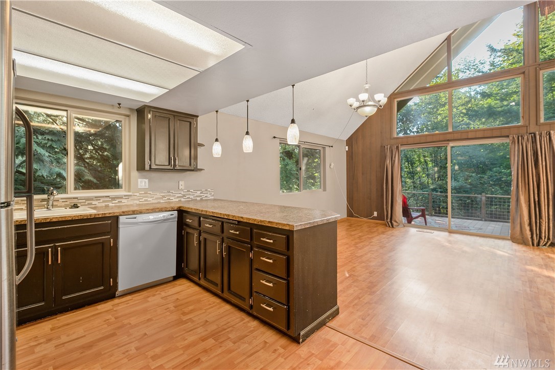 Privacy abounds in this fabulous 4BR, 2.5BA, 2400 sq ft A frame home on double lot! Perfect to spread out in, this home has large open living & dining area w/two story vaulted ceilings, 2 BRs on the main & loft can be used for bedroom suite or separate play area. Spacious Daylight bsmt can easily double as MIL suite. Features master suite w/large bath & walk-in closet + laundry rm & large family rm! Outdoor features include huge trex entertaining deck, tons of parking & picturesque firepit area.