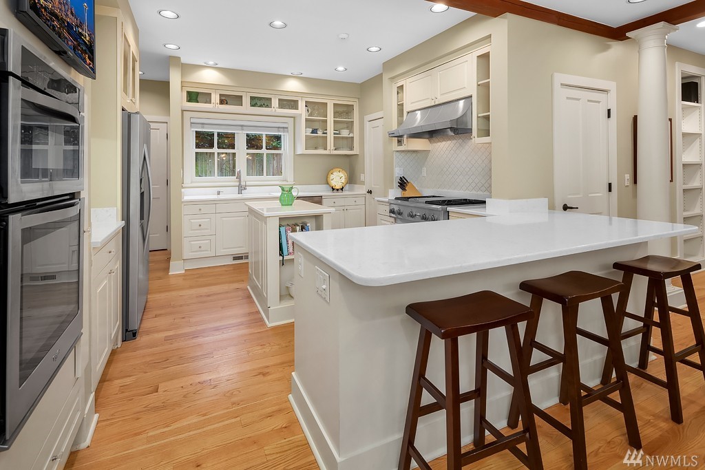 Fantastic remodeled East Coast traditional in a prime Medina location. Loaded with charm and character throughout. Cook’s kitchen w/ chic white cabinetry & glass accents, quartz counters & stainless appliances. Huge master suite w/ newly completed 5 piece master bath. Gleaming hardwood floors throughout the main living areas. Ideal floor plan. Main floor guest suite. Bonus room up a 2nd staircase. Beautifully landscaped level lot. Close to Medina Elementary, The Green Store and Medina Beach.