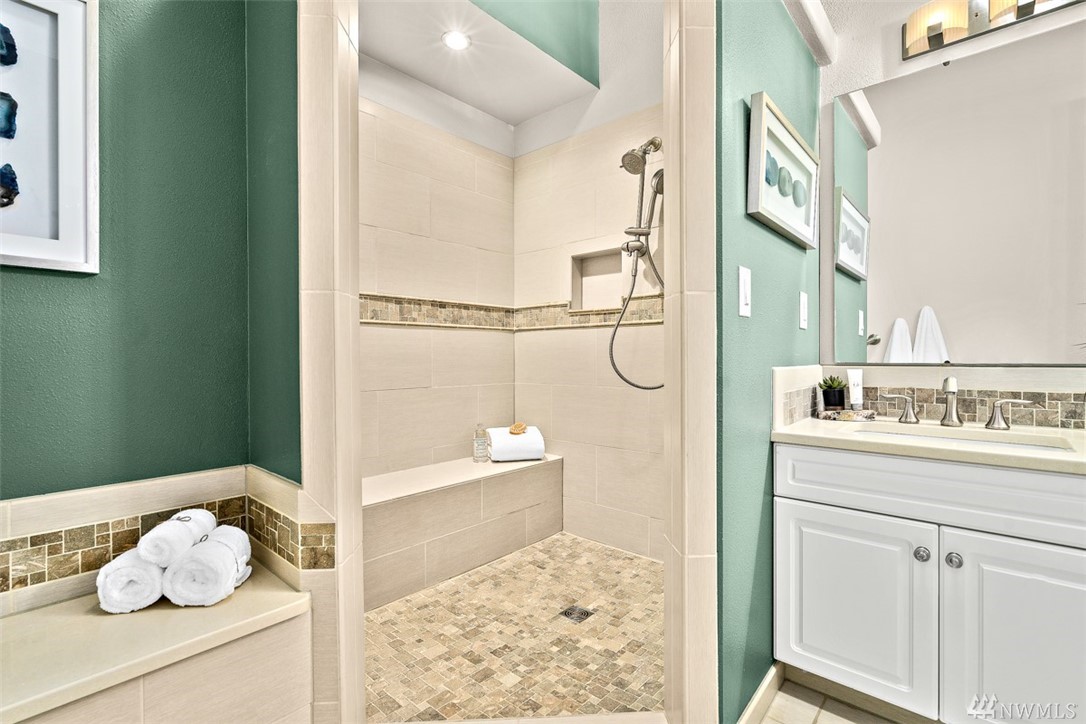 retreat w/updated ensuite bath w/heated floors, tiled, dual sinks, large WI shower & generous WI closet.