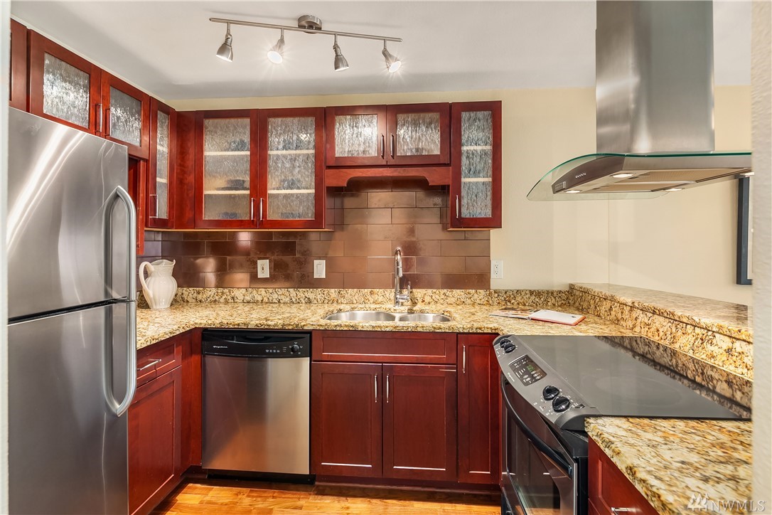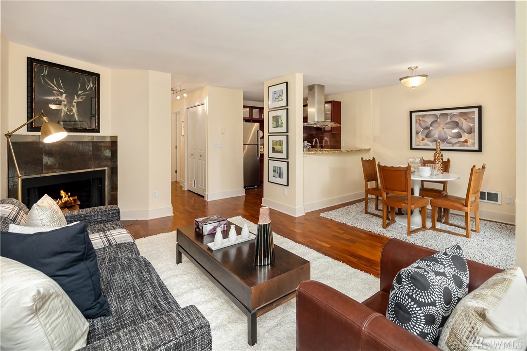 Gorgeous one bed, one bath fully updated condo in this nearly hidden complex just minutes to everything. New interior paint & new carpet. Light & bright with an open kitchen w/ slab granite counters and stainless appliances. Full size washer/dryer in unit. Large patio with storage. One covered parking space included. The small & quiet complex backs to the Cross Kirkland Corridor for easy access for biking or walking. Low HOA dues & well managed. Pre-inspected and all known issues repaired.