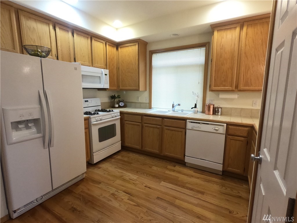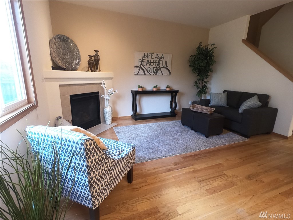 Hard to find FHA Approved Townhome with private fenced Patio/Yard. Features include Real Hardwood floors, Spacious kitchen with eating bar, Tile counters, Gas range, Pantry! Open floor plan with vaulted ceilings, Attached full size two car garage. Large master bedroom with walk in closet and 5 pc bath. Newer Washer/Dryer with upstairs laundry area. Two additional bedrooms upstairs and a full bath. Great I-5 access & close to the Park & Ride and shopping! Low HOA dues Rental Cap has been met.