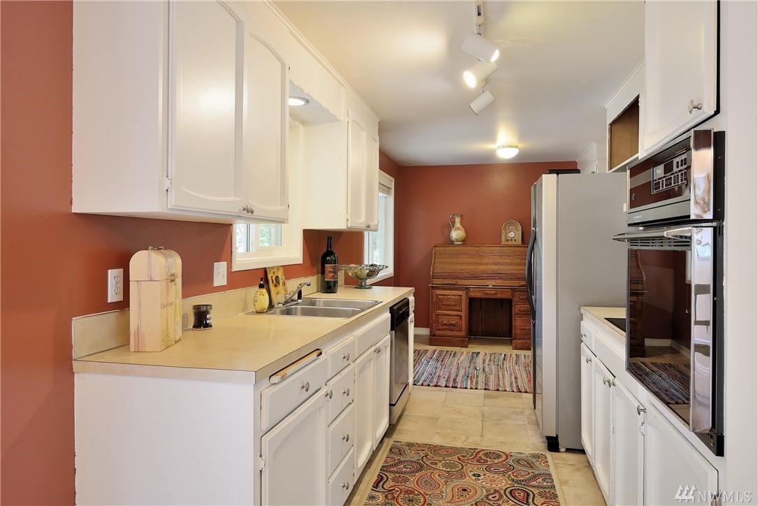 Beautiful 5 bed, 2 bath home in peaceful neighborhood. Hardwood floors in living, dining & 3 of the 5 bedrooms. Travertine tile in kit. Sliding glass door from kit/dining area to deck overlooking large fully fenced backyard. Spacious family room and rec room downstairs with slider to yard. Gas heat & hot water. 2 car attached garage. Laundry room. Quiet dead end street conveniently located near schools, shopping, hospitals & easy freeway access. Super Value, don't hesitate, priced to sell fast!